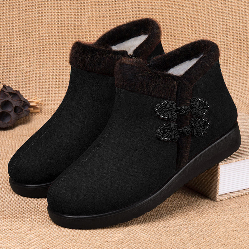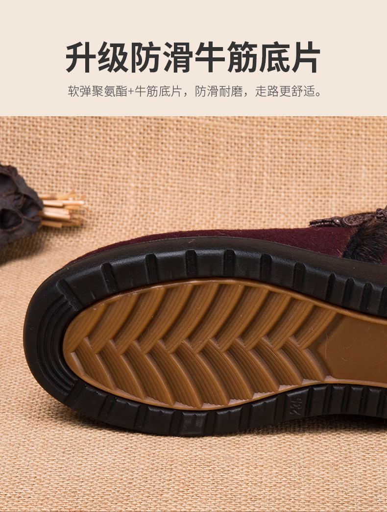 Old Beijing Cloth Shoes for the Elderly, Warm and Thickened with Wool for Minus Temperatures, Non-Slip Soft-Soled Rubber Sole Shoes for Mothers and Elderly Women