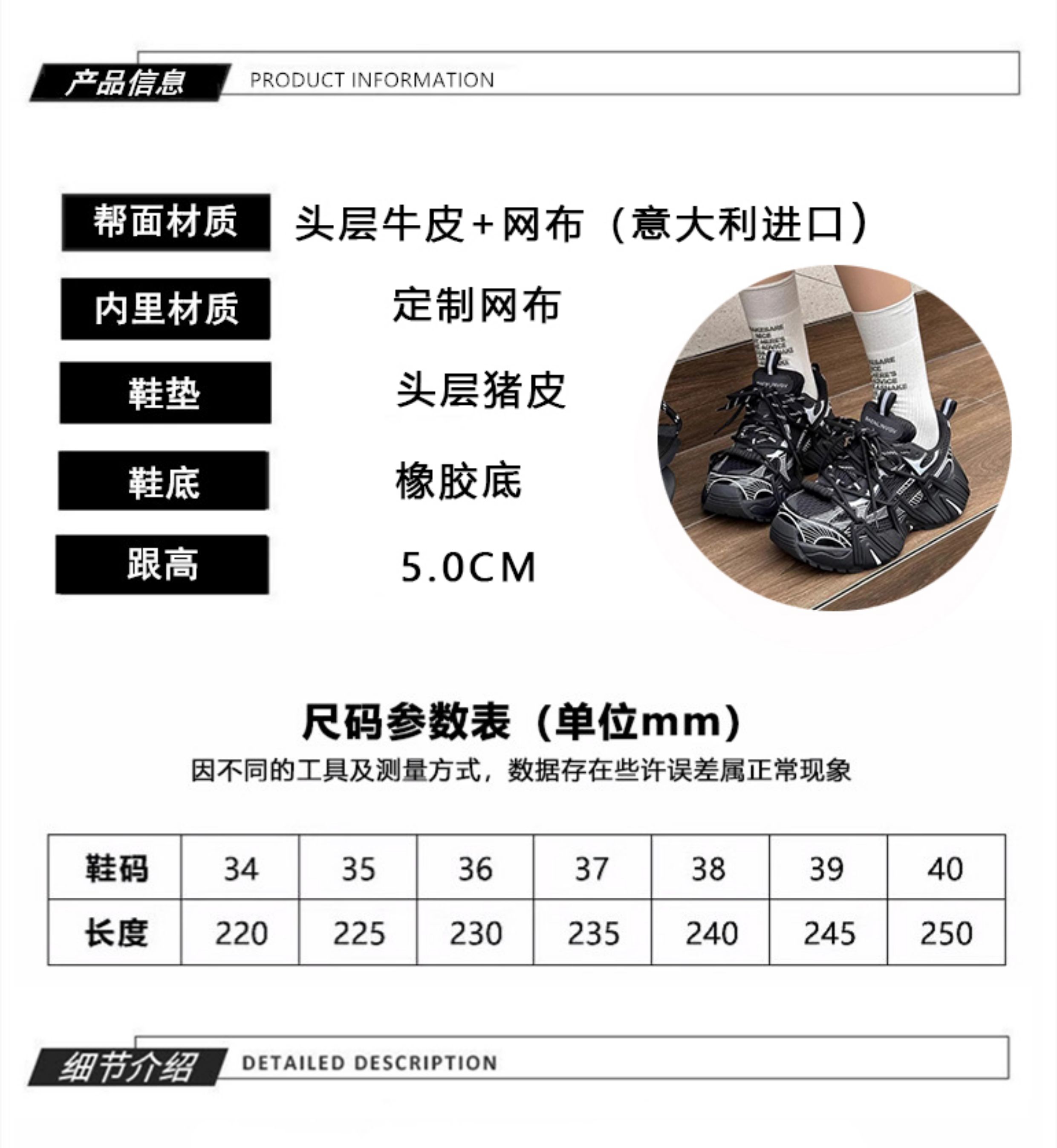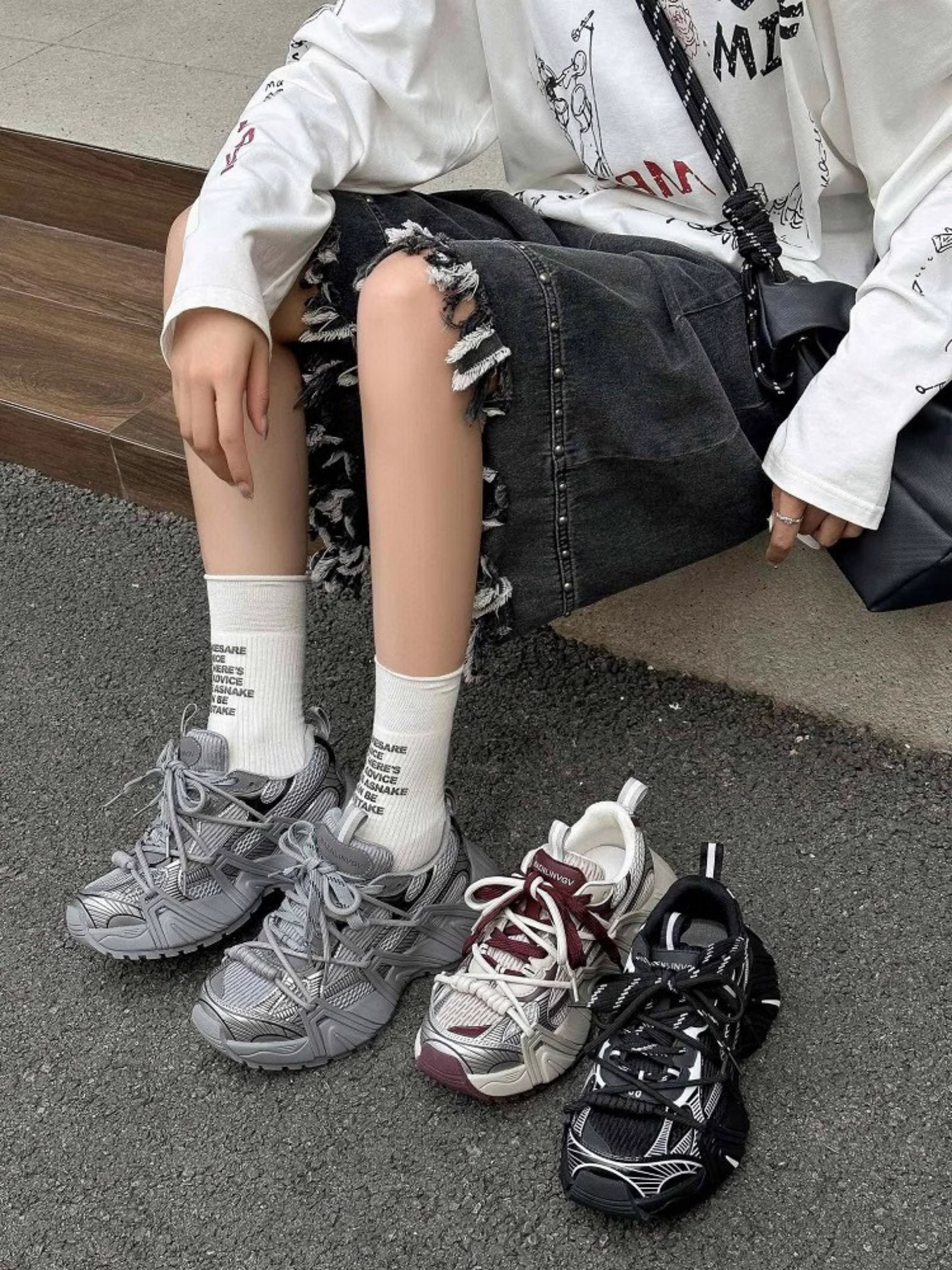 Hong Kong Style Small Ankle Strap Dad Sneakers for Women 2025 Spring and Autumn New Model with Absorbent Film Sole, Height-Increasing Lightweight Sports Shoes for Petite Individuals