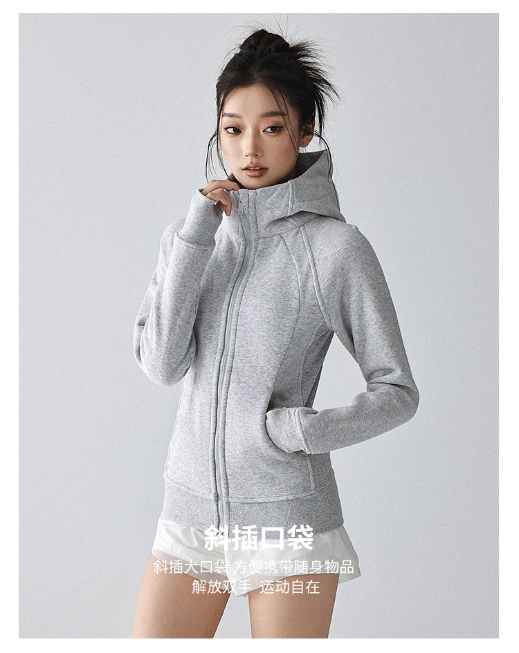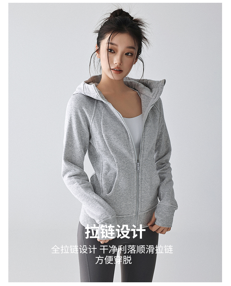 Slim-Fit Sports Jacket for Women 2025 New Long-Sleeved Sweatshirt Running Warm Thin Velvet Fitness Yoga Clothing Top Set