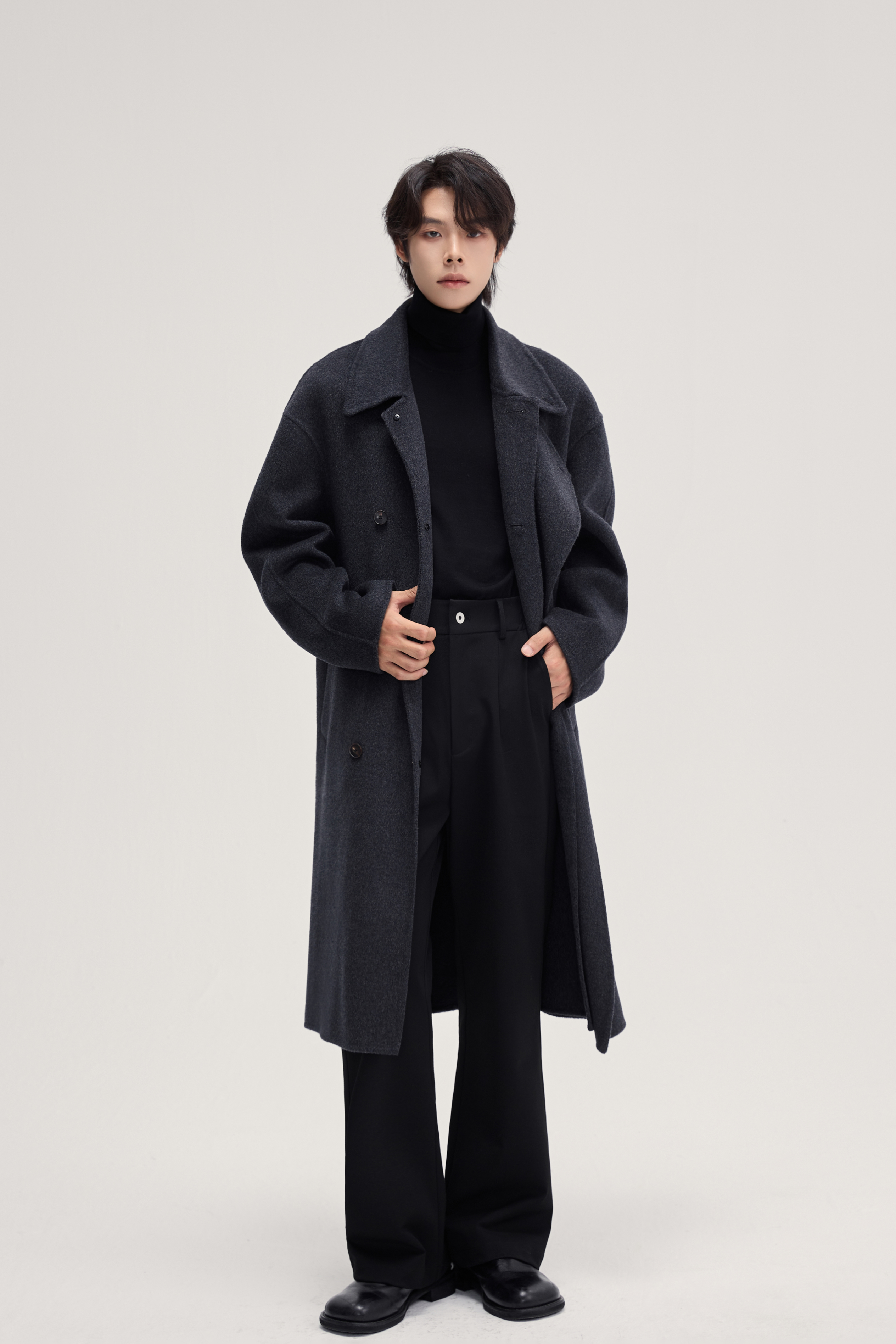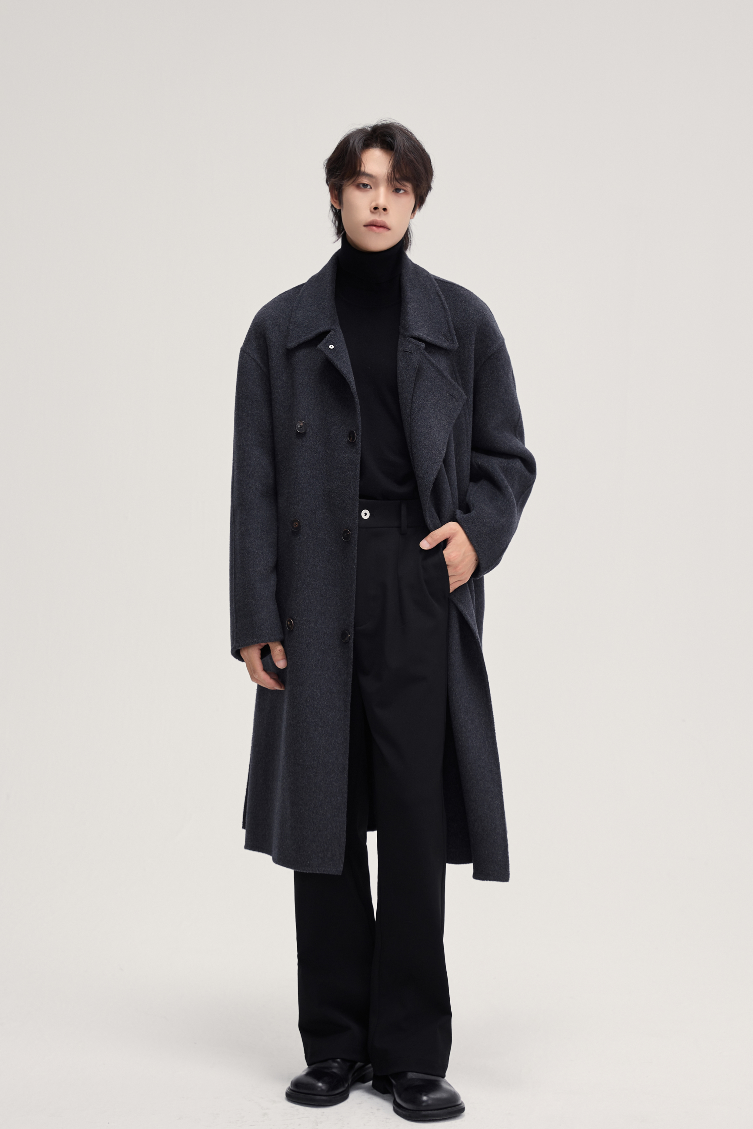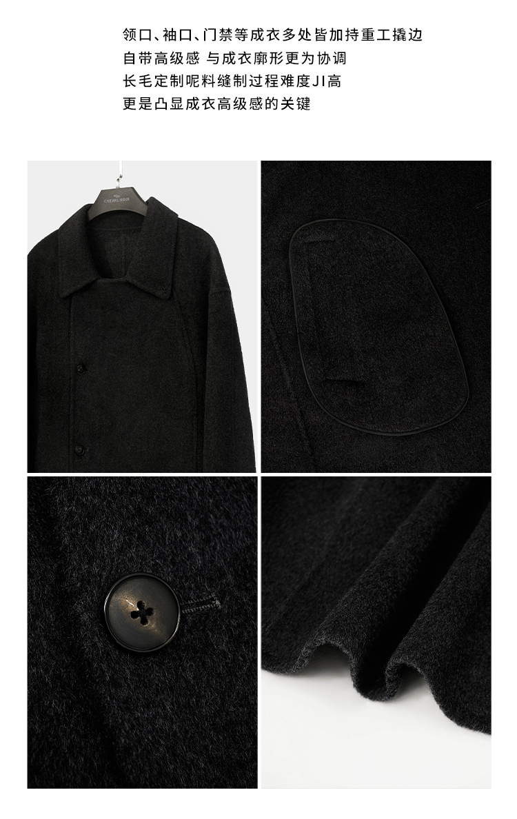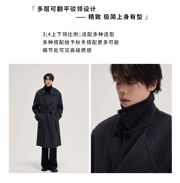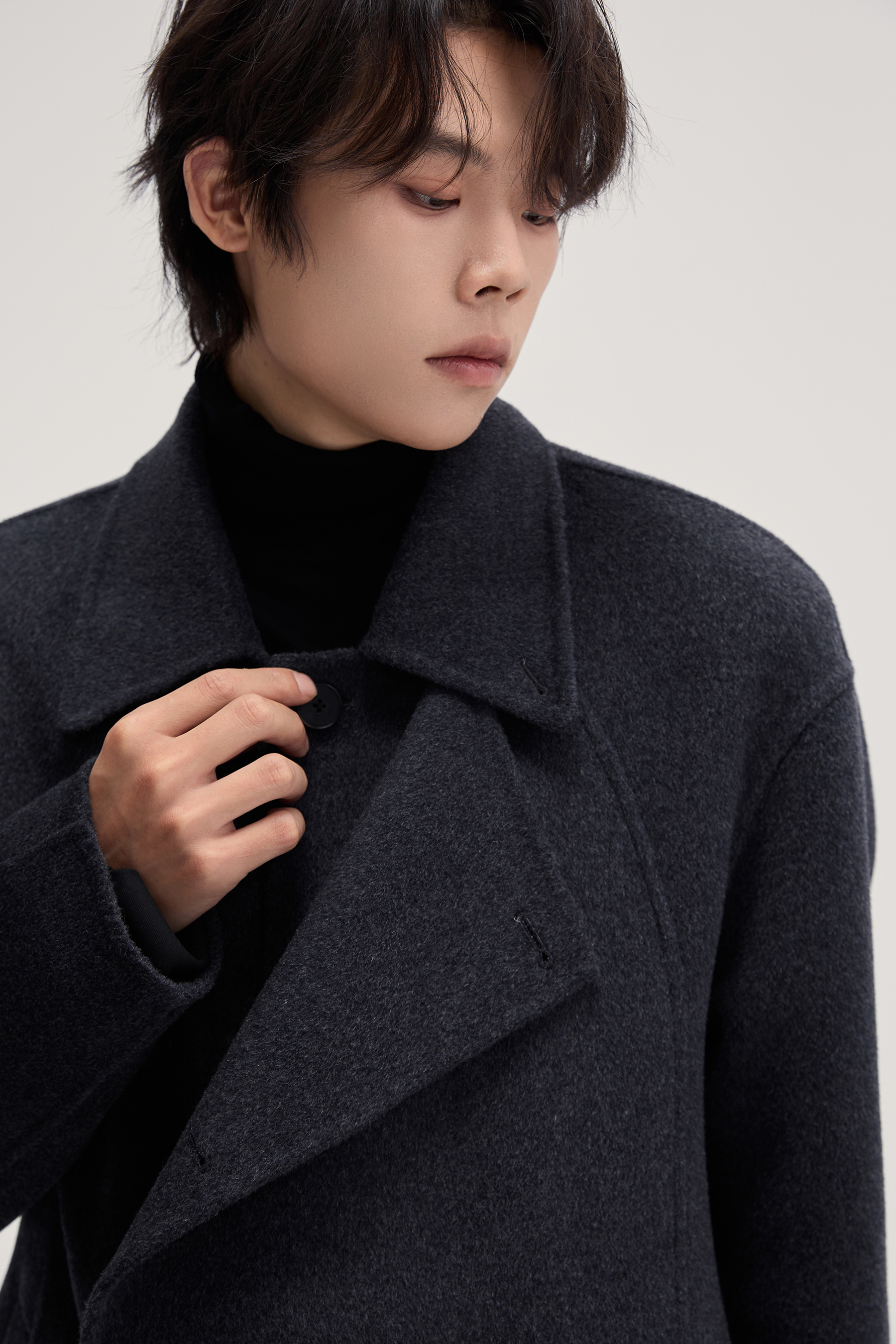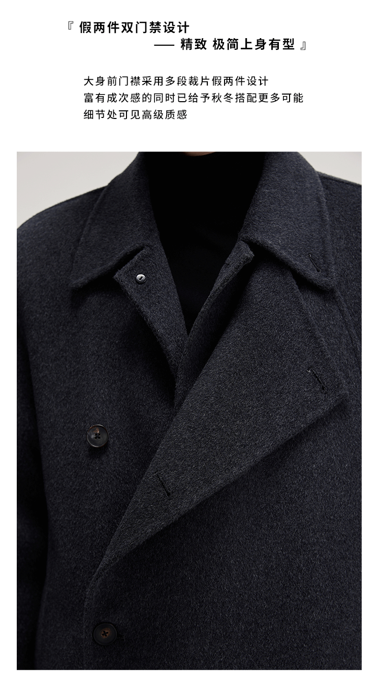 Chevalnoir Australian Merino Pure Wool Mid-Length Double-Sided Woolen Coat with Fake Two-Piece Design Woolen Jacket