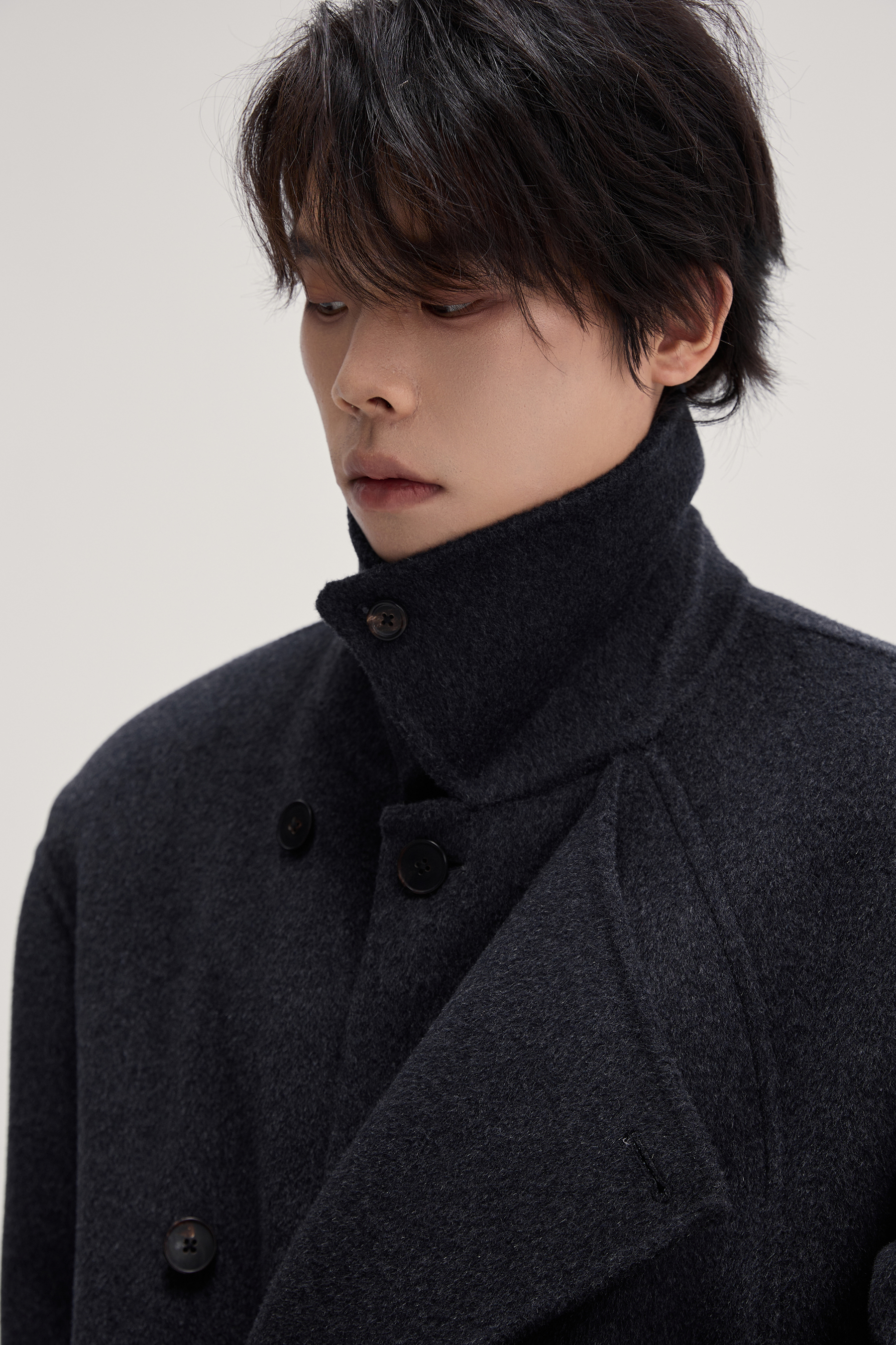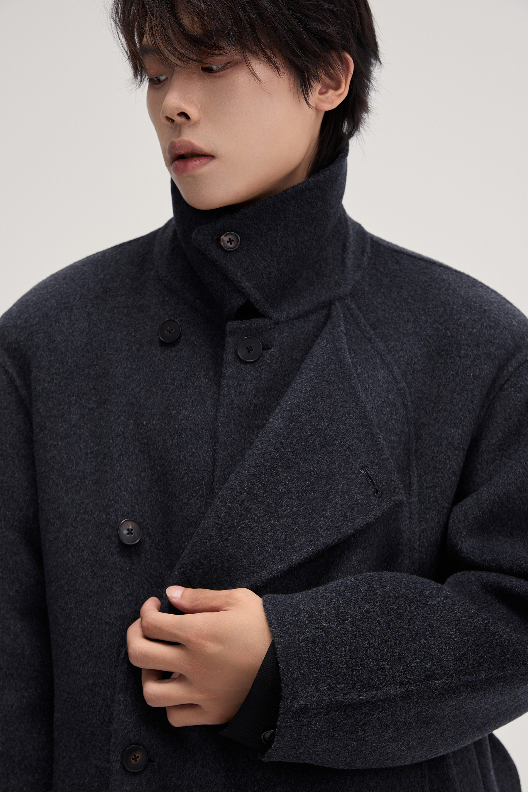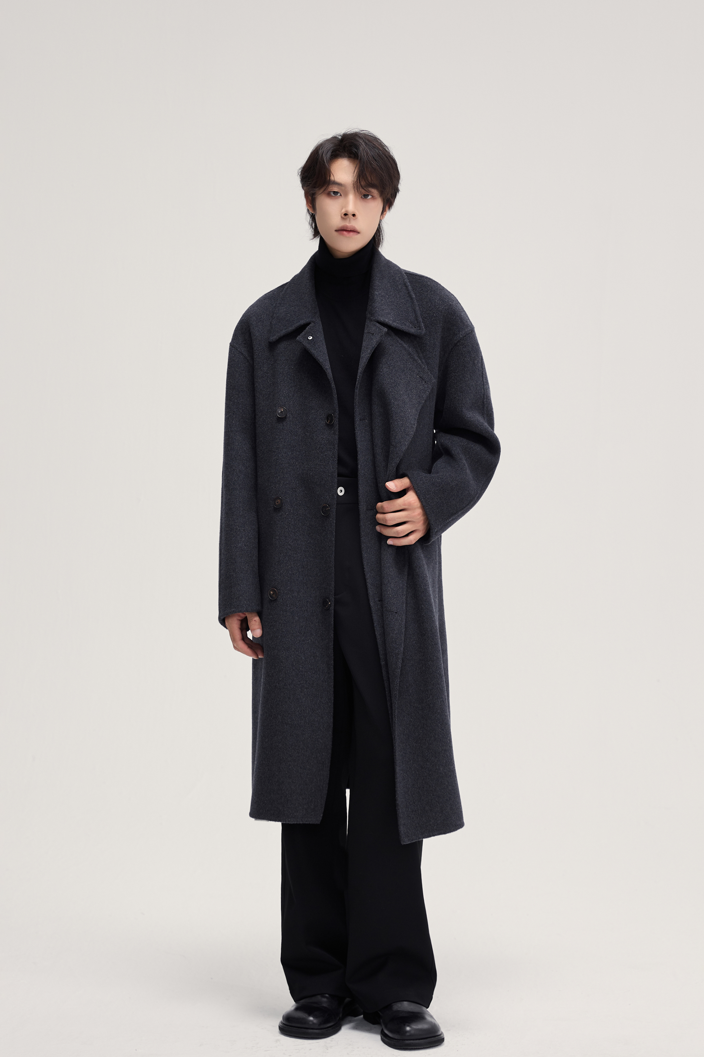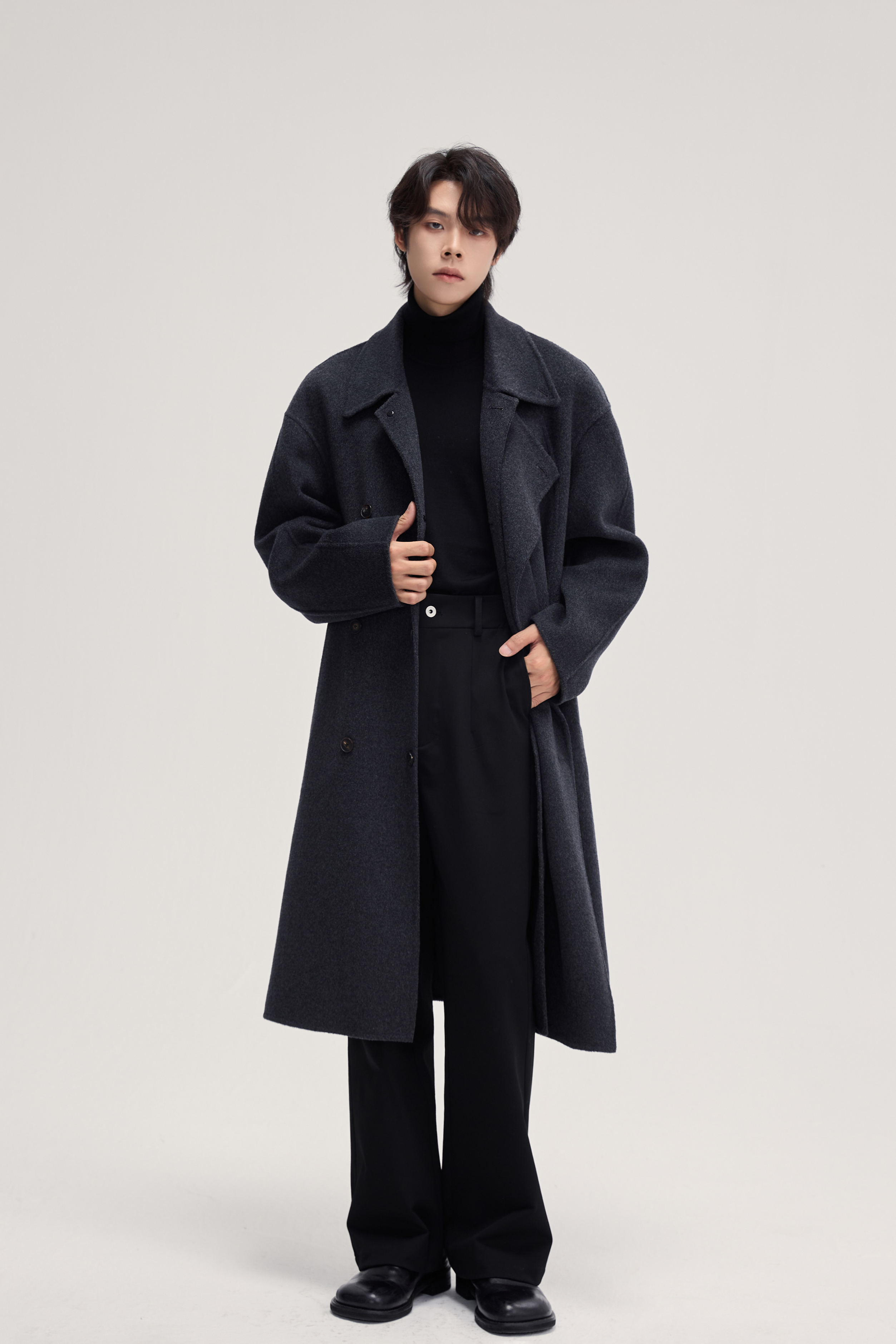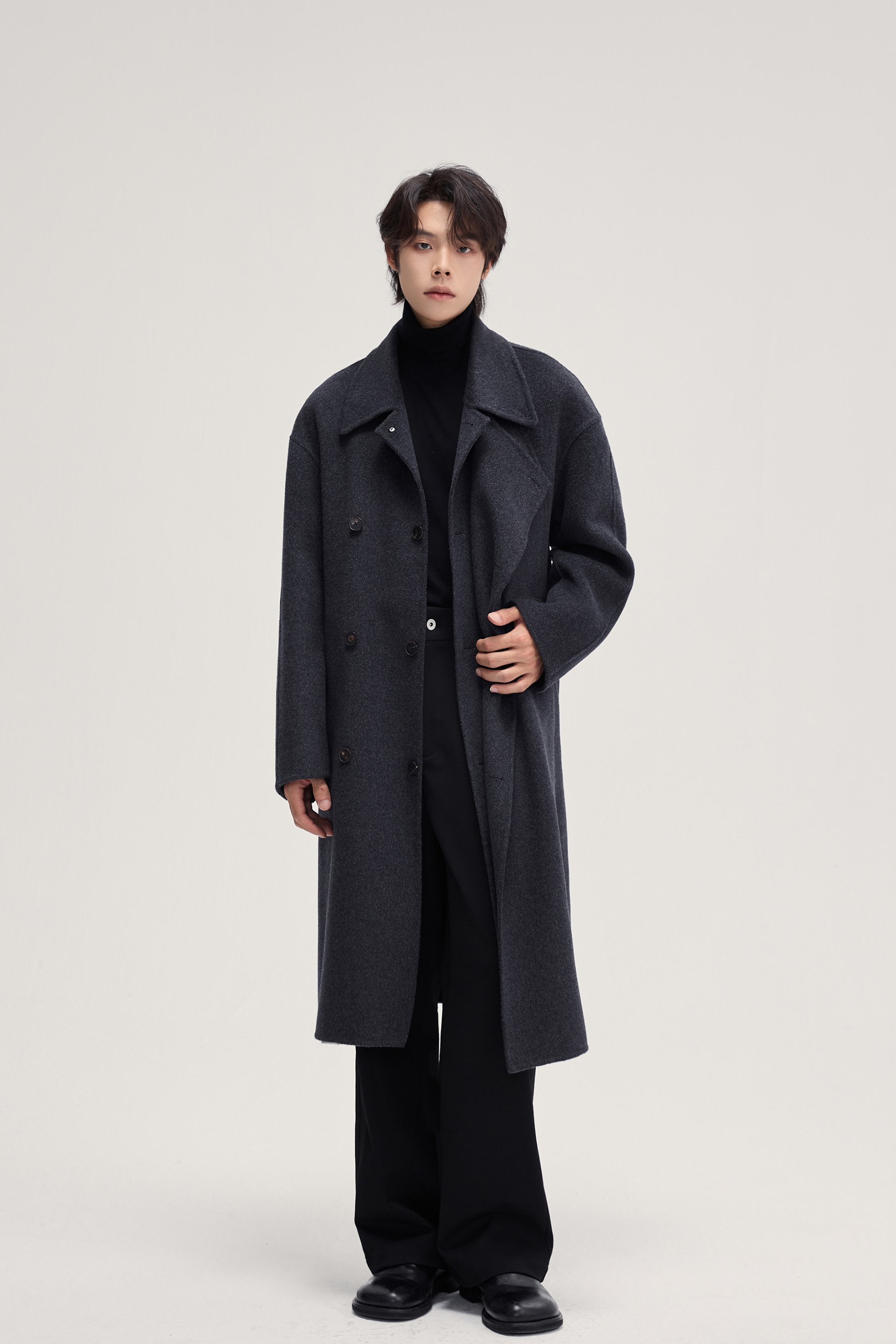 Chevalnoir Australian Merino Pure Wool Mid-Length Double-Sided Woolen Coat with Fake Two-Piece Design Woolen Jacket