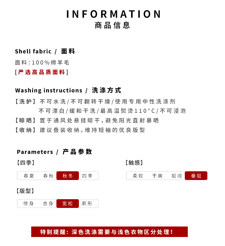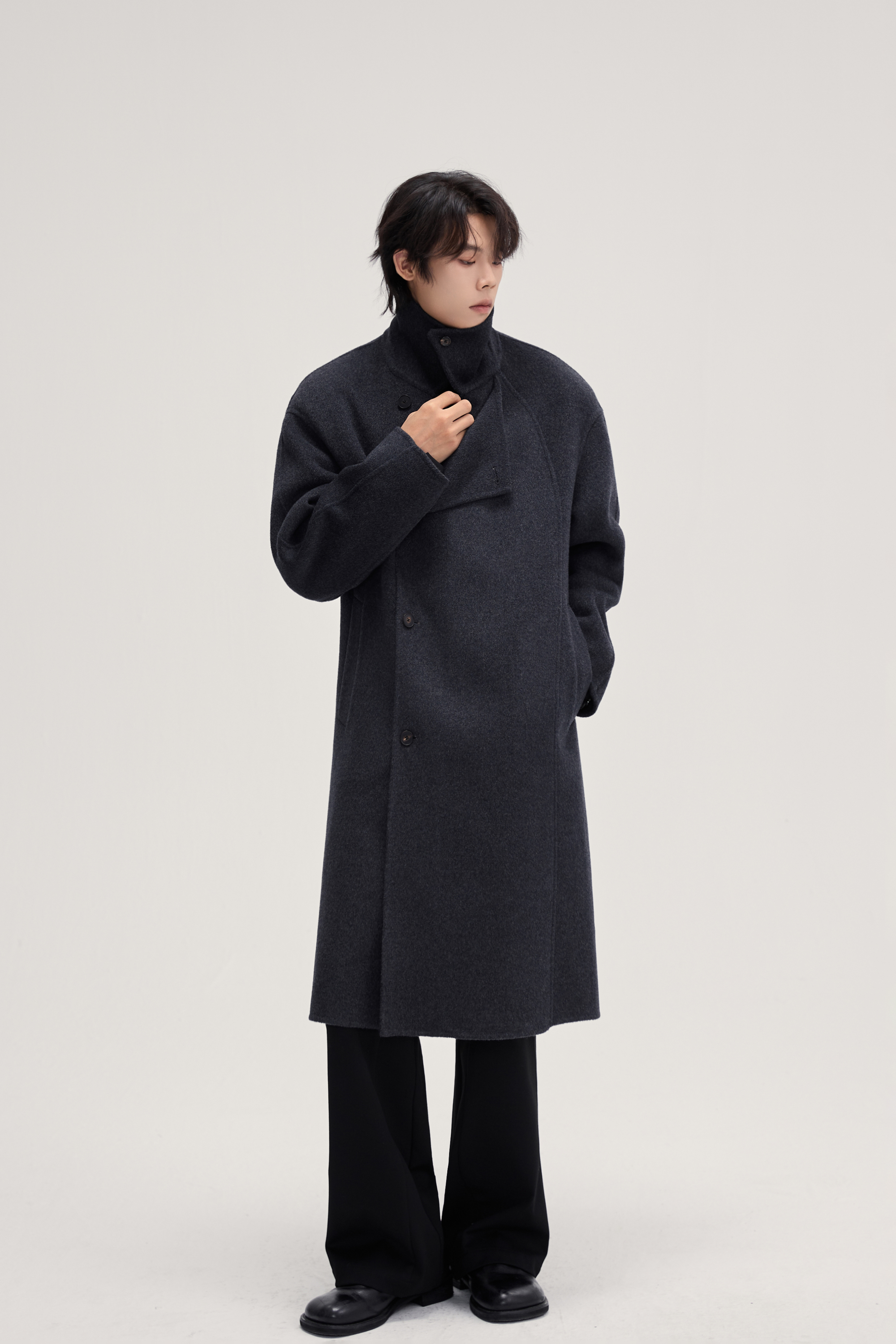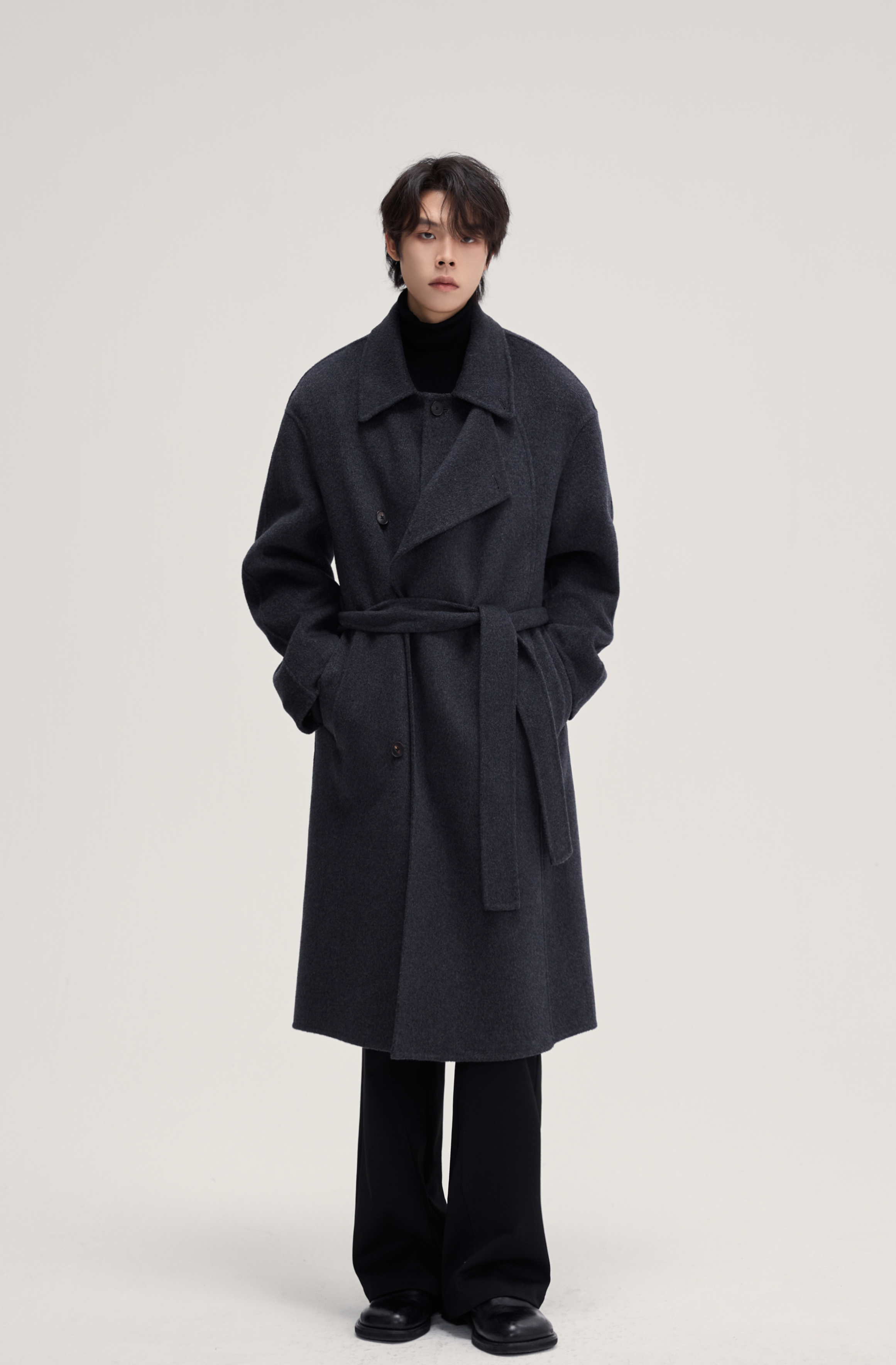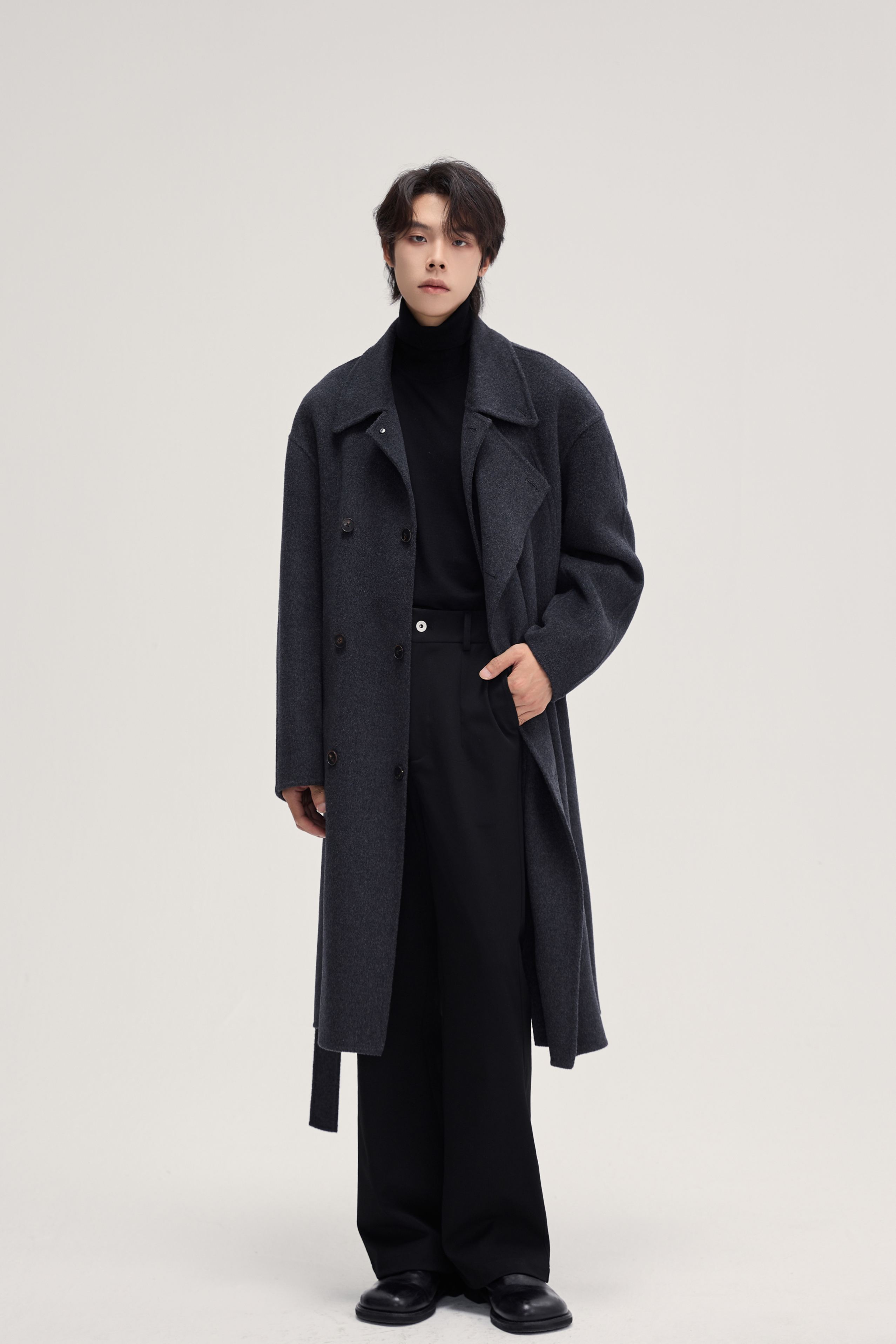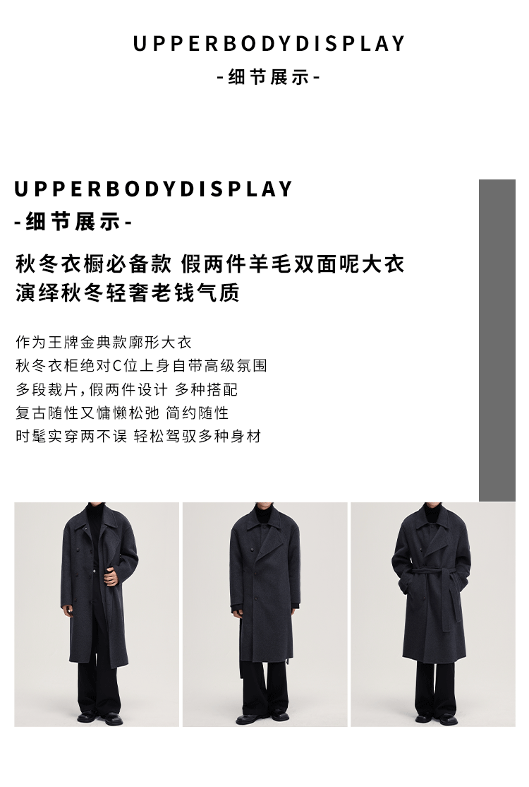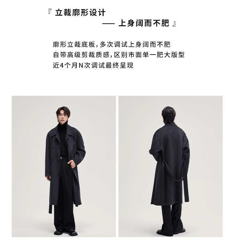 Chevalnoir Australian Merino Pure Wool Mid-Length Double-Sided Woolen Coat with Fake Two-Piece Design Woolen Jacket