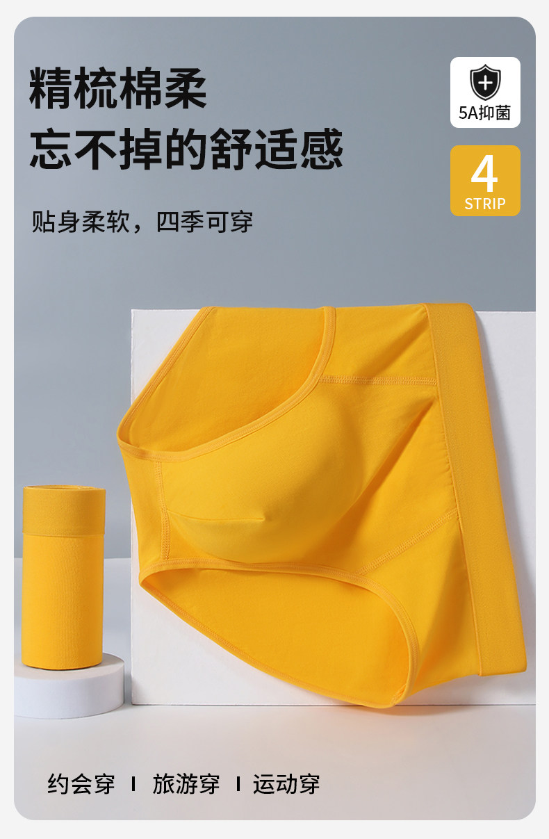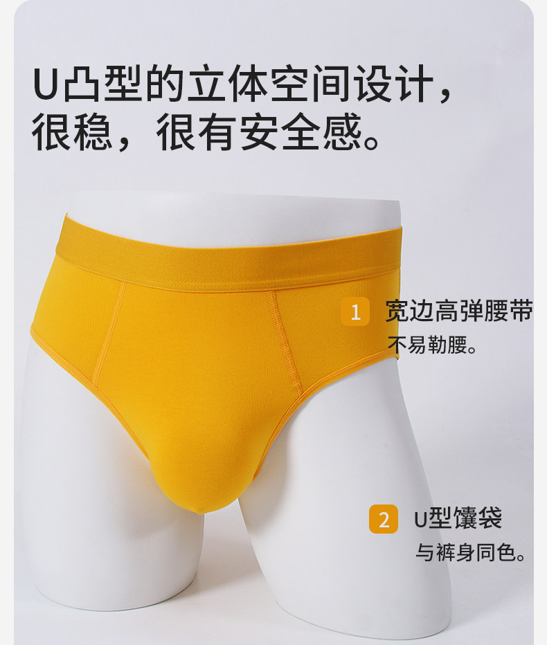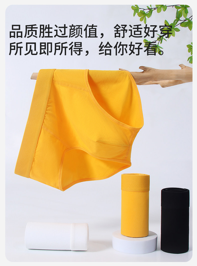 Jeanswest Pure Cotton Antibacterial Men's Briefs, Gold Yellow Mid-Waist Men's Shorts for Autumn and Winter
