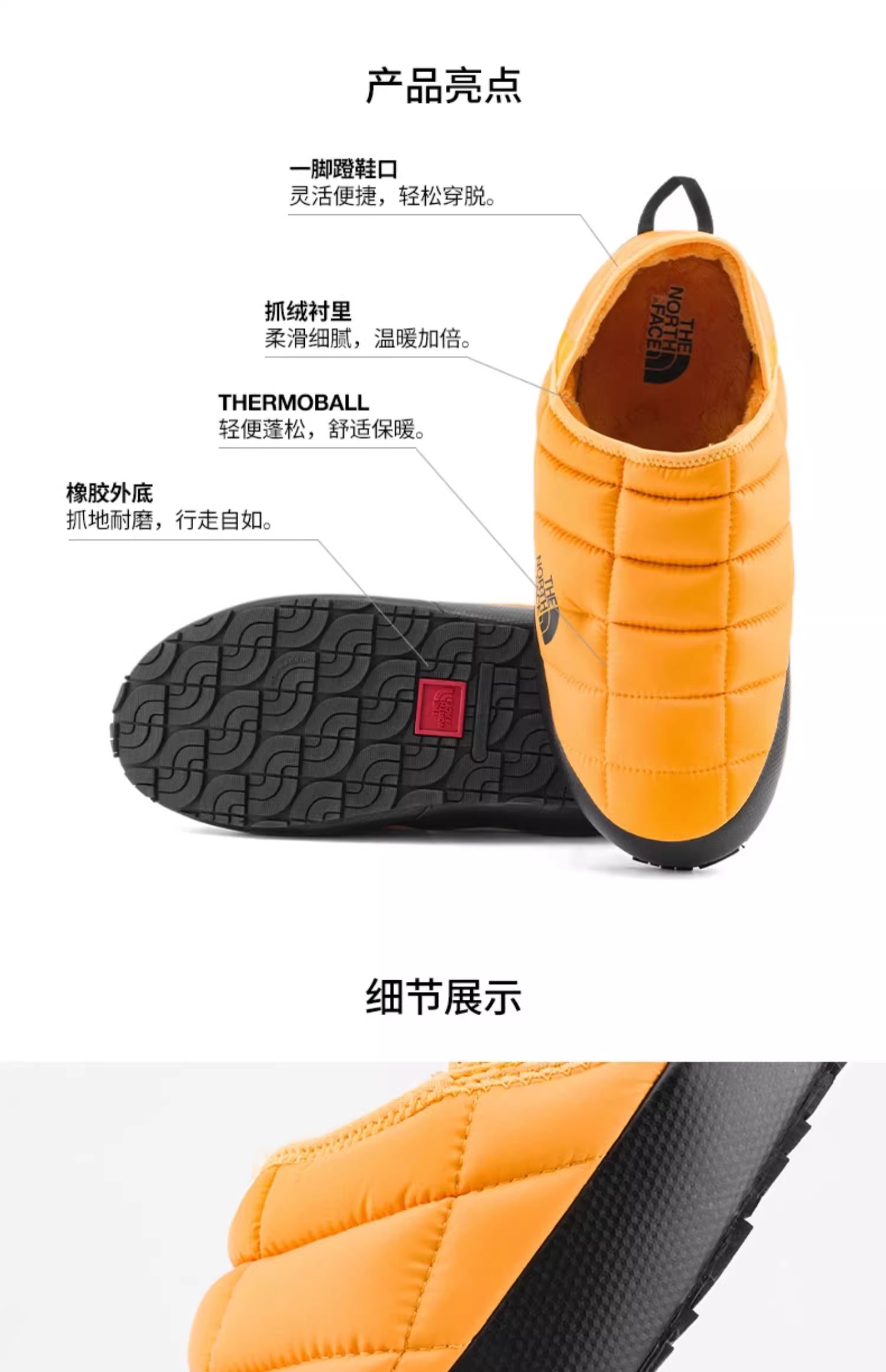 TheNorthFace North Camp Shoes Men's Fall and winter New arrival Heattech Grab Slip-on Cotton Shoes Lazy Shoes