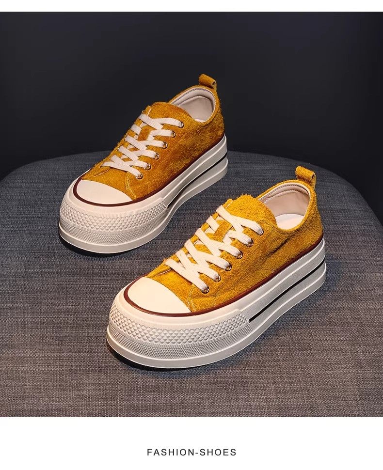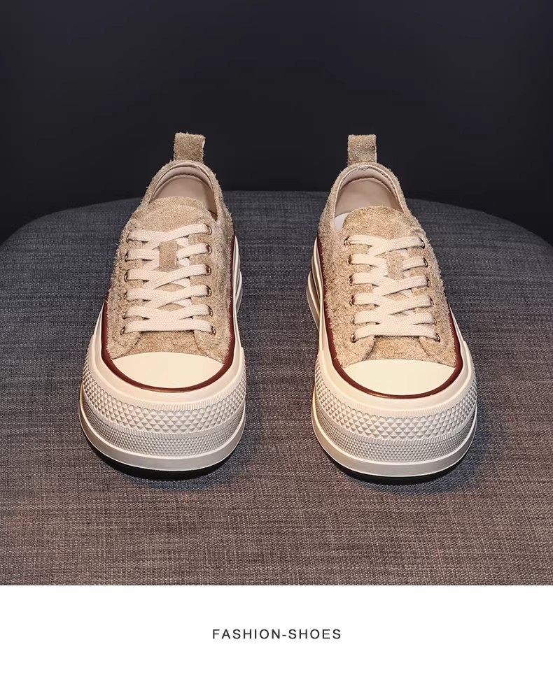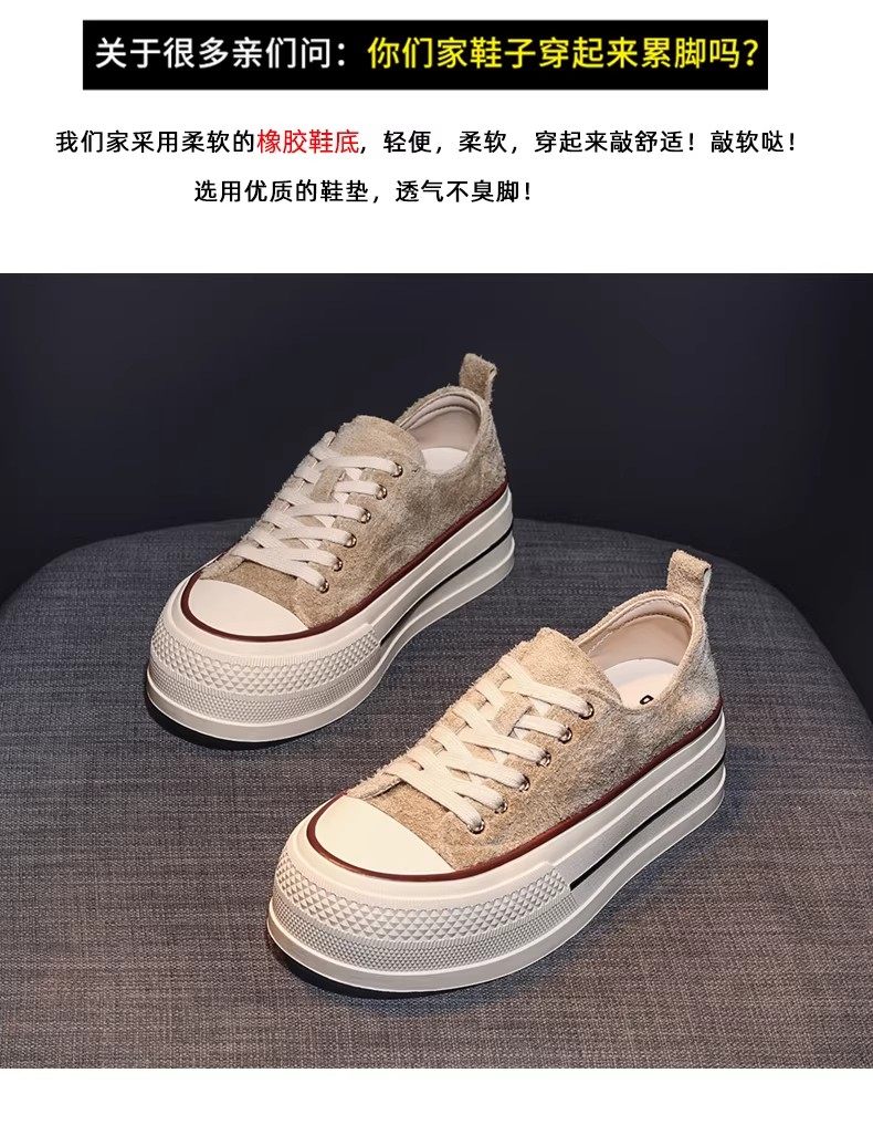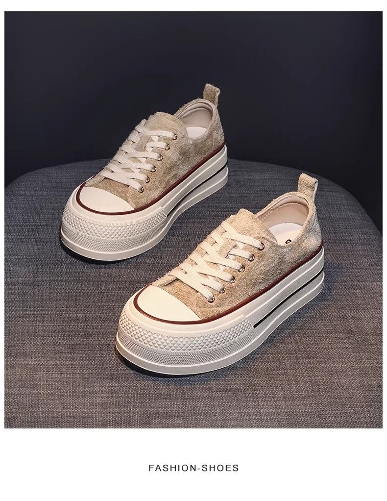 Hong Kong Thick-Soled Height-Increasing Canvas Shoes for Women 2026 Spring and Autumn New Casual Shoes Versatile Genuine Leather Round-Toe Sneakers White Shoes