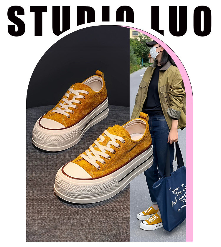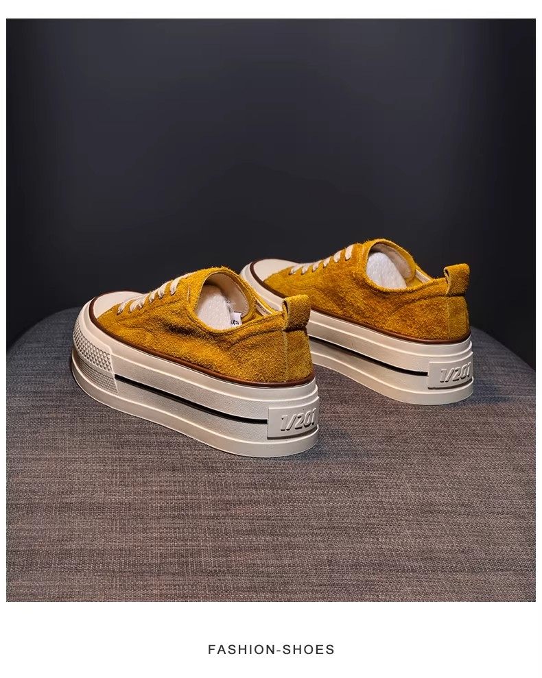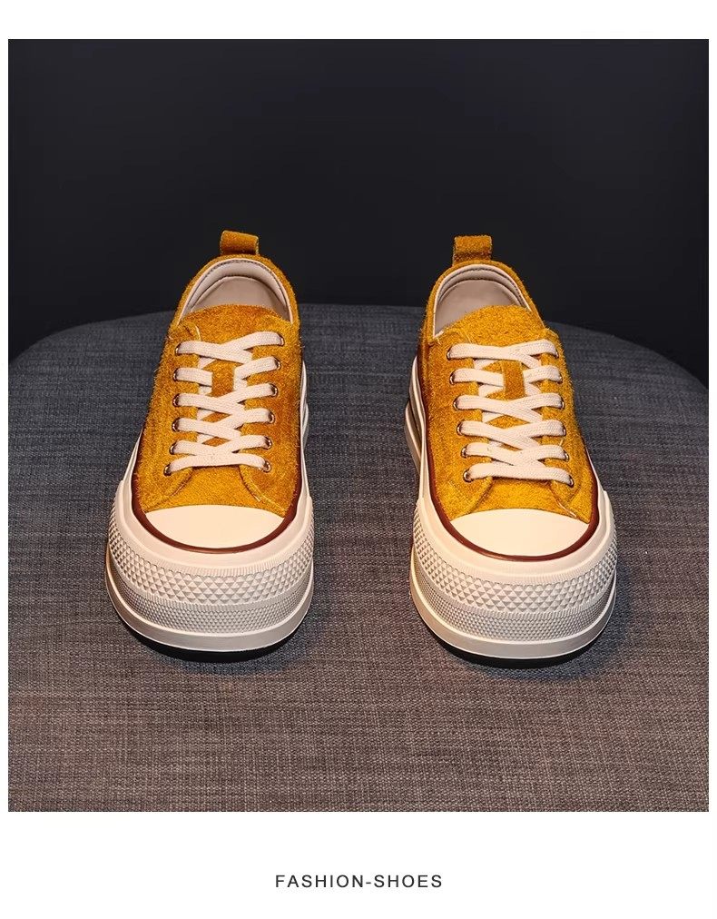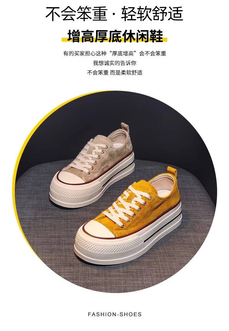Hong Kong Thick-Soled Height-Increasing Canvas Shoes for Women 2026 Spring and Autumn New Casual Shoes Versatile Genuine Leather Round-Toe Sneakers White Shoes