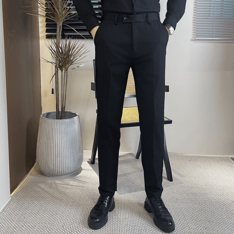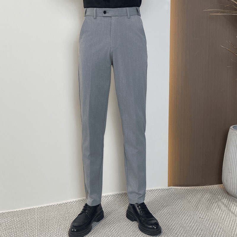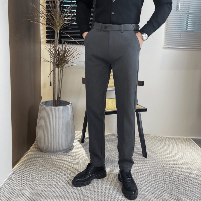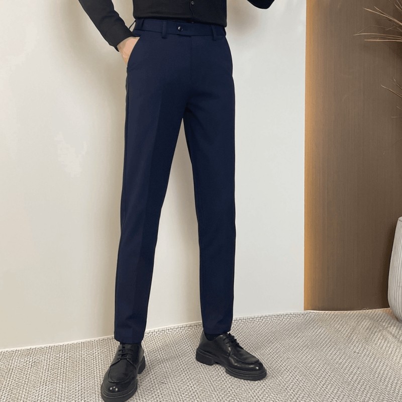 Men's Winter Trousers with Fleece Lining, Thickened Dress Pants with a High-End Feel, Warm Cropped Trousers, Stylish and Flexible Waistband, Suit Pants