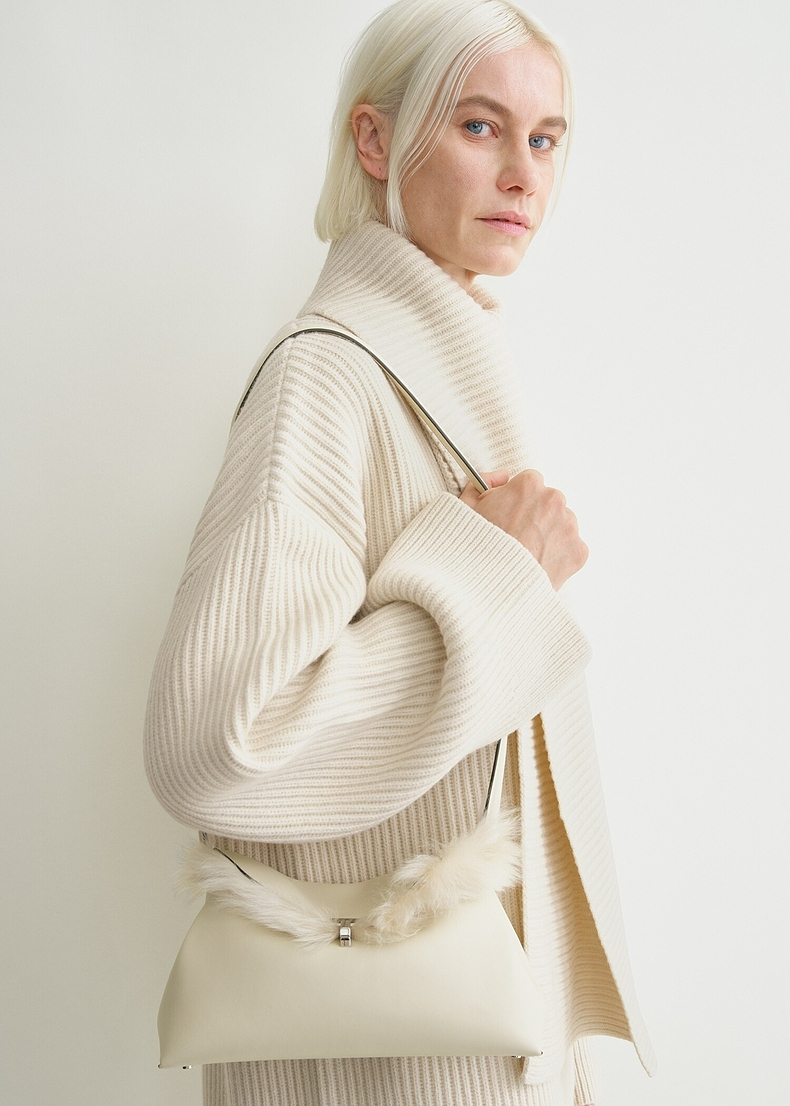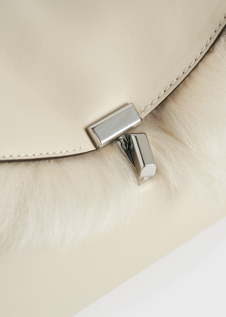 [Discount Selection] Toteme Women's Bag Beige Patchwork Shearling Leather T-Shaped Clasp Clutch Bag
