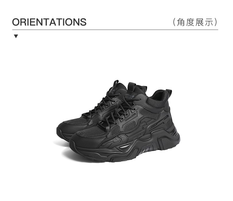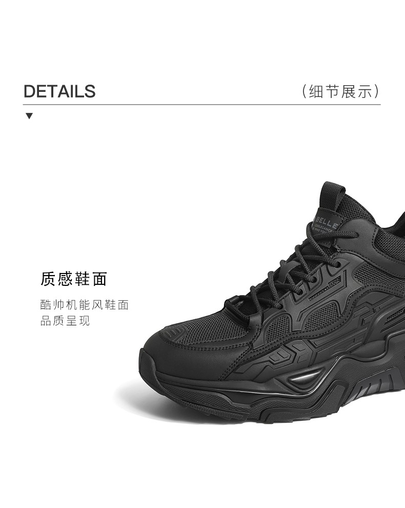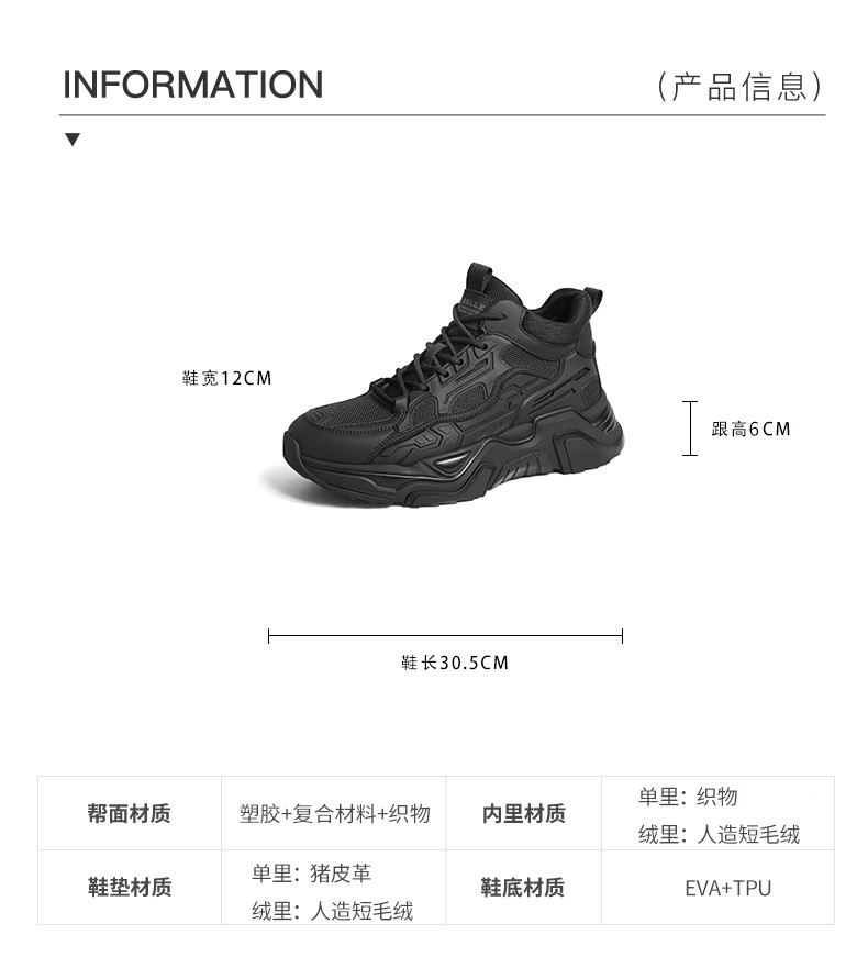 Belle Men's High-Top Cotton Shoes, Men's Thick-Soled Dad Shoes, New Winter Black Sports Casual Shoes with Fleece A0939D