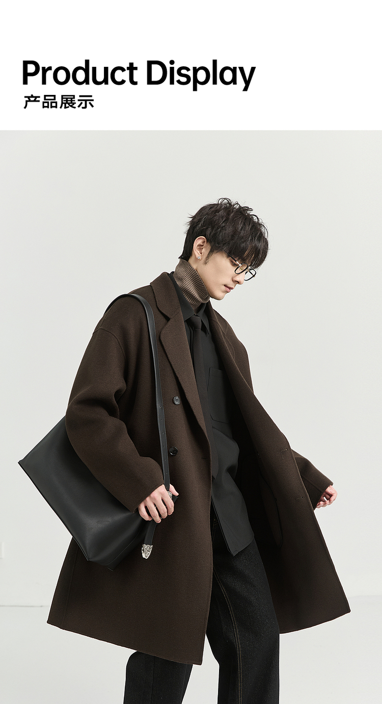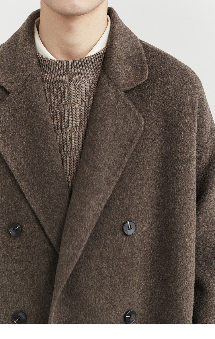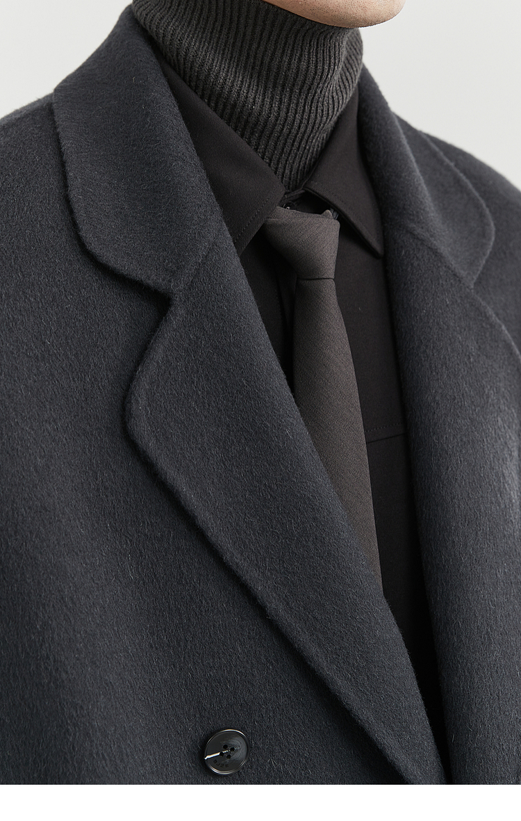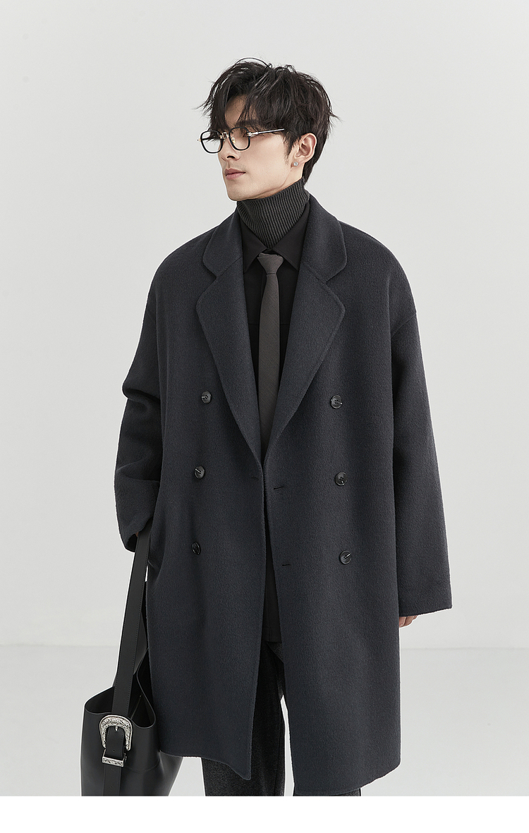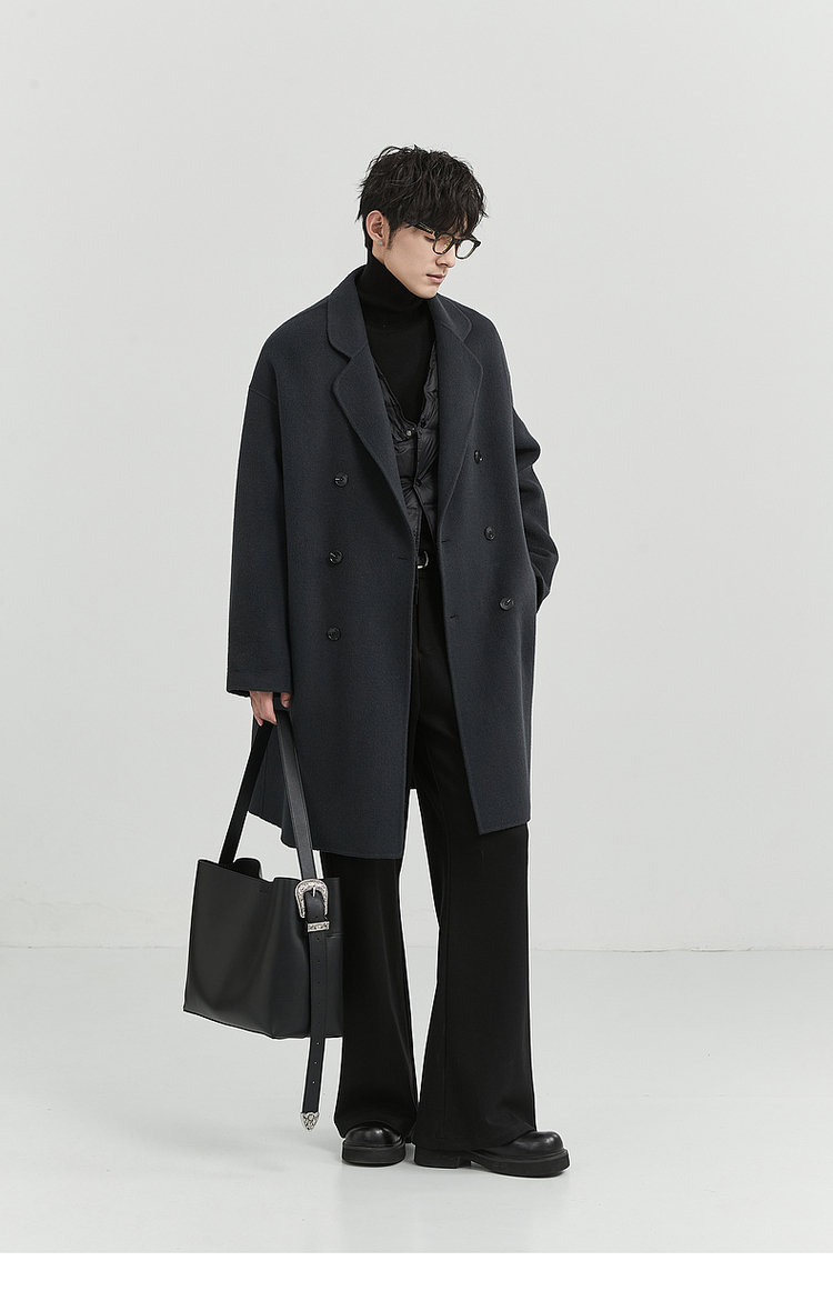 [All Wool/Goose down Lining] Bjze Autumn and Winter Warm Handmade Double-Sided Woolen Coat Mid-Length Men's Jacket