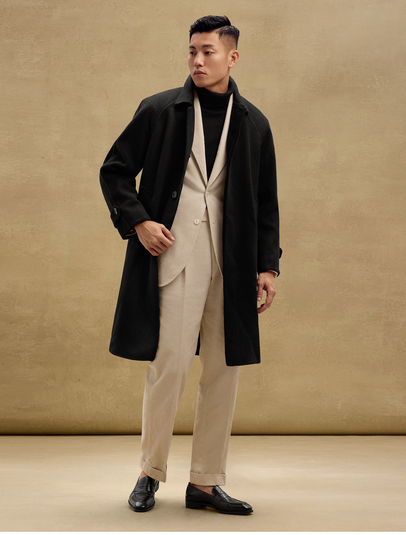 [Contains Camel Wool, Double-Sided Wool] Skaro Black Wool Coat Men's Long Business Casual Woolen Jacket