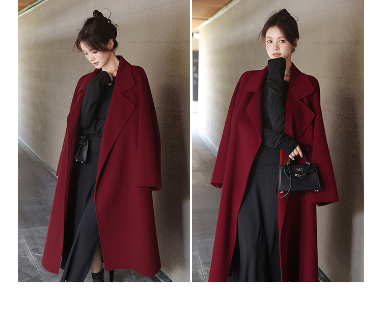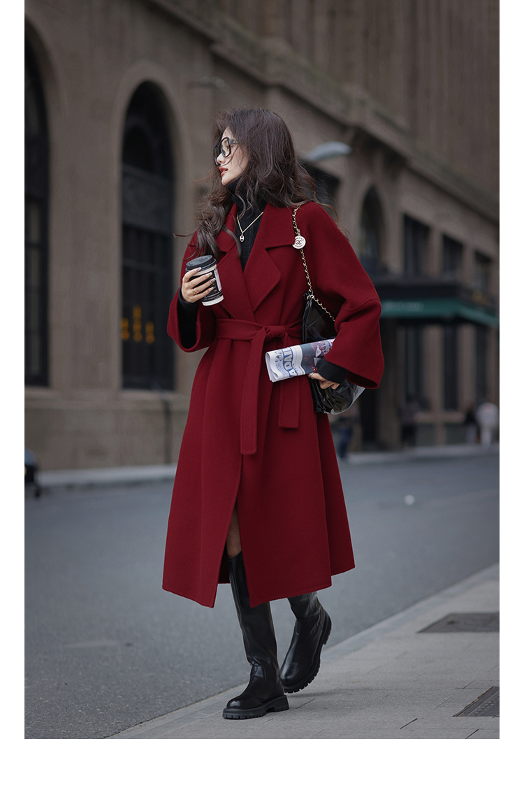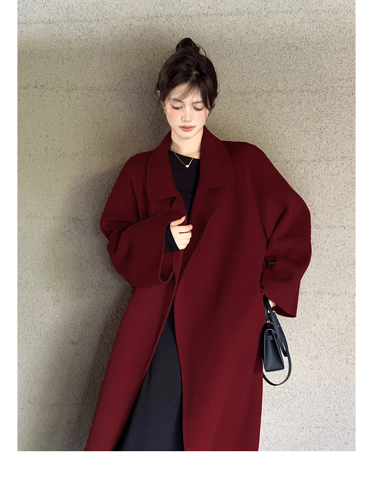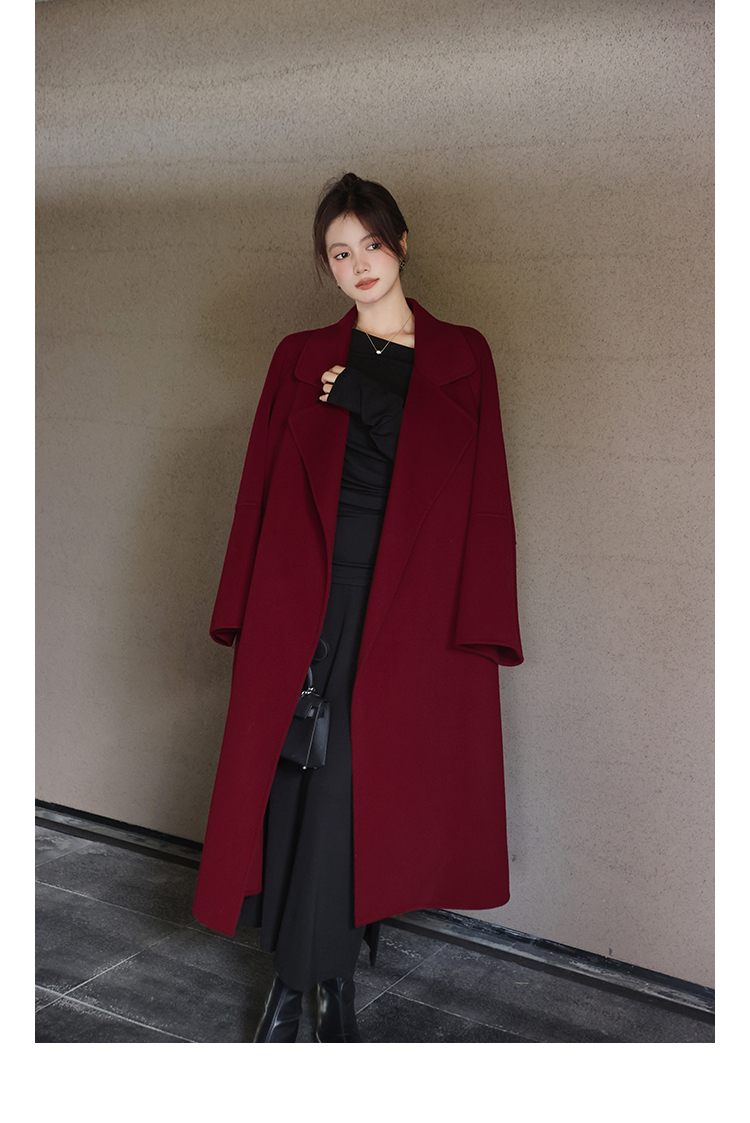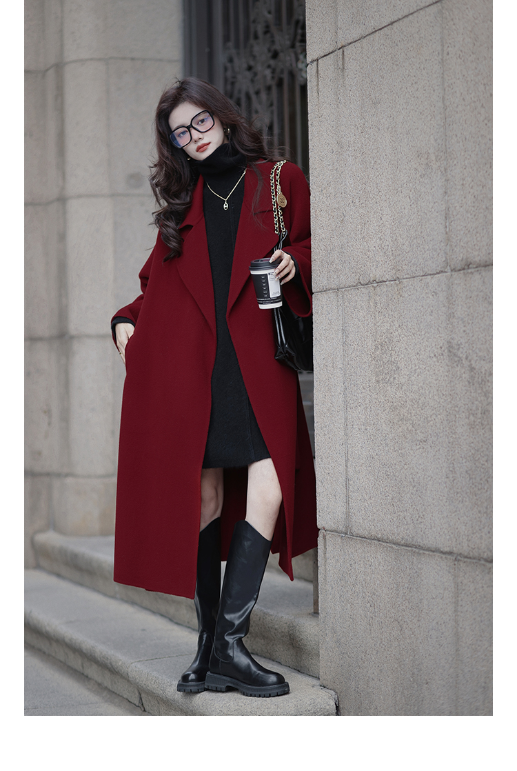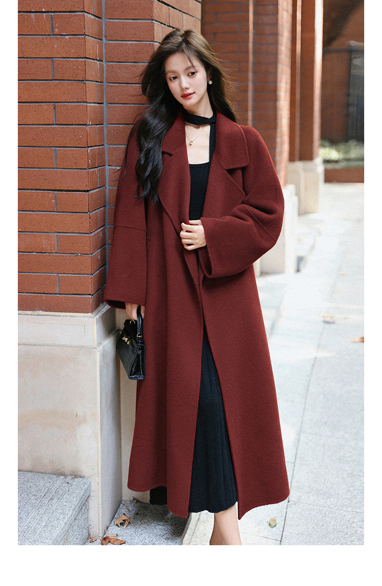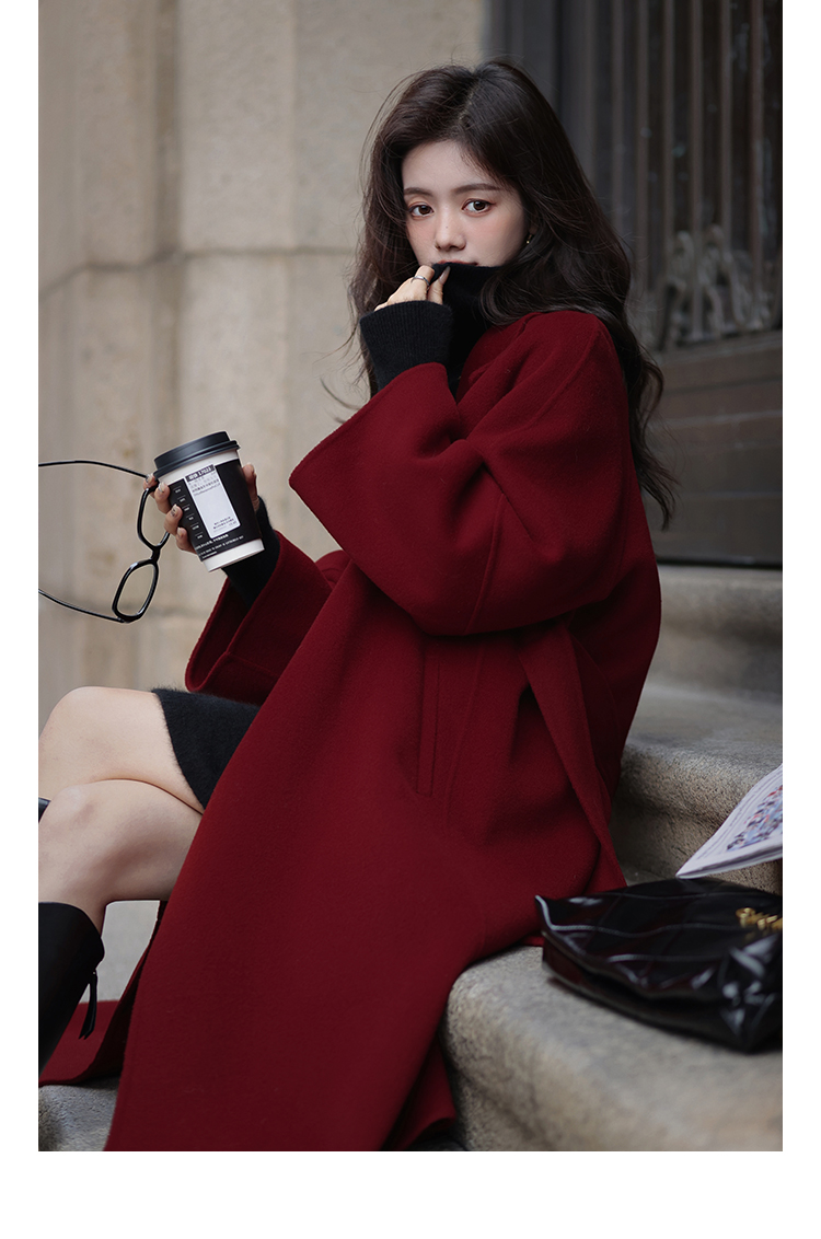 Plums Are Ripe【Downton Coat】Elegant and Sophisticated Red Wool Double-Sided Woolen Winter Coat