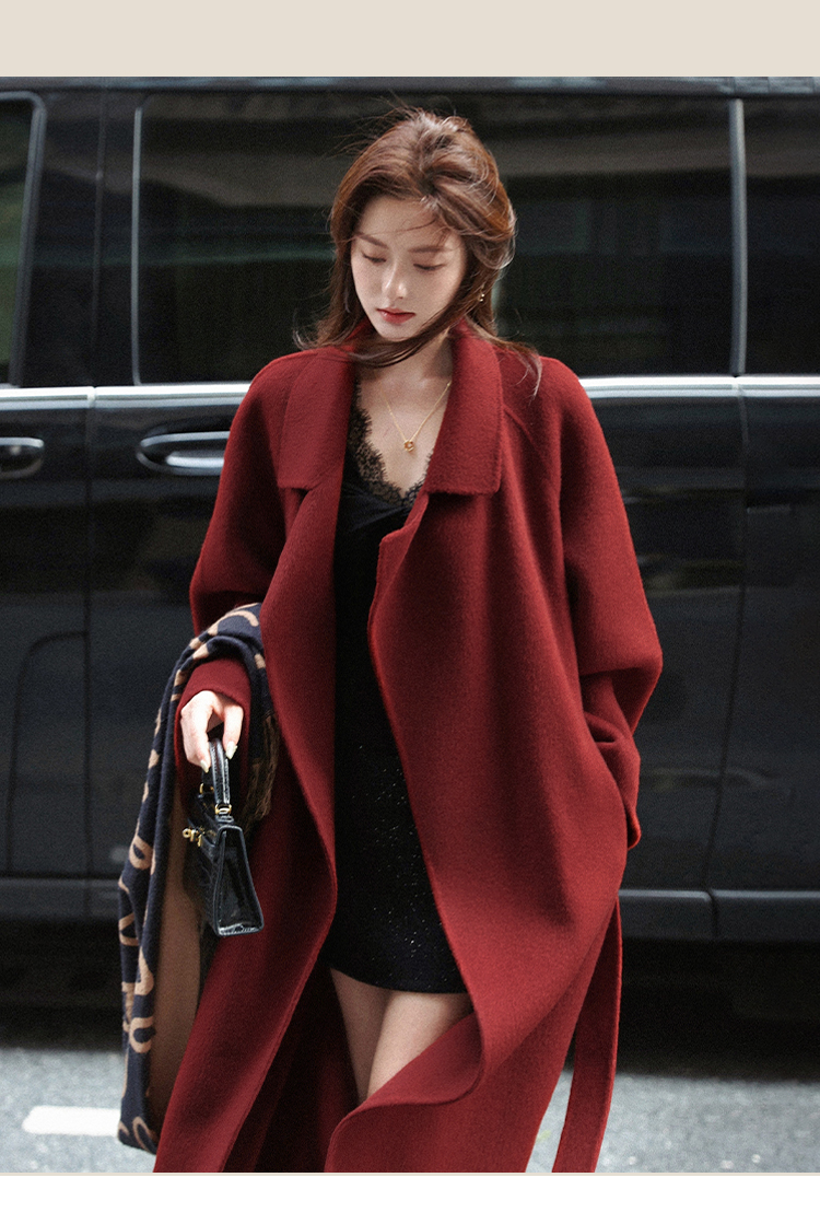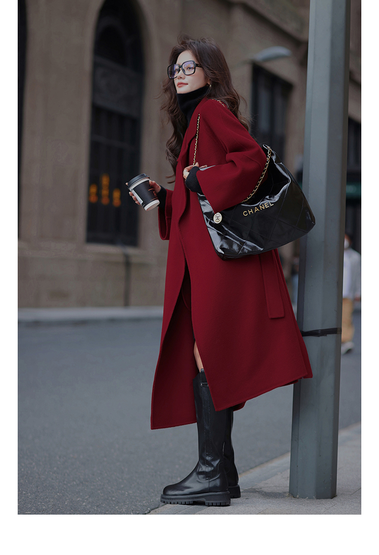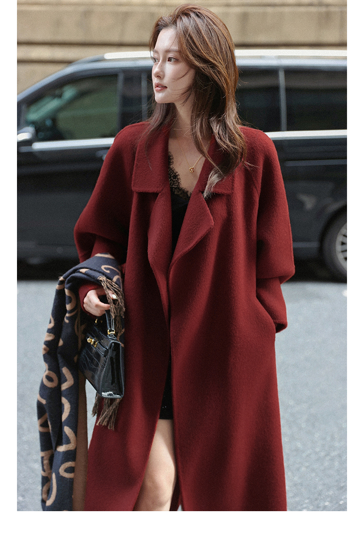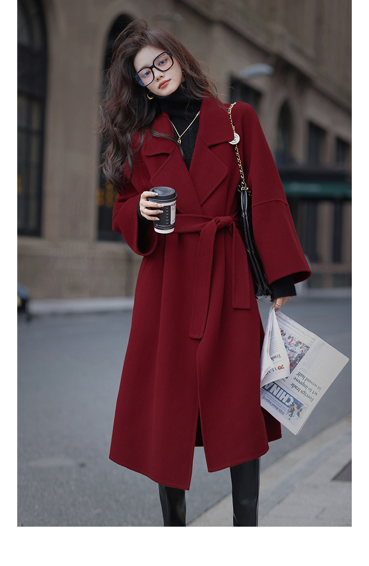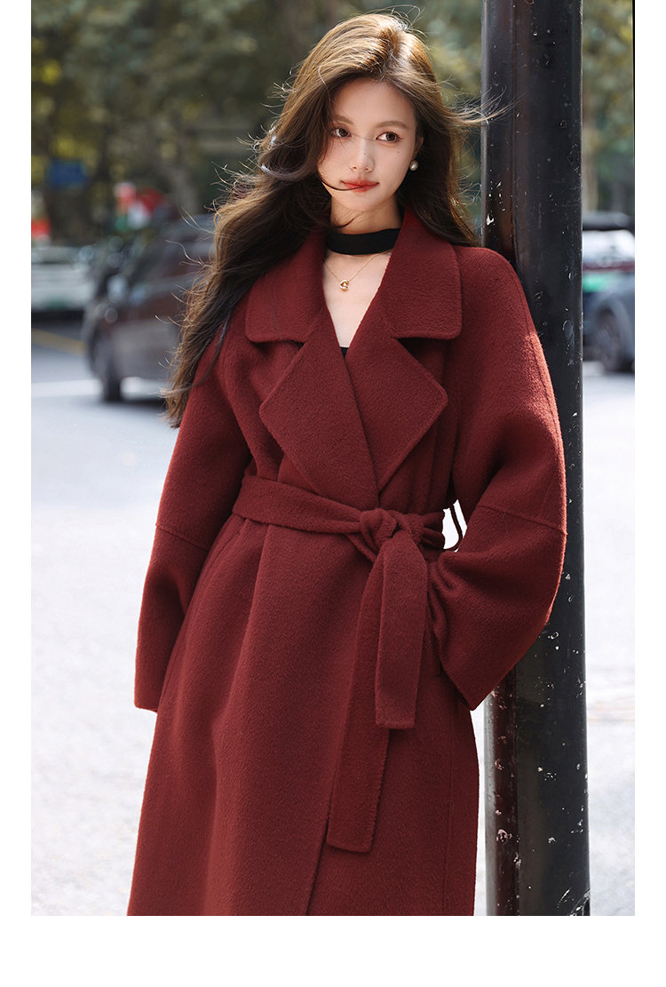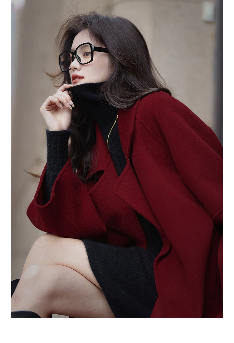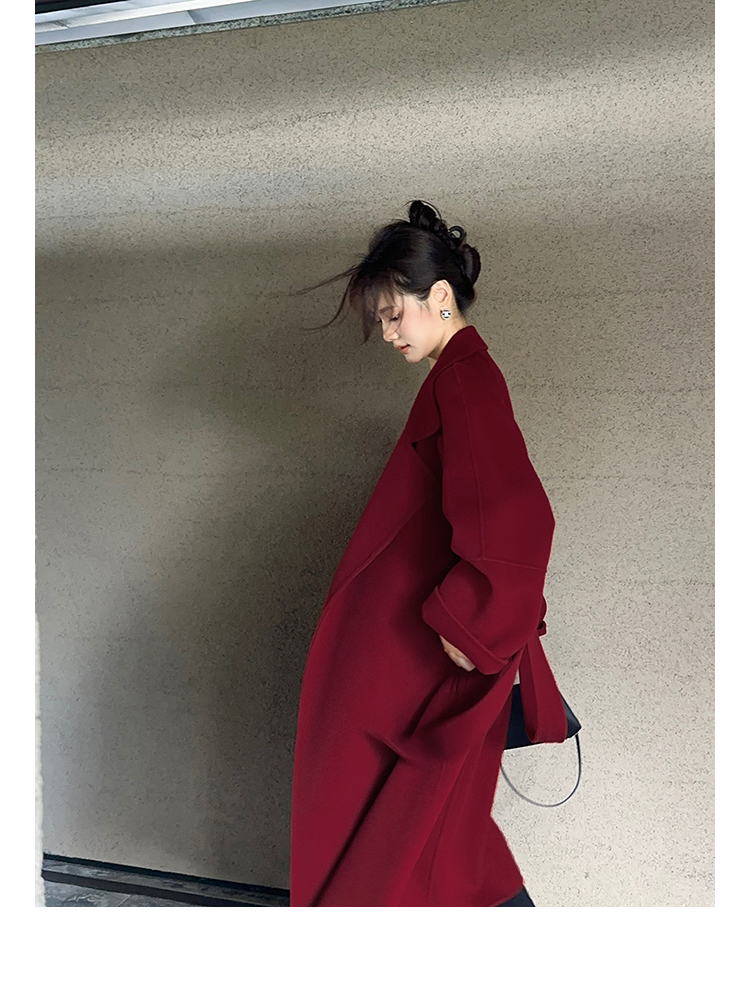 Plums Are Ripe【Downton Coat】Elegant and Sophisticated Red Wool Double-Sided Woolen Winter Coat