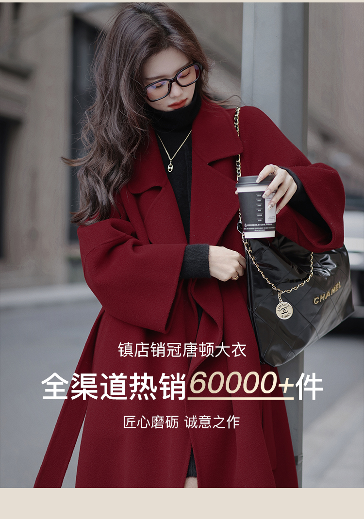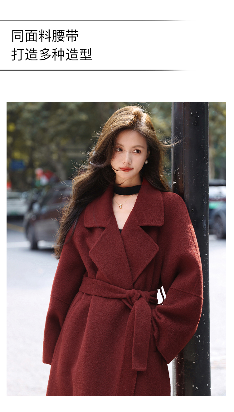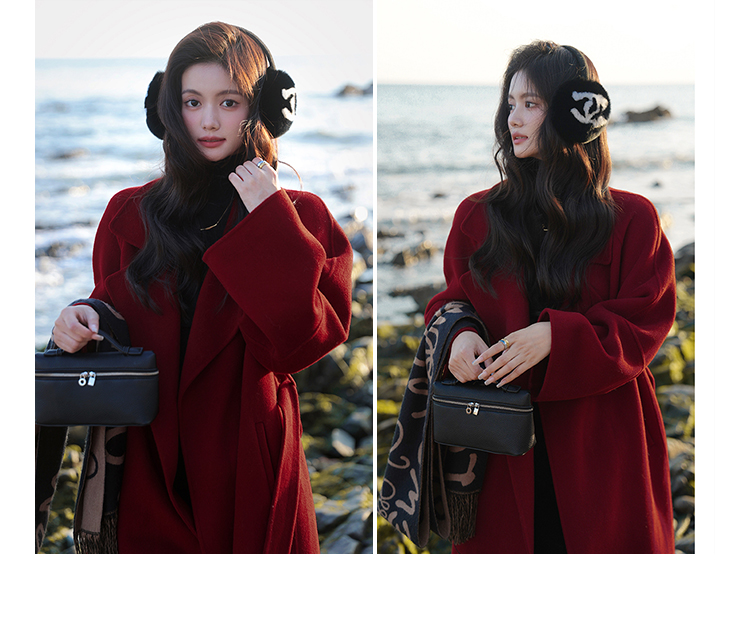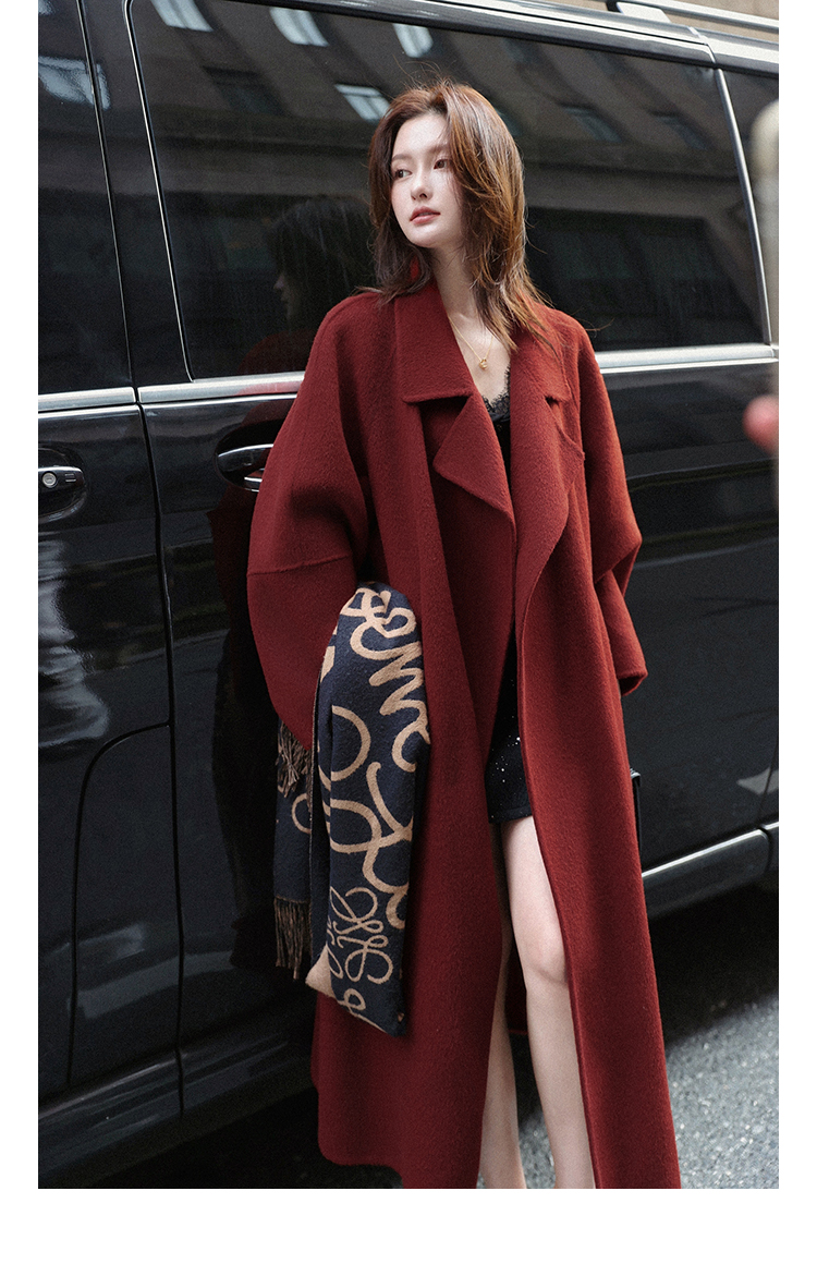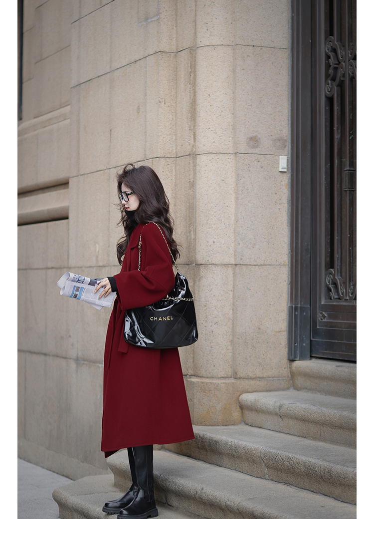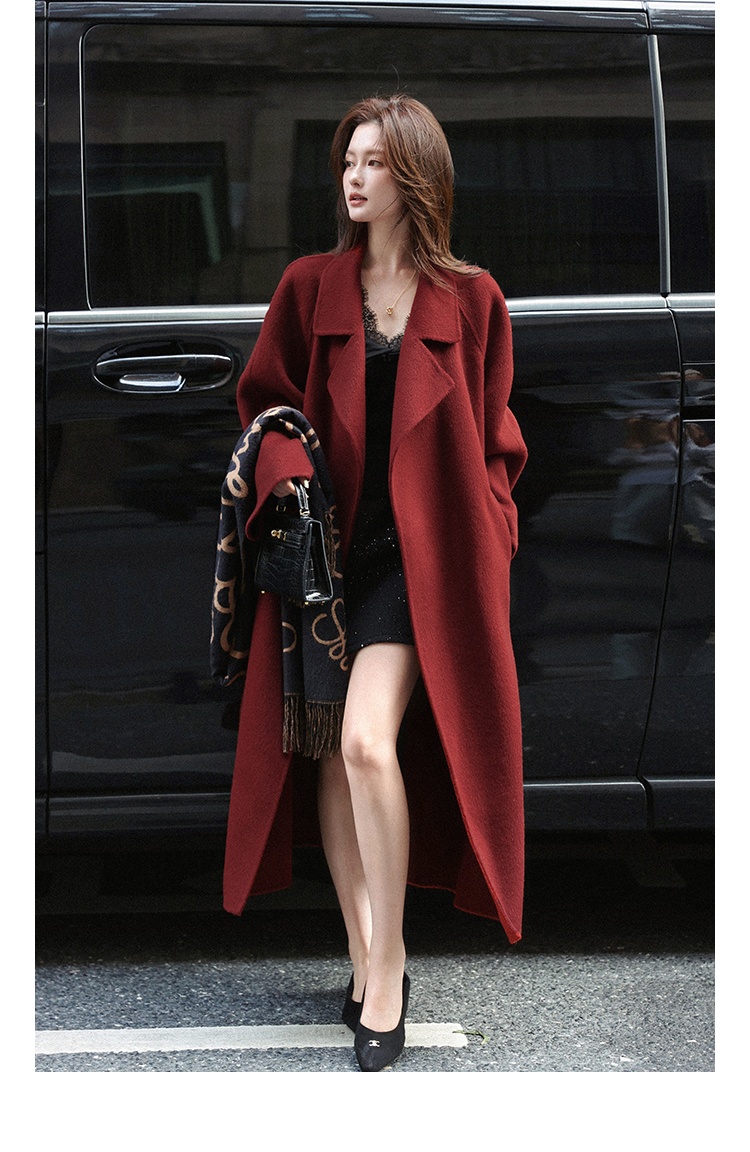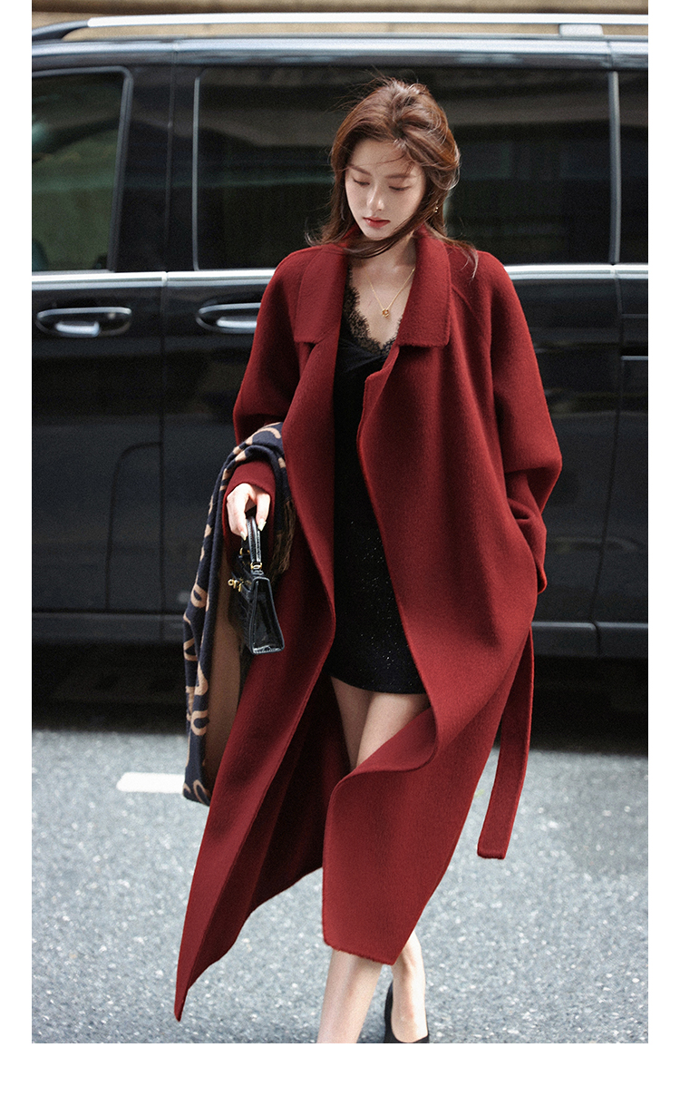 Plums Are Ripe【Downton Coat】Elegant and Sophisticated Red Wool Double-Sided Woolen Winter Coat