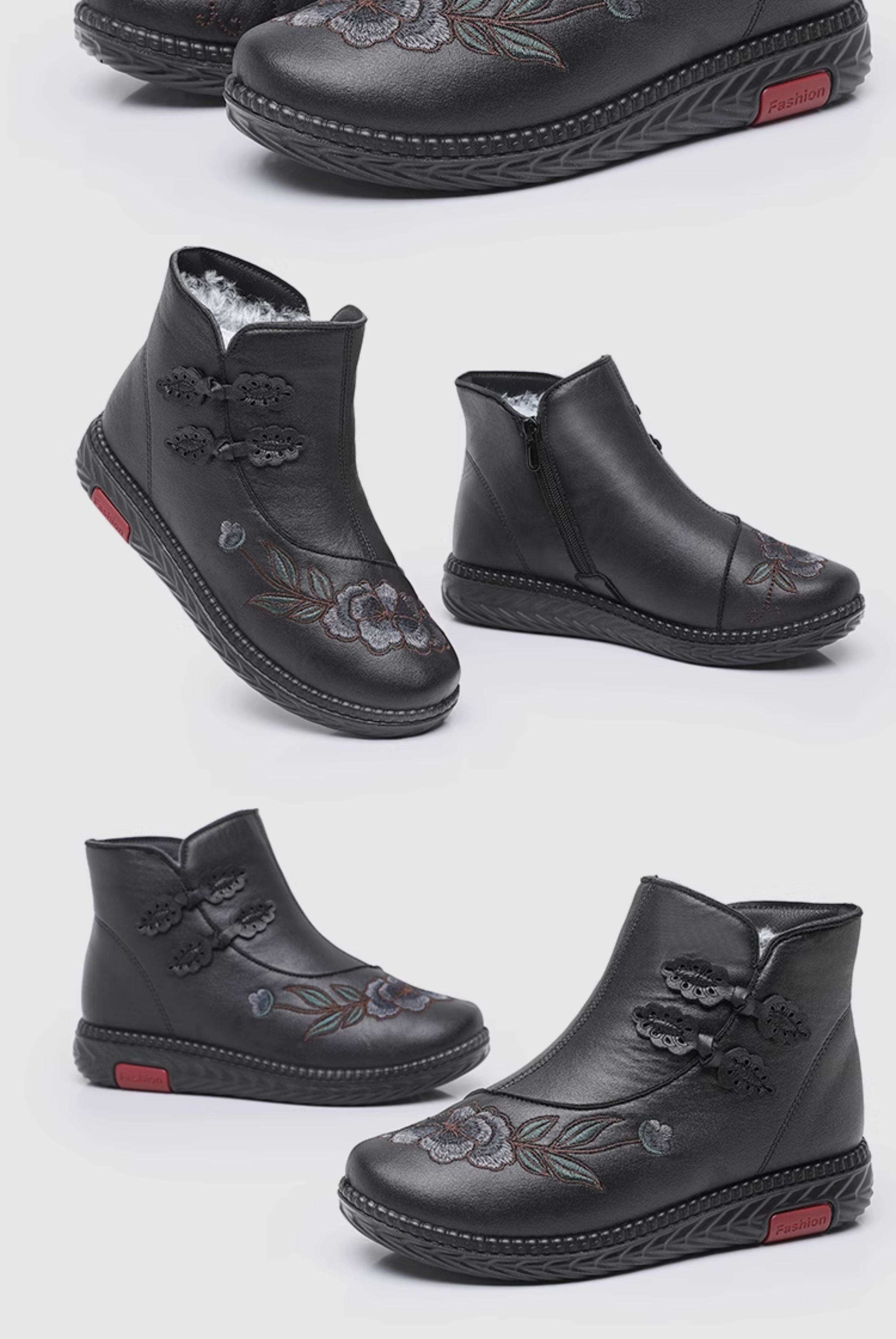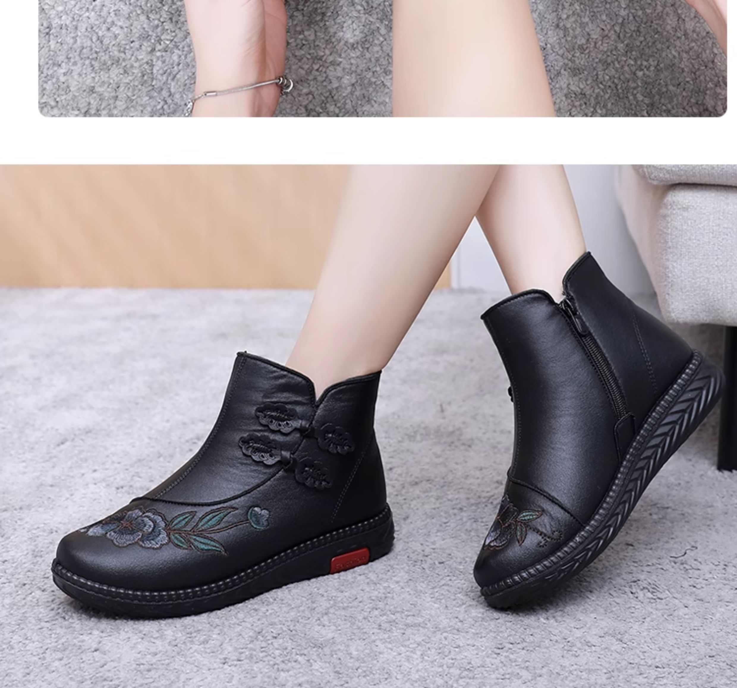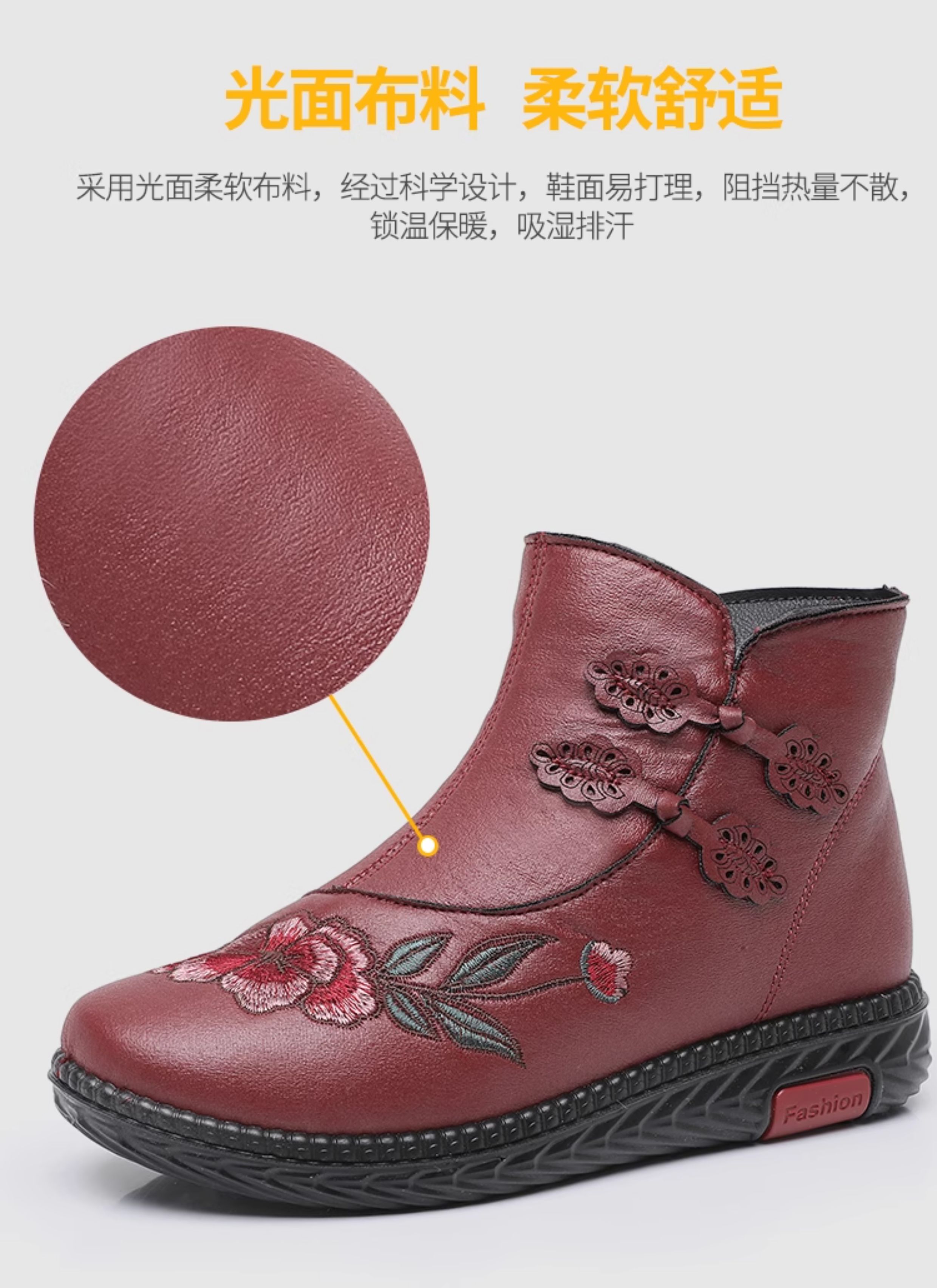 Old Beijing Cloth Shoes for Women, Winter Cotton Shoes with Added Fleece for Warmth, Suitable for Middle-Aged and Elderly Mothers, Waterproof and Non-Slip Shoes for Seniors, Grandma Shoes