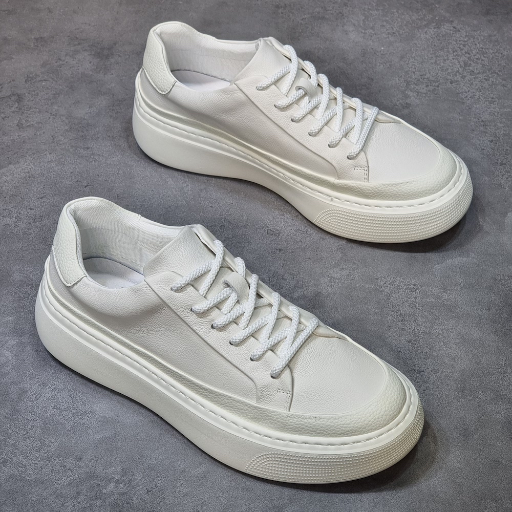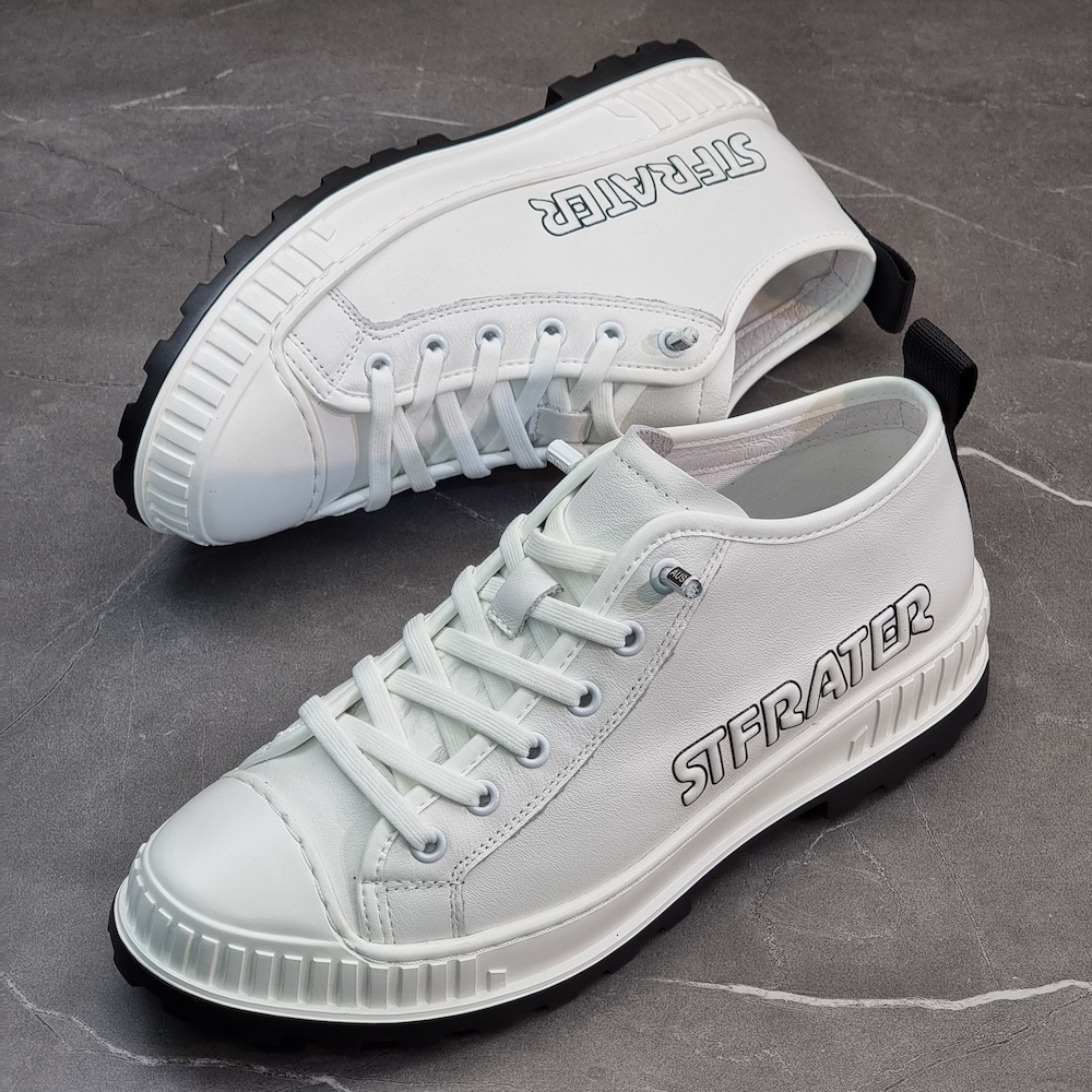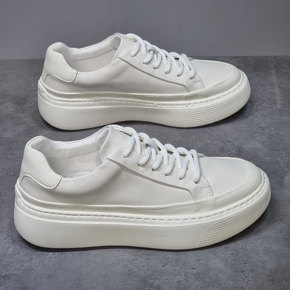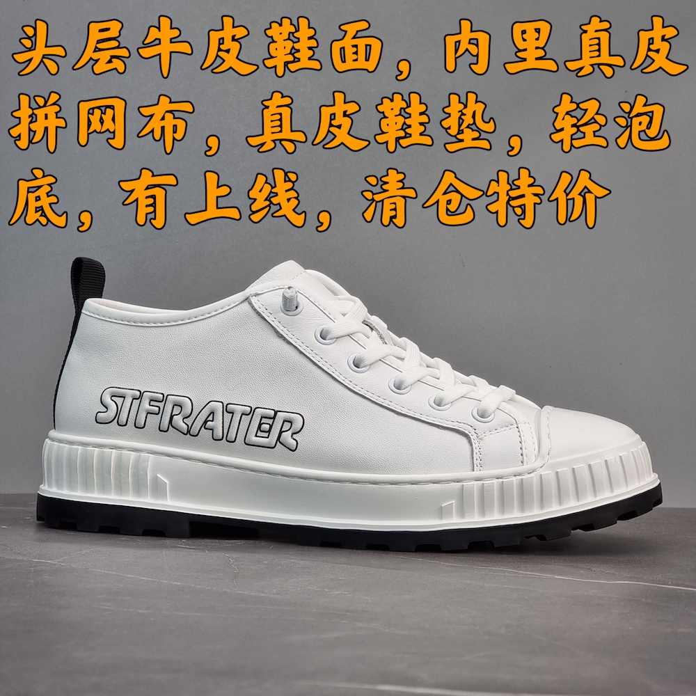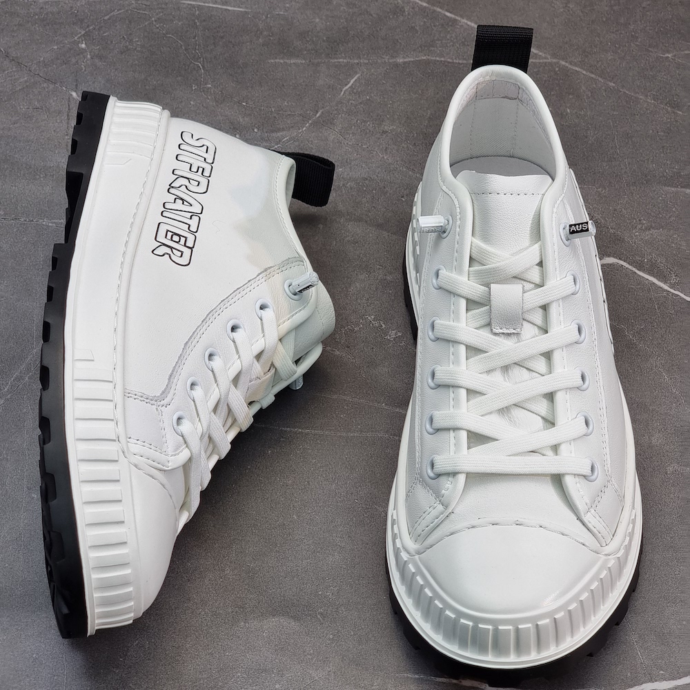 Shopping Mall Genuine Leather Men's Shoes Clearance Special Price Youth Breathable Heightening Mid-Top White Shoes Simple Versatile Casual Shoes