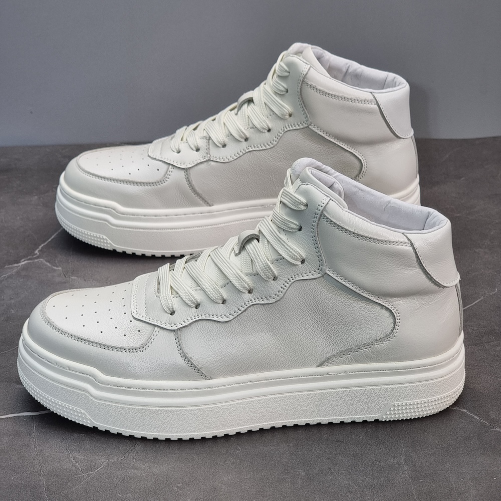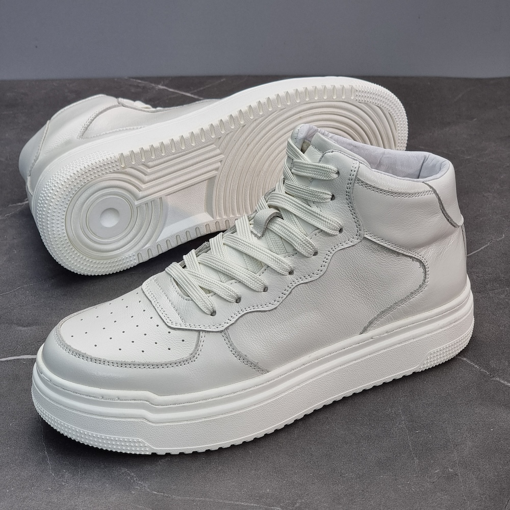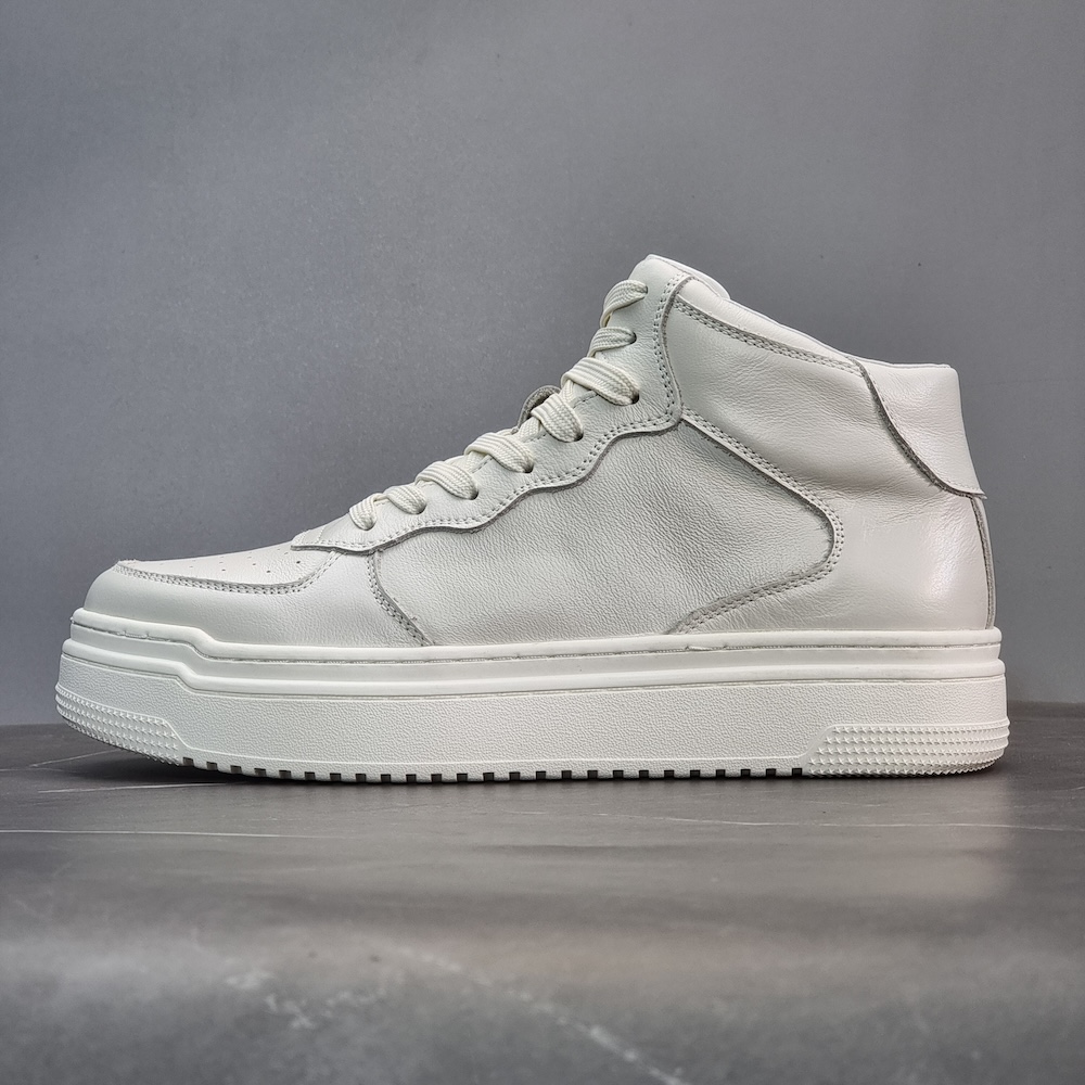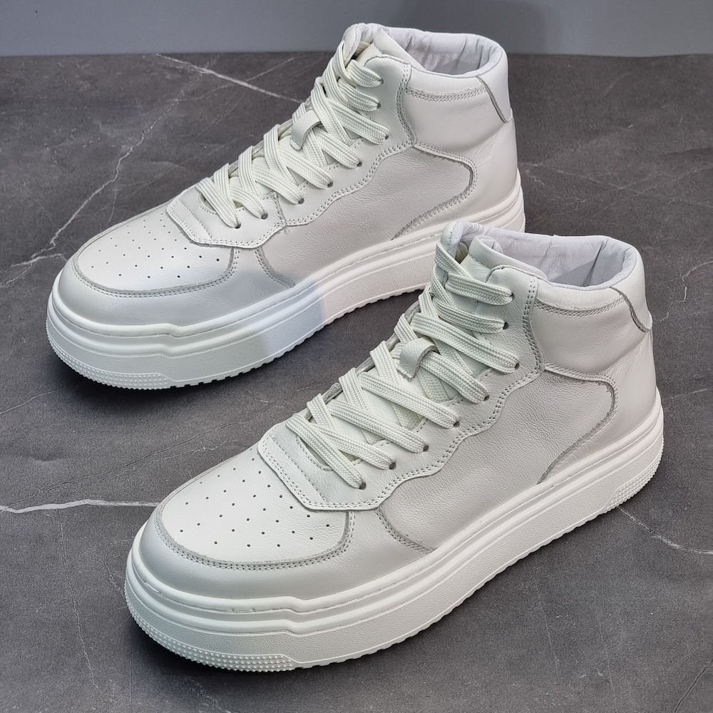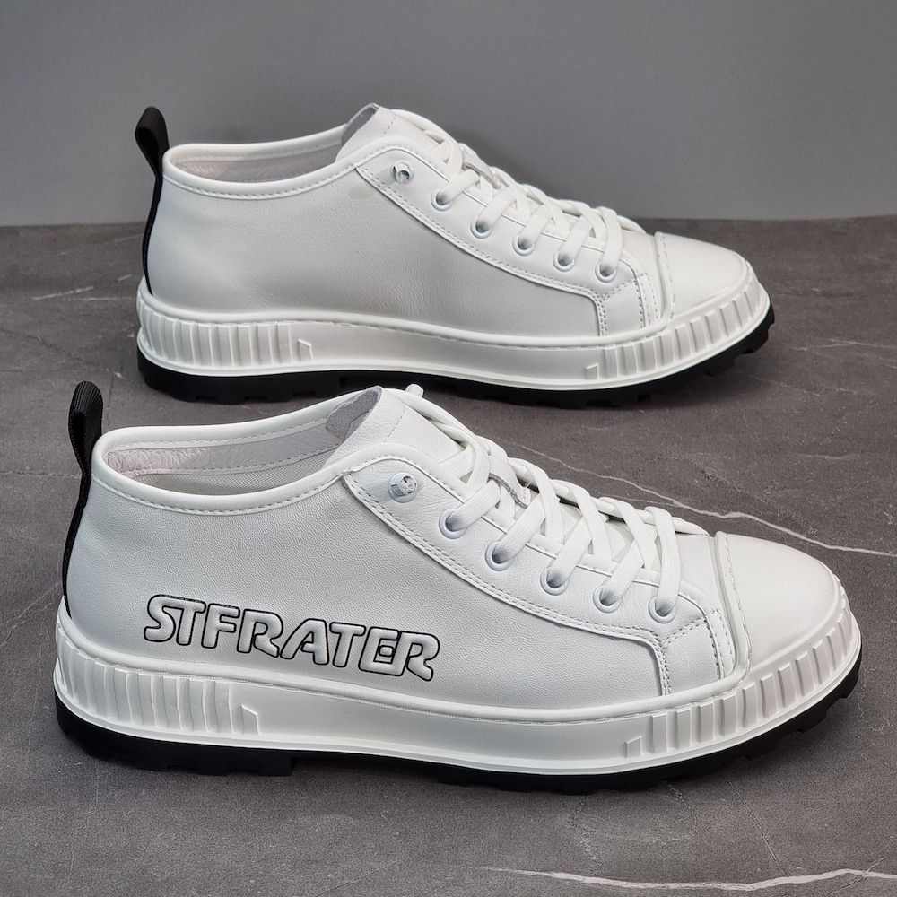 Shopping Mall Genuine Leather Men's Shoes Clearance Special Price Youth Breathable Heightening Mid-Top White Shoes Simple Versatile Casual Shoes
