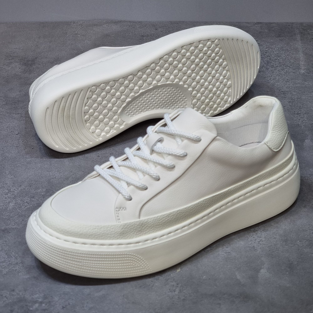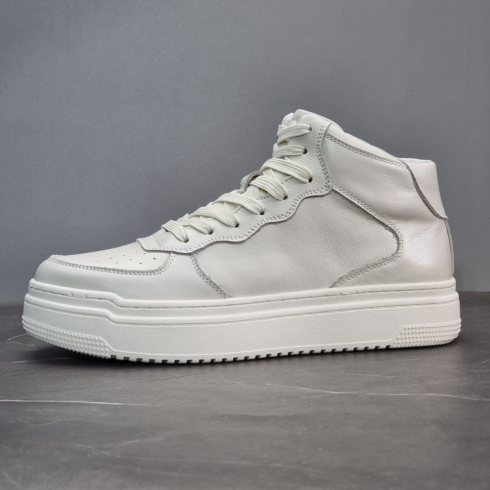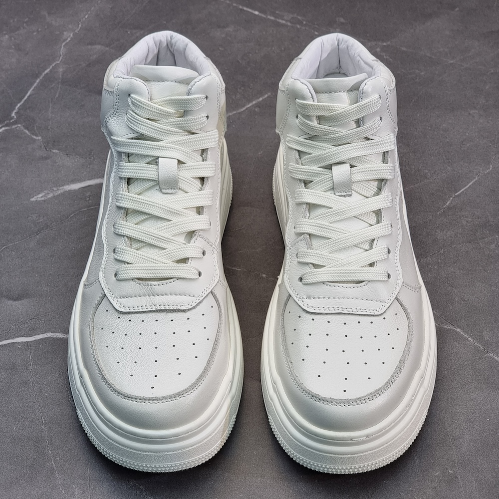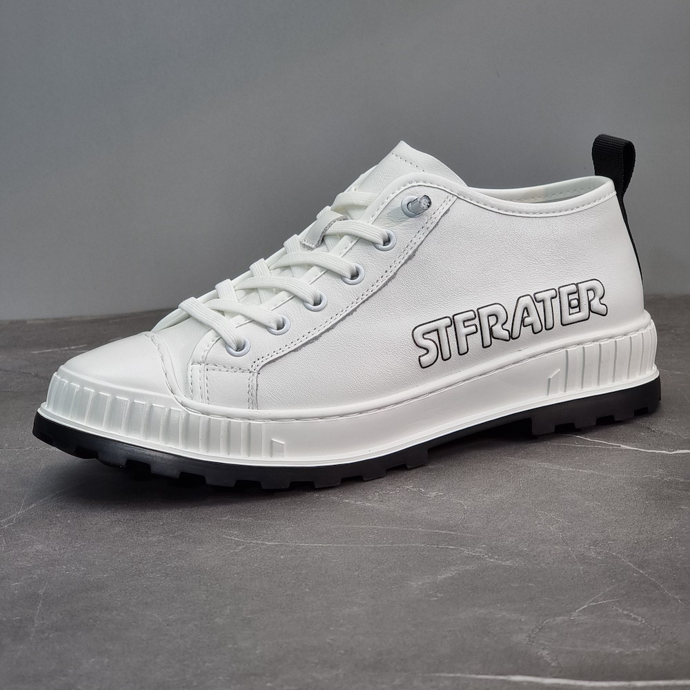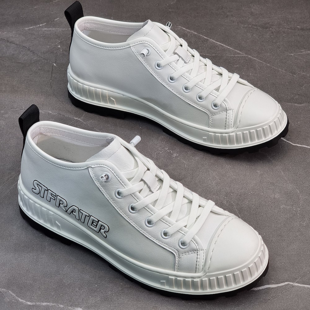 Shopping Mall Genuine Leather Men's Shoes Clearance Special Price Youth Breathable Heightening Mid-Top White Shoes Simple Versatile Casual Shoes