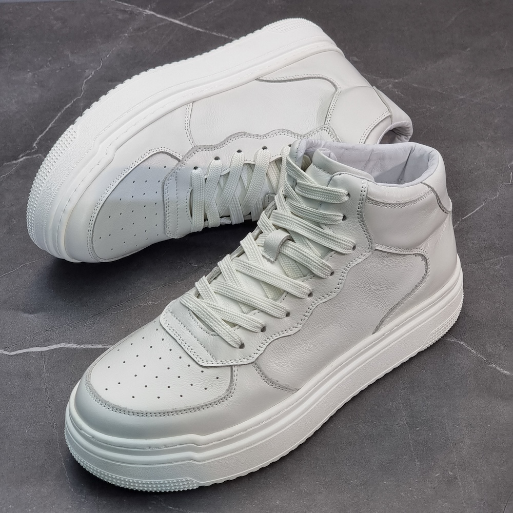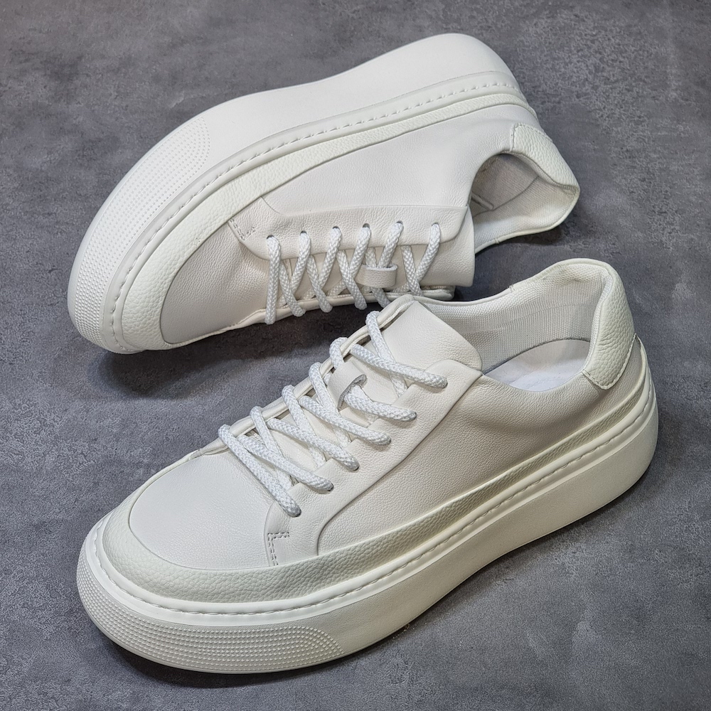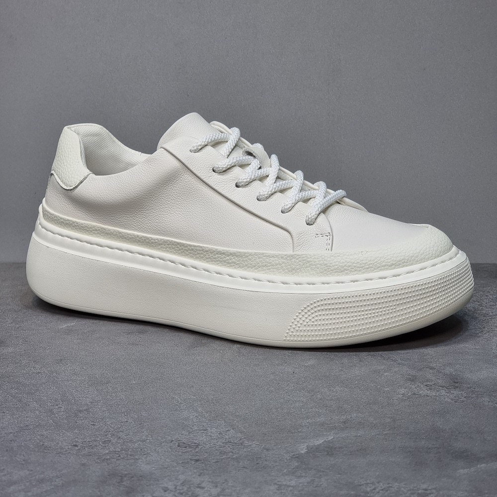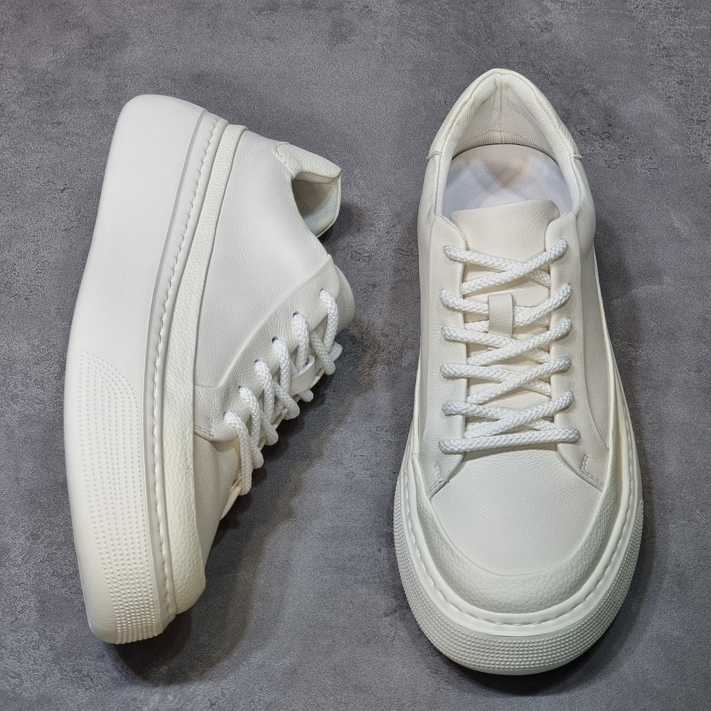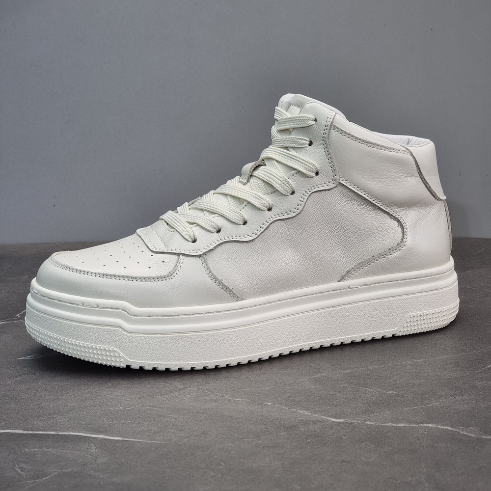 Shopping Mall Genuine Leather Men's Shoes Clearance Special Price Youth Breathable Heightening Mid-Top White Shoes Simple Versatile Casual Shoes