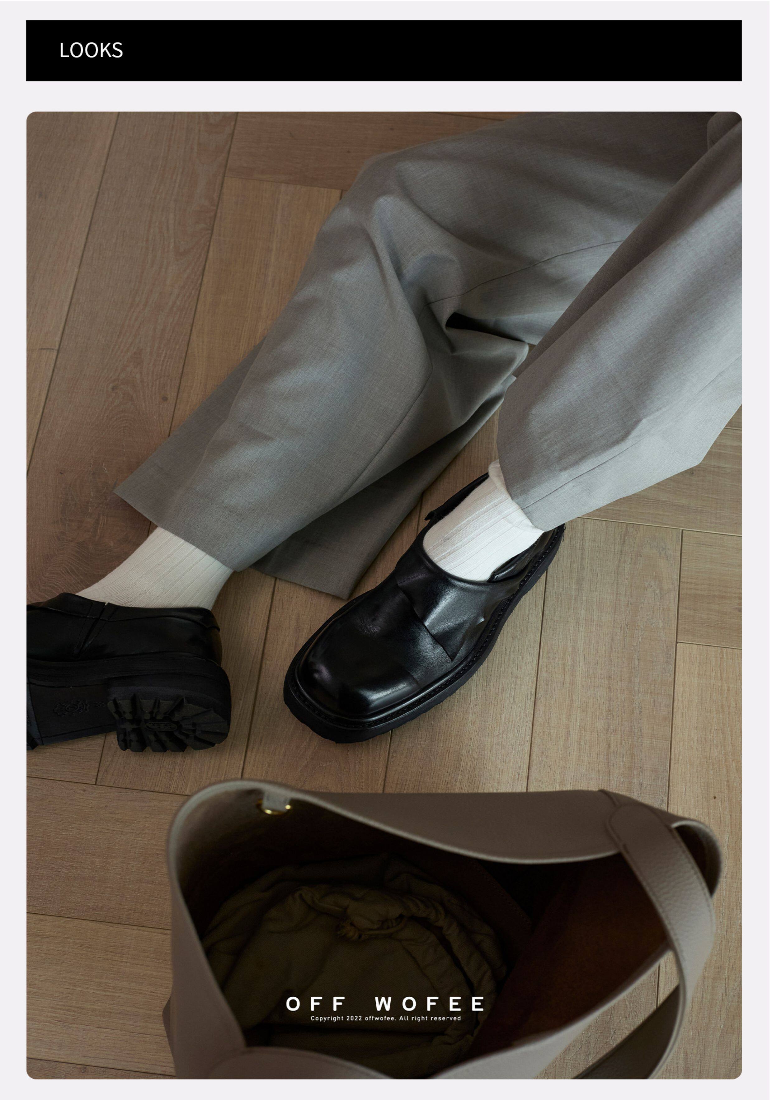 Offwofee Washed Horse Leather Round-Toe Loafers with Height-Increasing Thick Soles, Buckle Stitching Leather Shoes for Commuting, Unisex Shoes