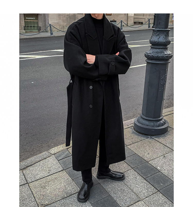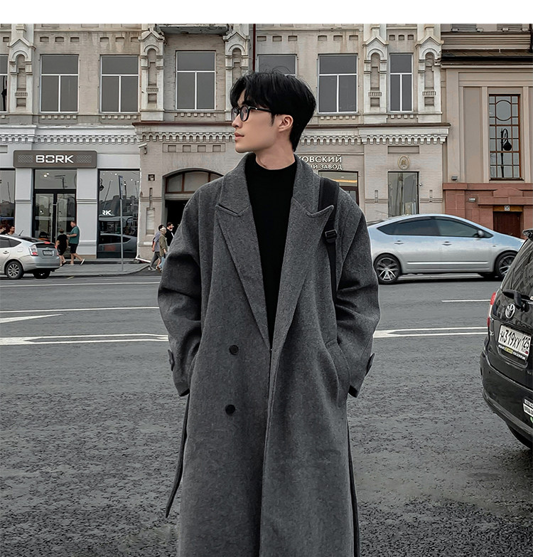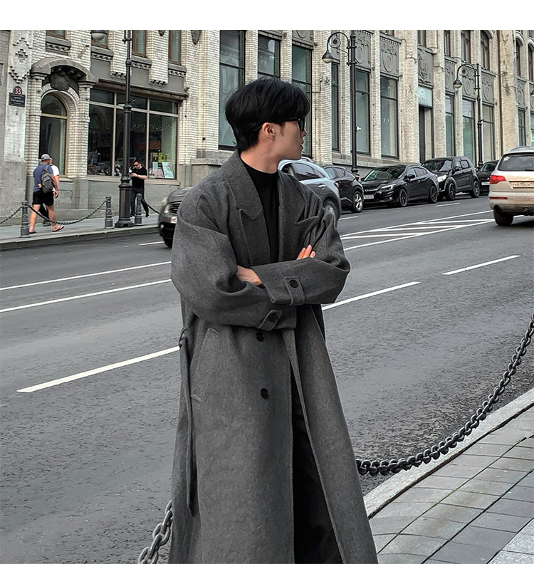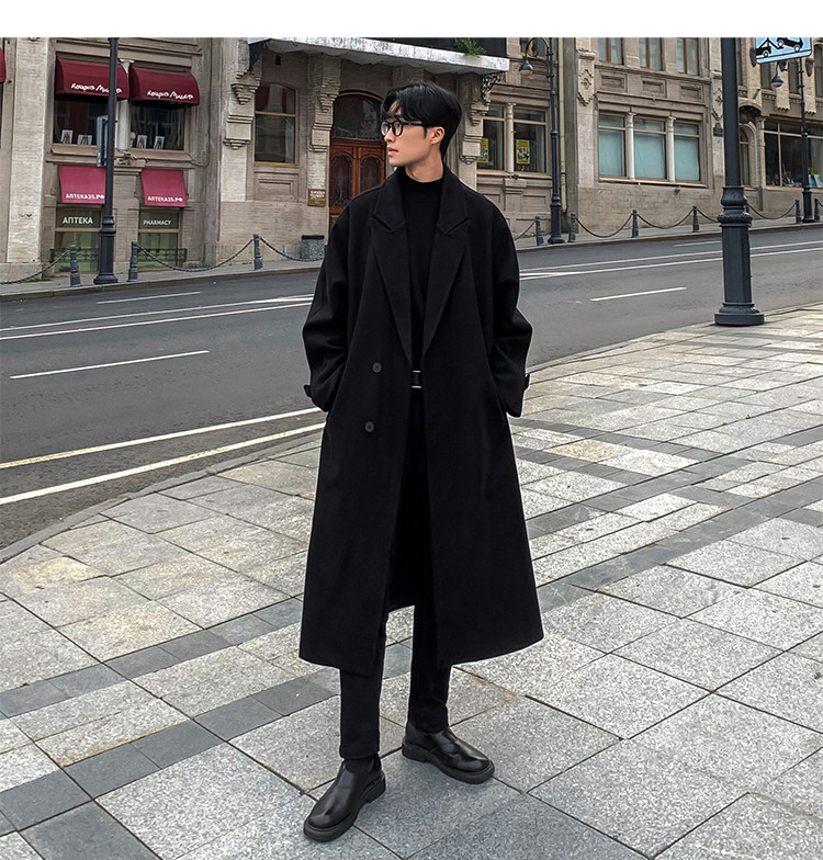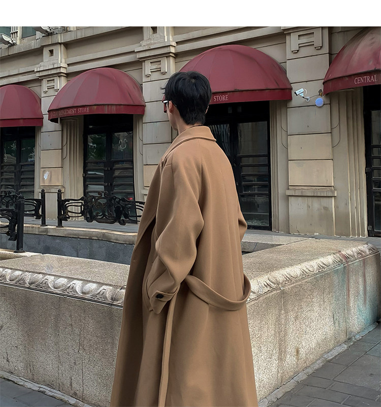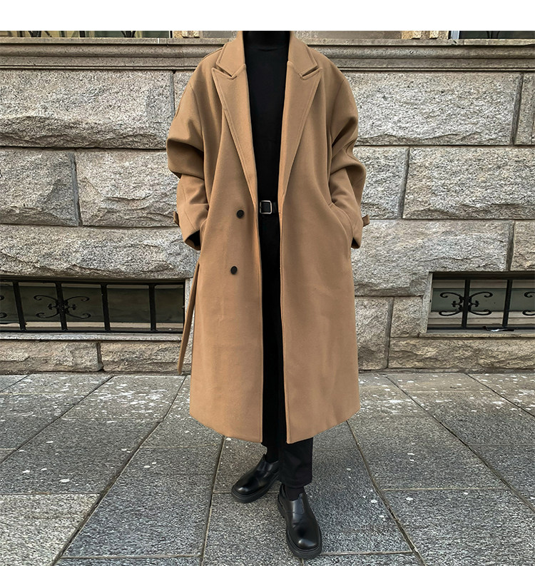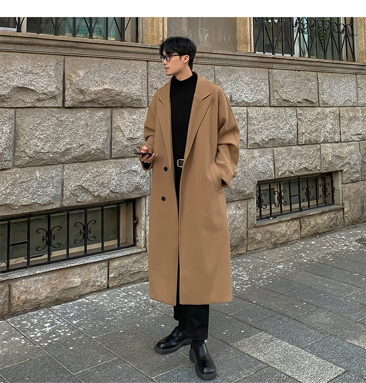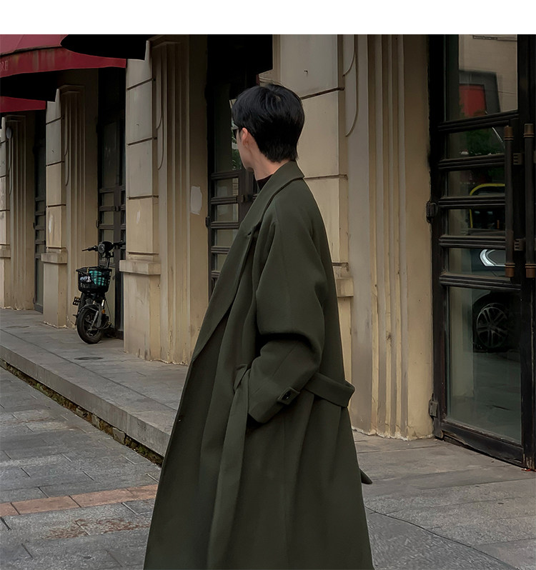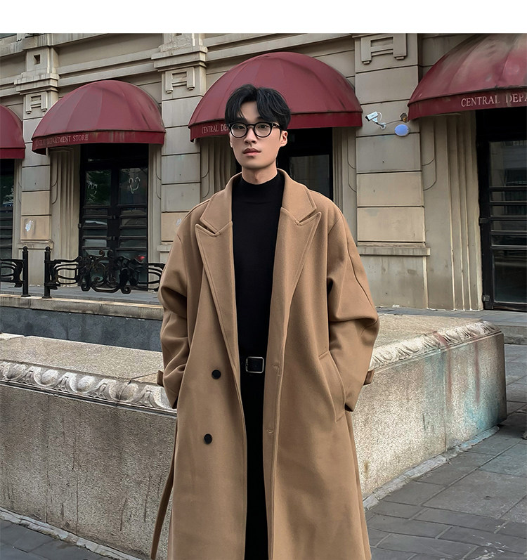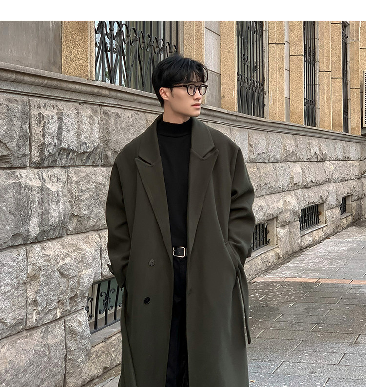 Woolen Coat for Men in Autumn and Winter, Quilted and Thickened, Loose Casual Over-The-Knee Trench Coat, Mid-Length High-End Woolen Jacket