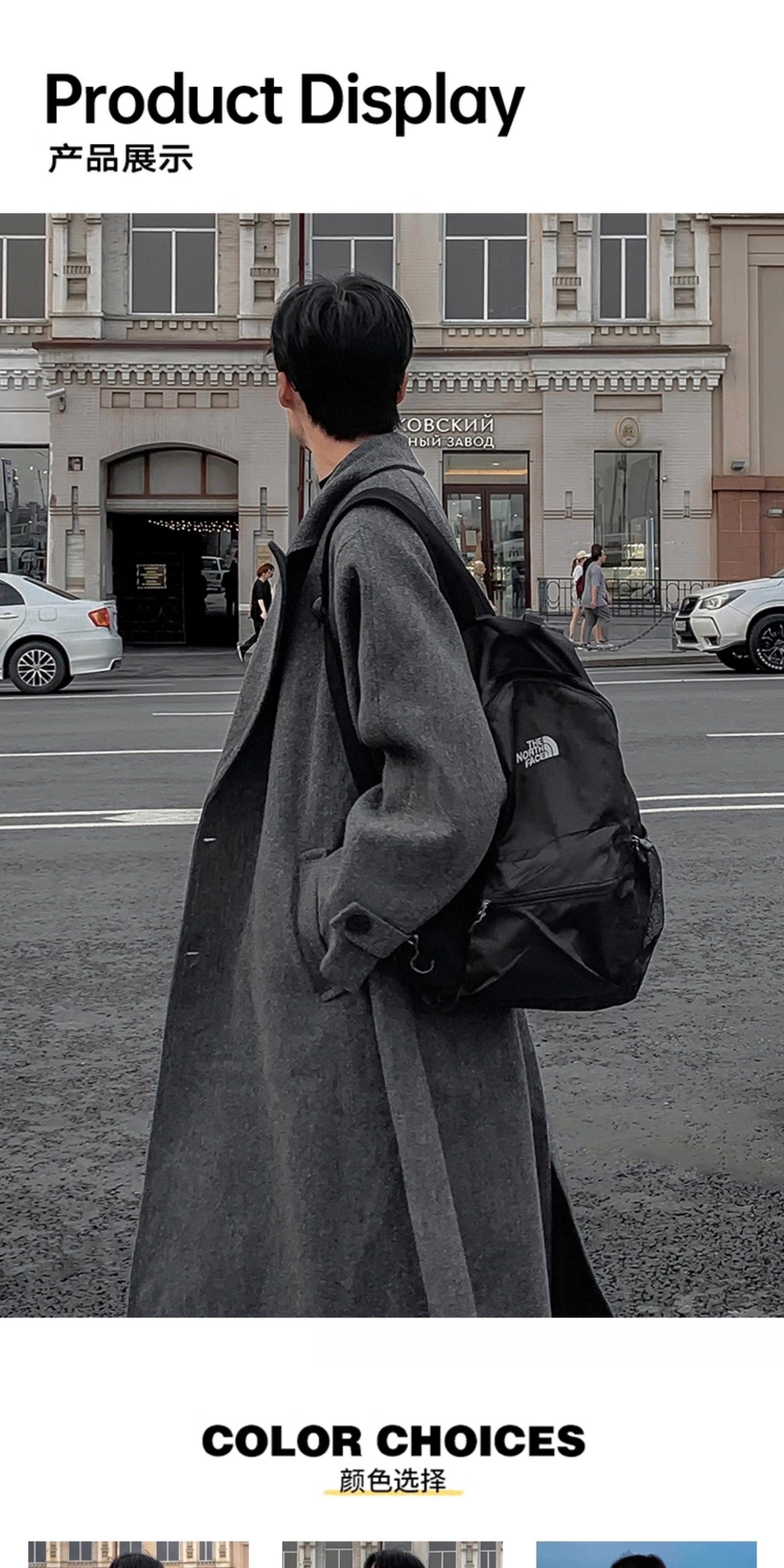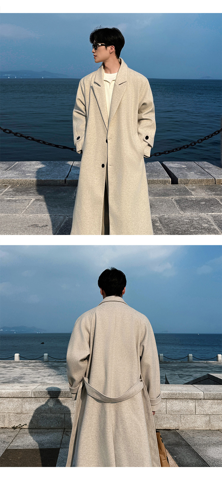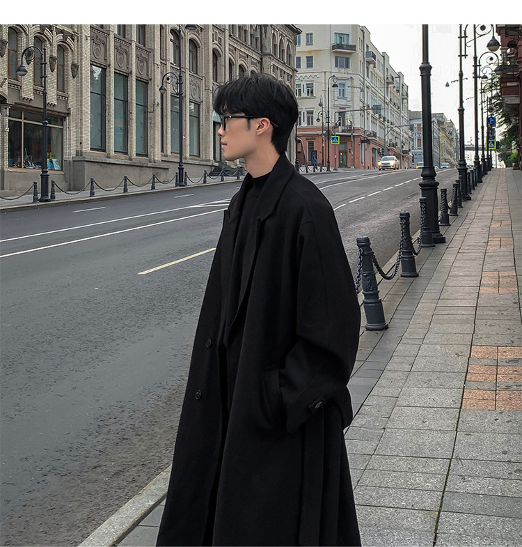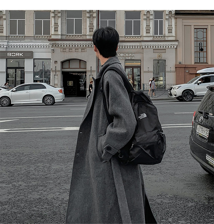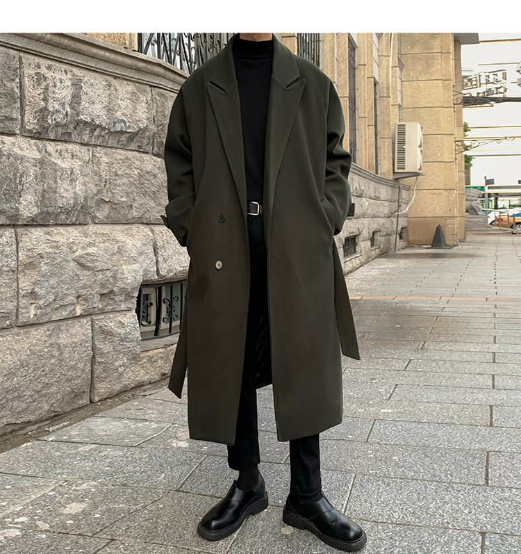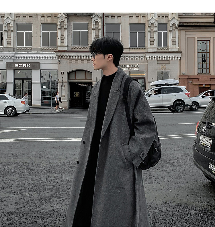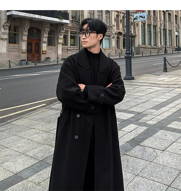 Woolen Coat for Men in Autumn and Winter, Quilted and Thickened, Loose Casual Over-The-Knee Trench Coat, Mid-Length High-End Woolen Jacket