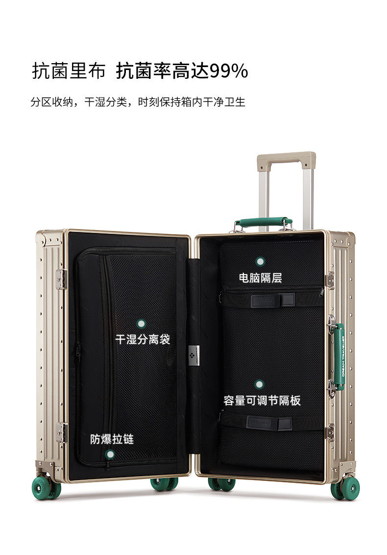 Dream Traveler All-Aluminum Magnesium Alloy Trolley Case with Universal Wheels, Stylish Business Travel Suitcase, High-End Carry-On Luggage, Password Suitcase