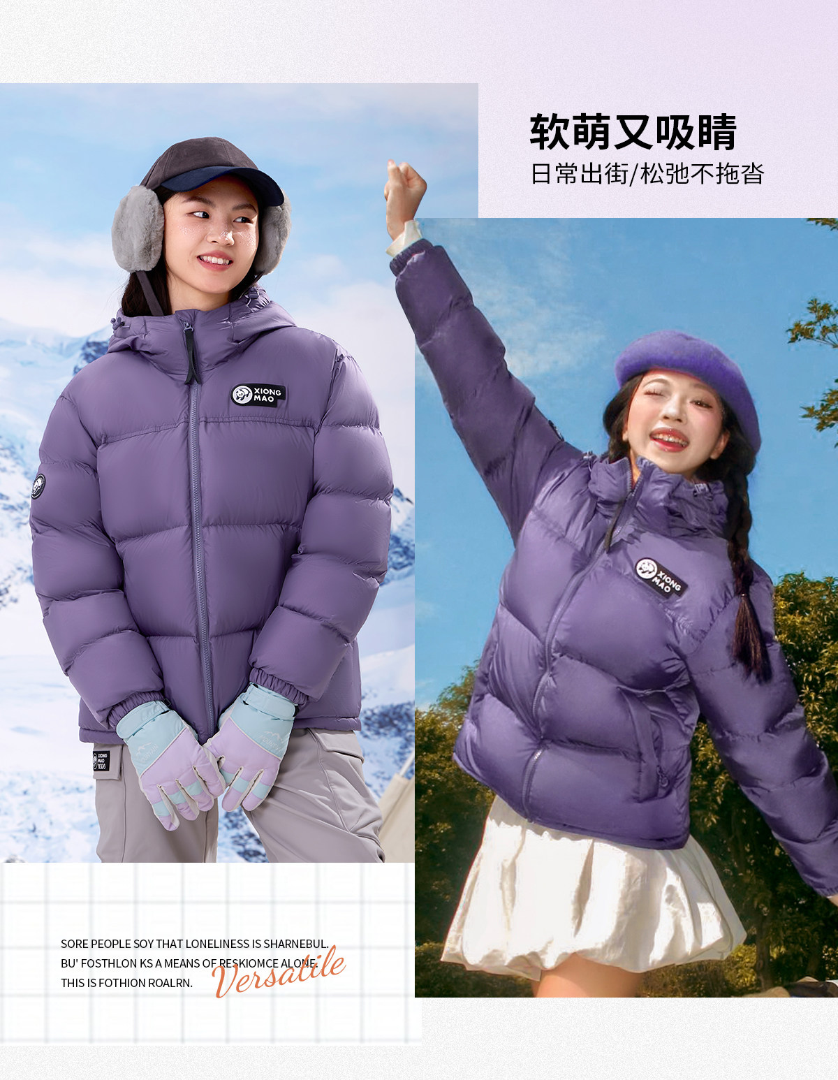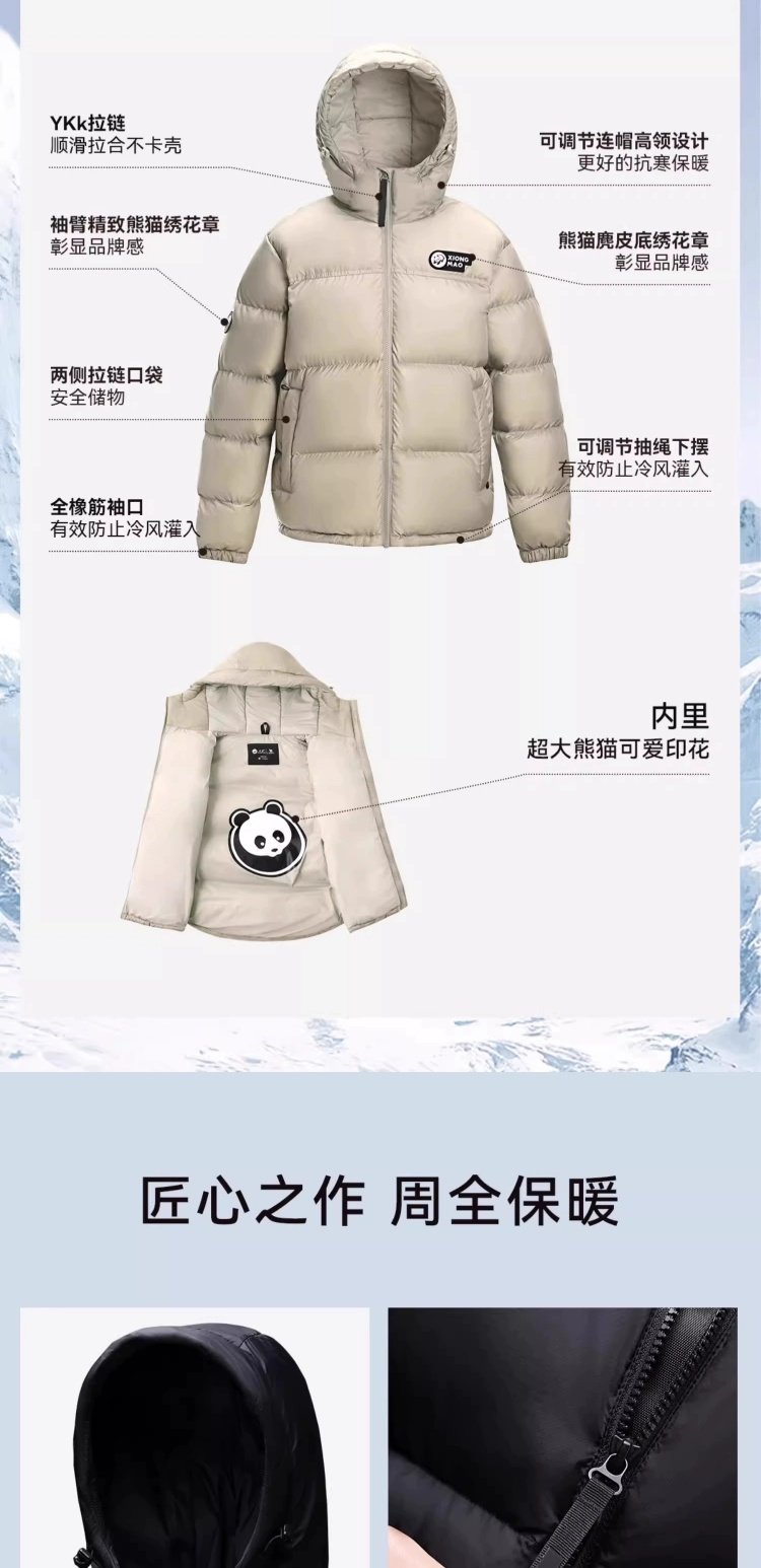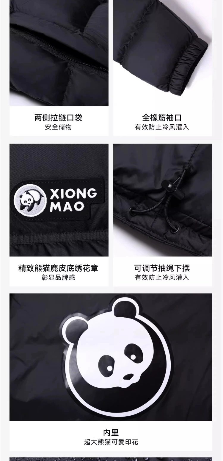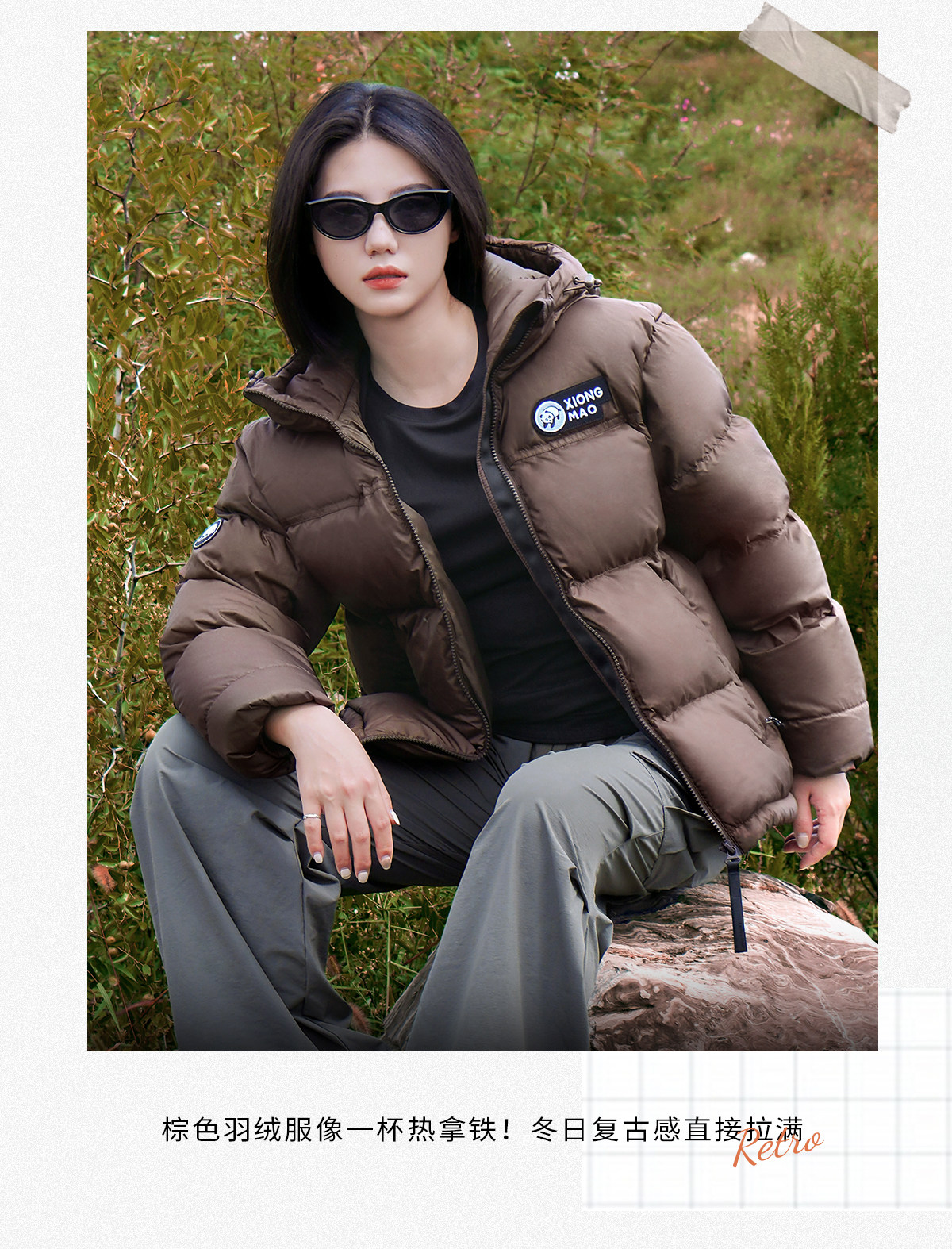 Camel down Jacket for Women, Panda Outdoor 2025 Winter Short Style, Super Cute and Warm Puffer Jacket, Black Coat