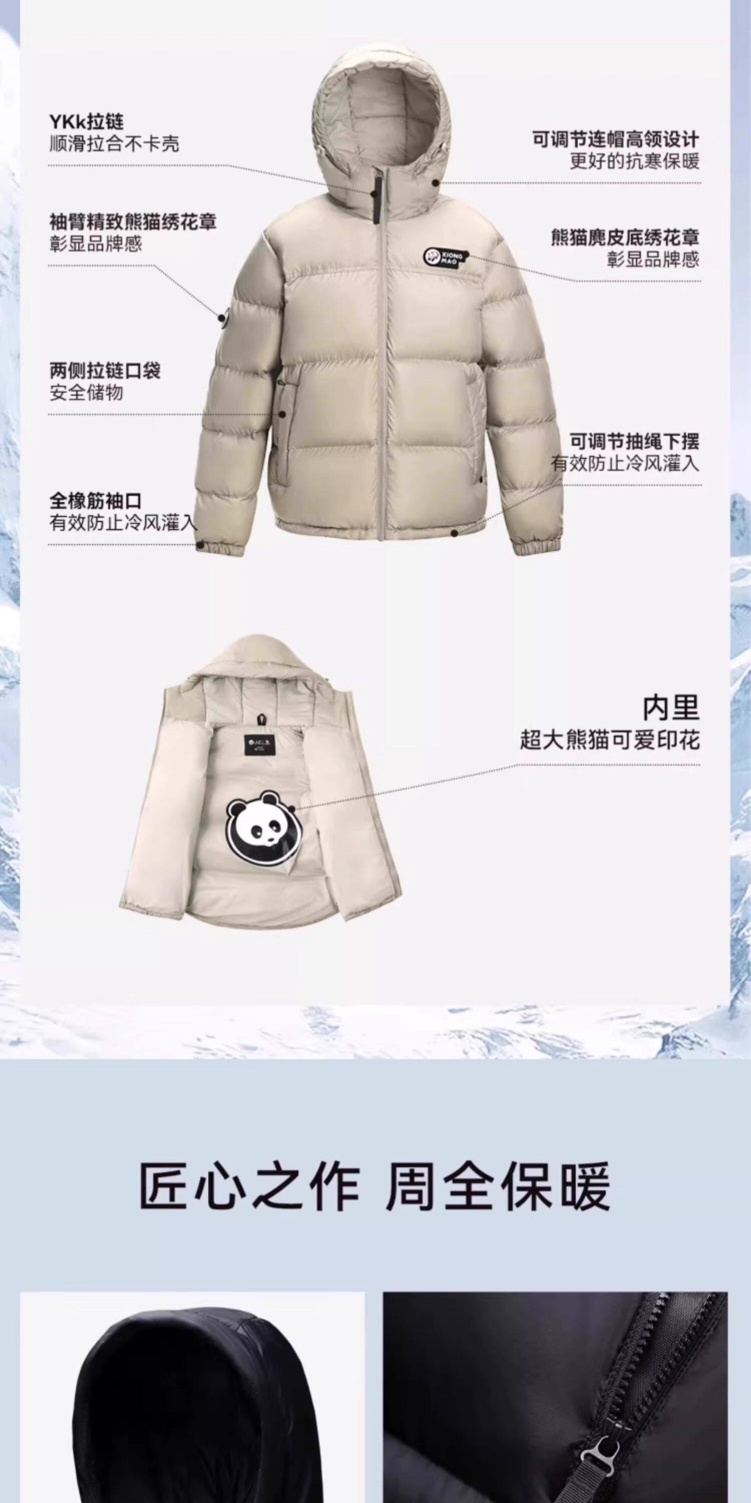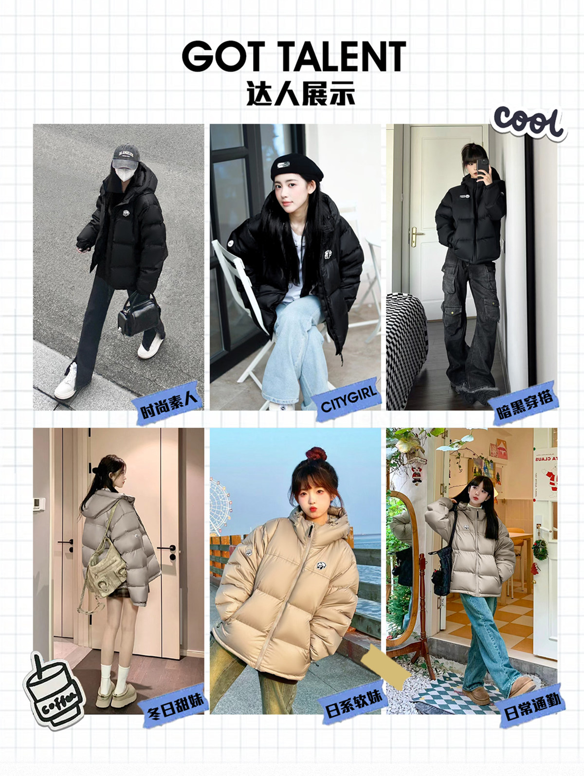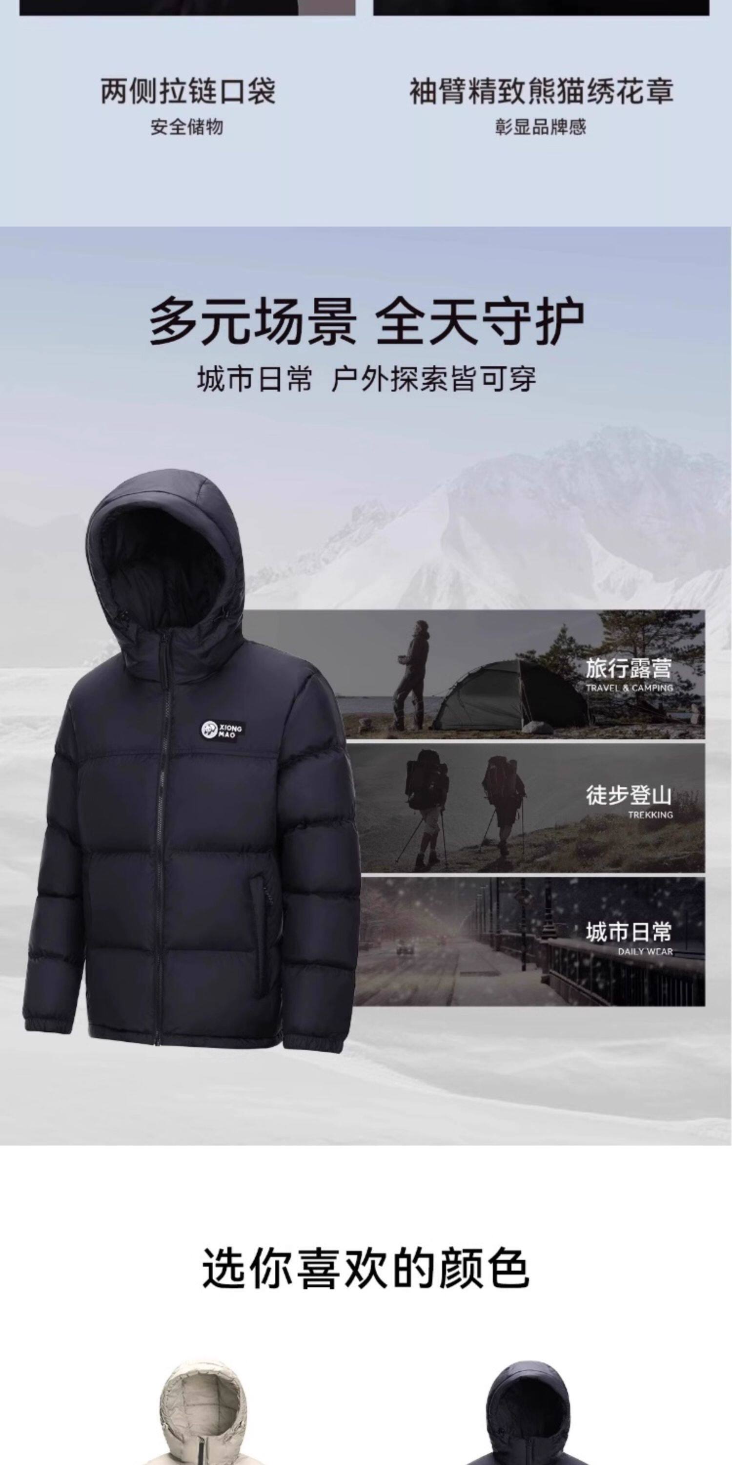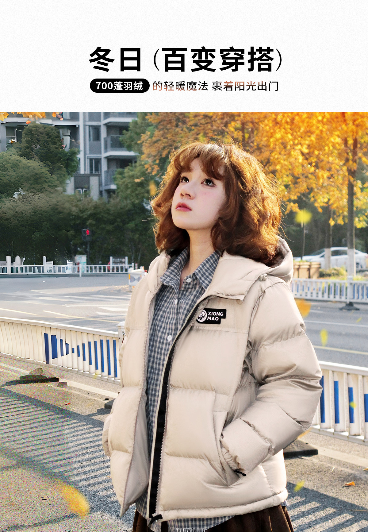 Camel down Jacket for Women, Panda Outdoor 2025 Winter Short Style, Super Cute and Warm Puffer Jacket, Black Coat