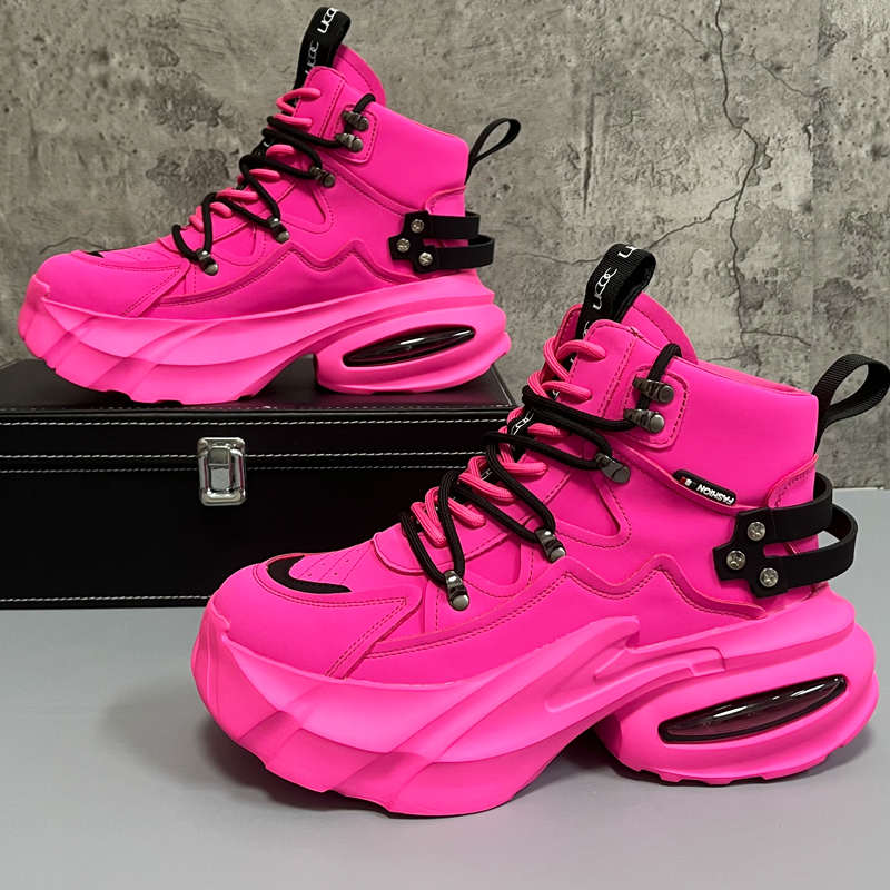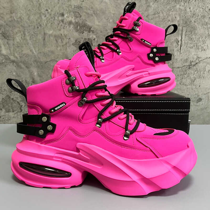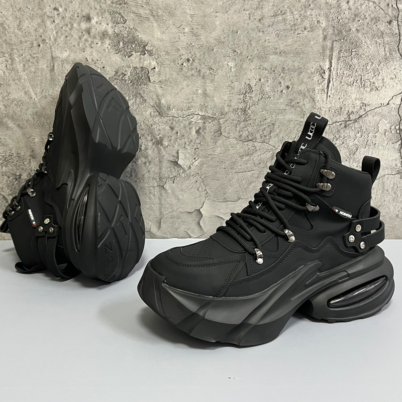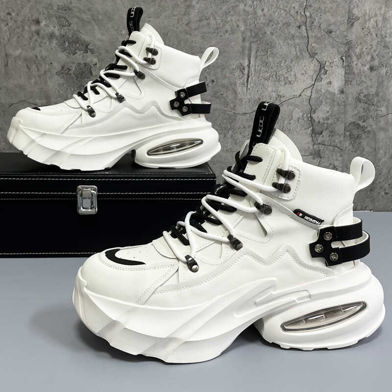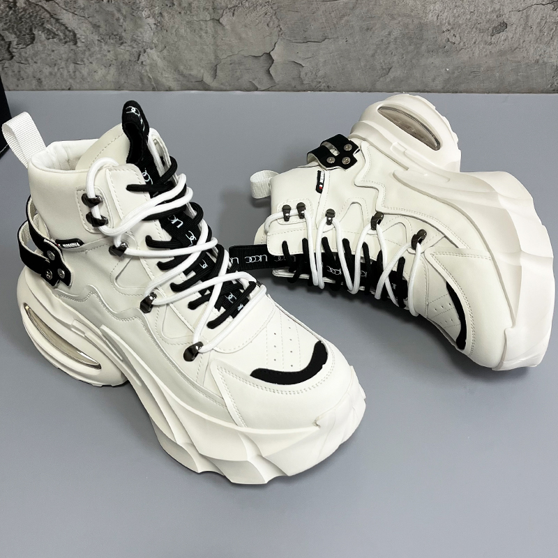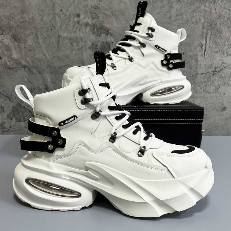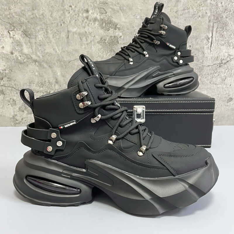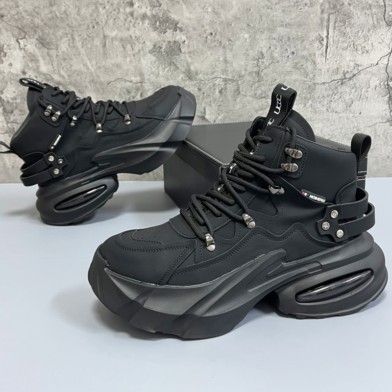 Men's Shoes 2025 Spring New Style Dad Shoes Trendy Brand Martin Boots Height-Increasing Thick-Soled Mid-Top Sneakers Personalized Studded Boots