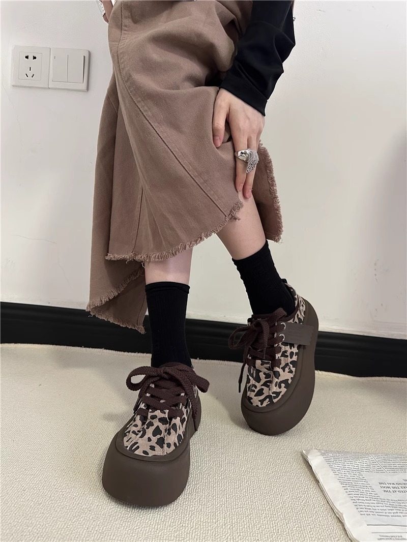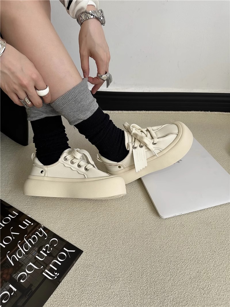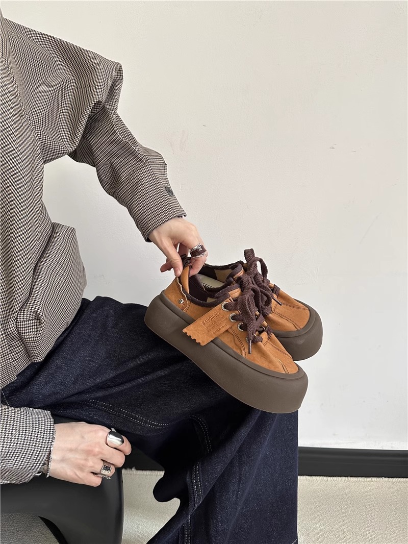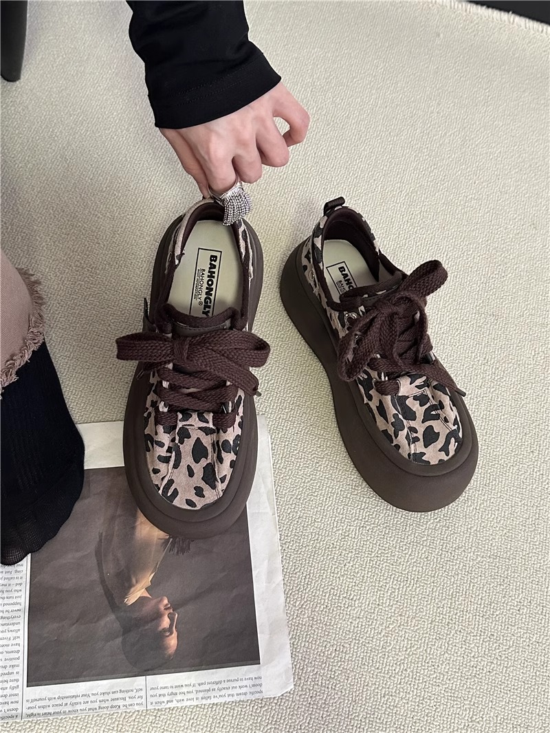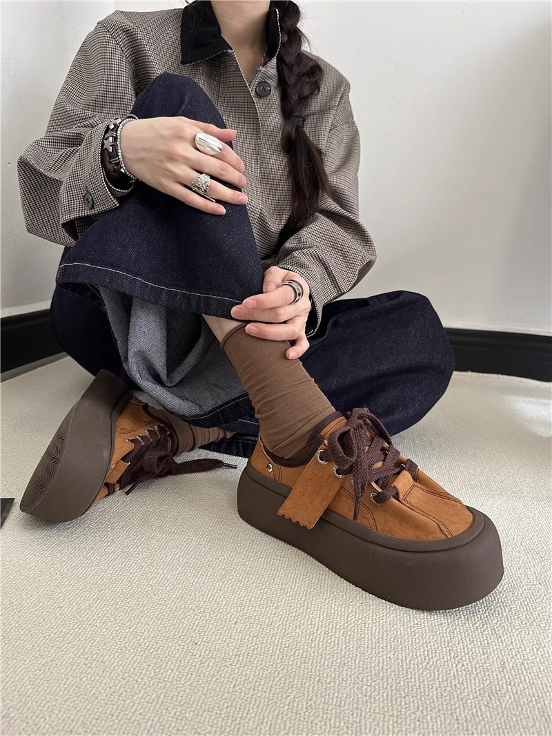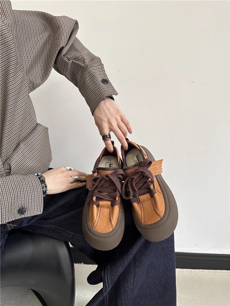 Hong Kong Style Shallow Lace-Up Loafers for Women, 2025 Autumn and Winter New Thick-Soled Genuine Leather Casual Shoes, Versatile Trendy Sneakers