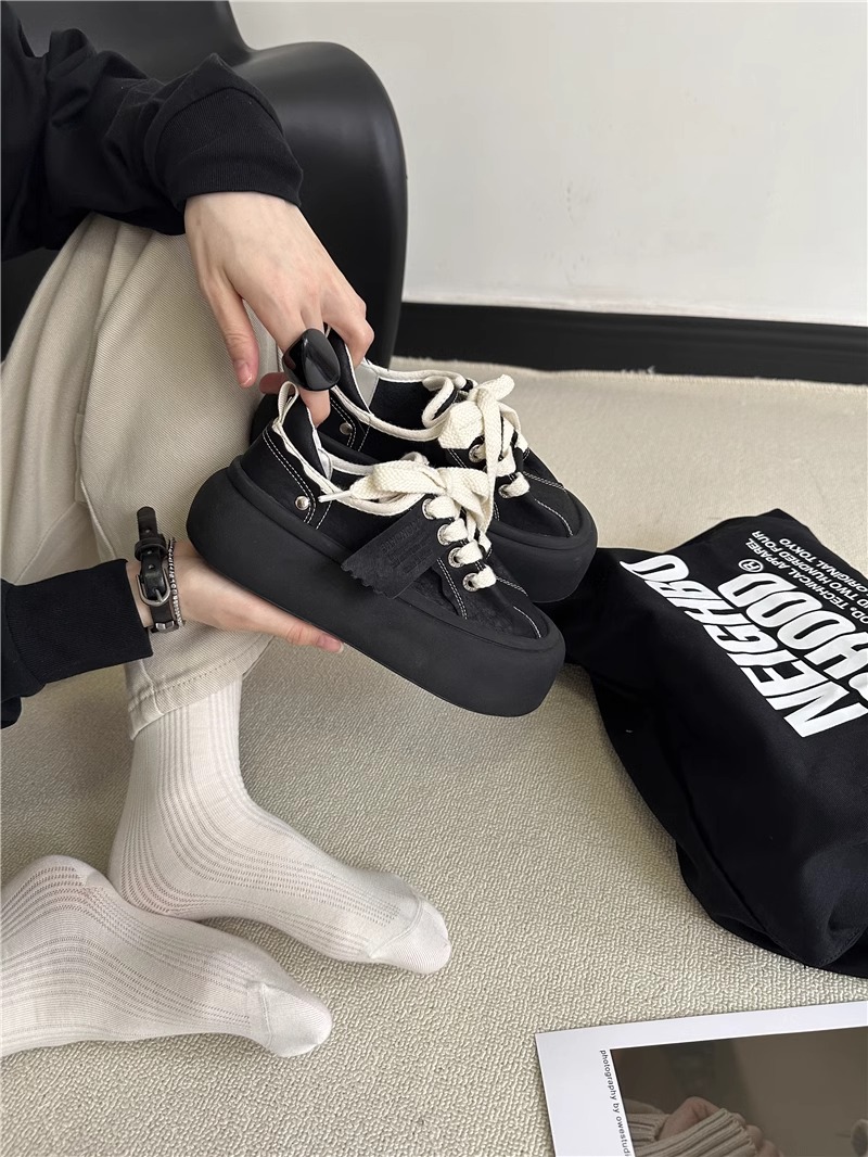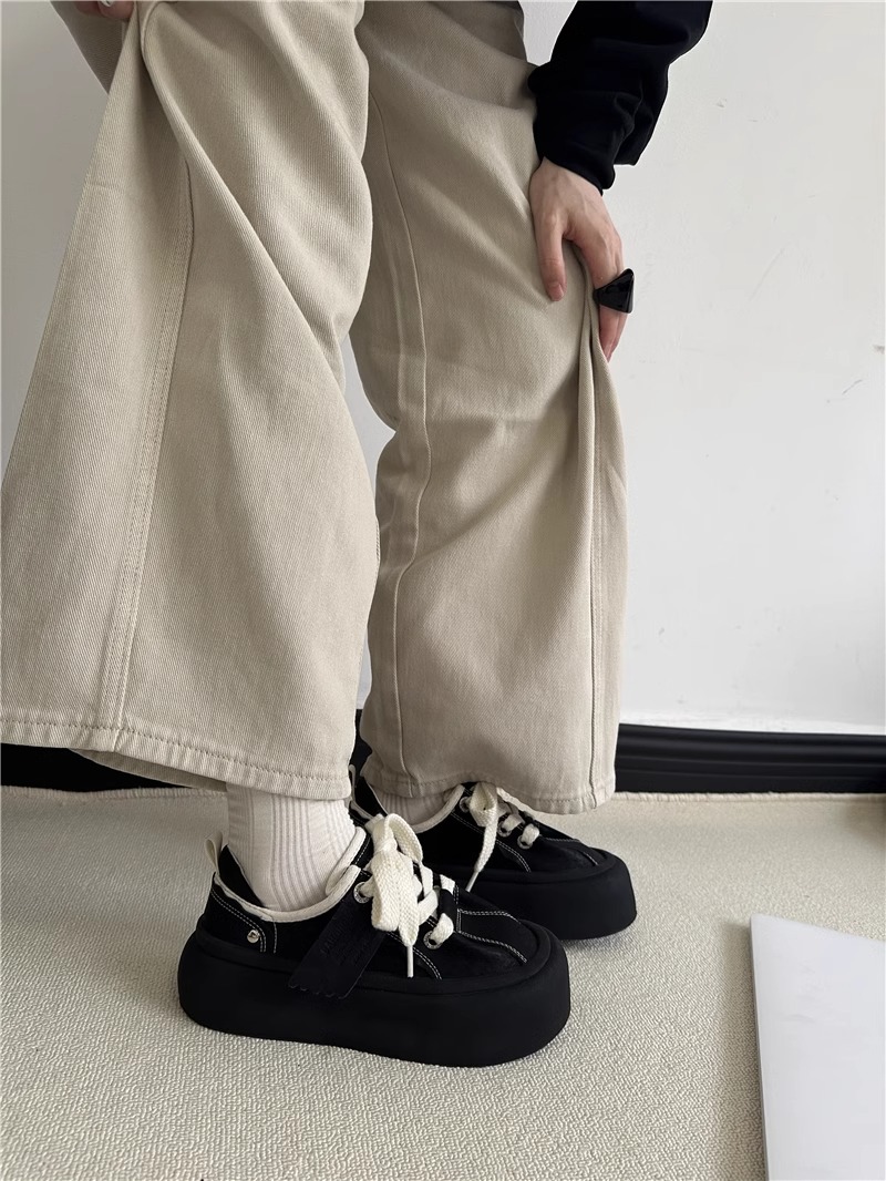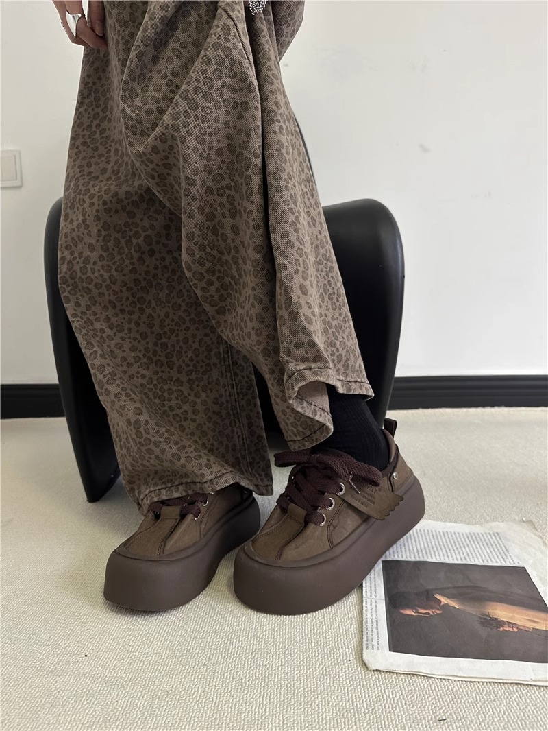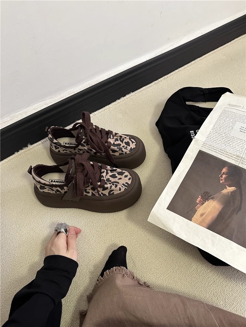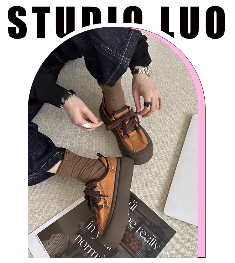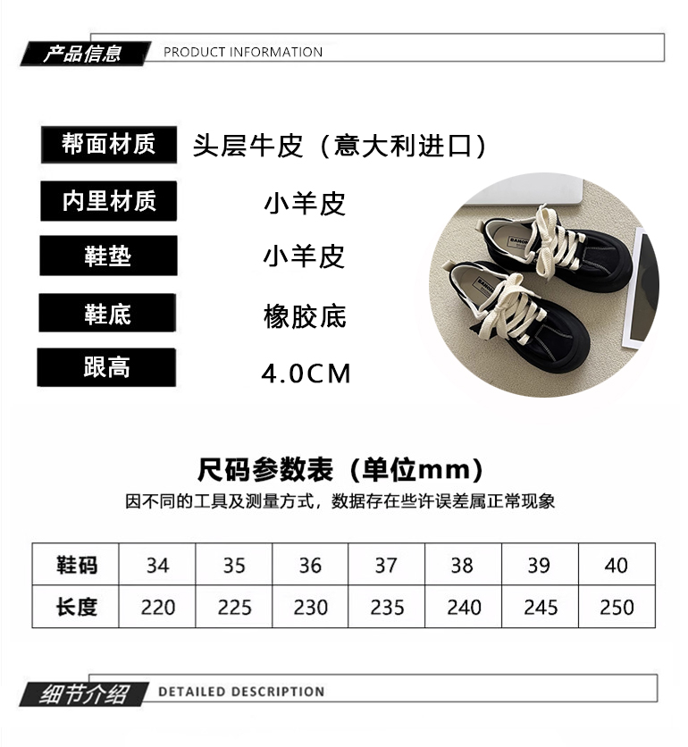Hong Kong Style Shallow Lace-Up Loafers for Women, 2025 Autumn and Winter New Thick-Soled Genuine Leather Casual Shoes, Versatile Trendy Sneakers