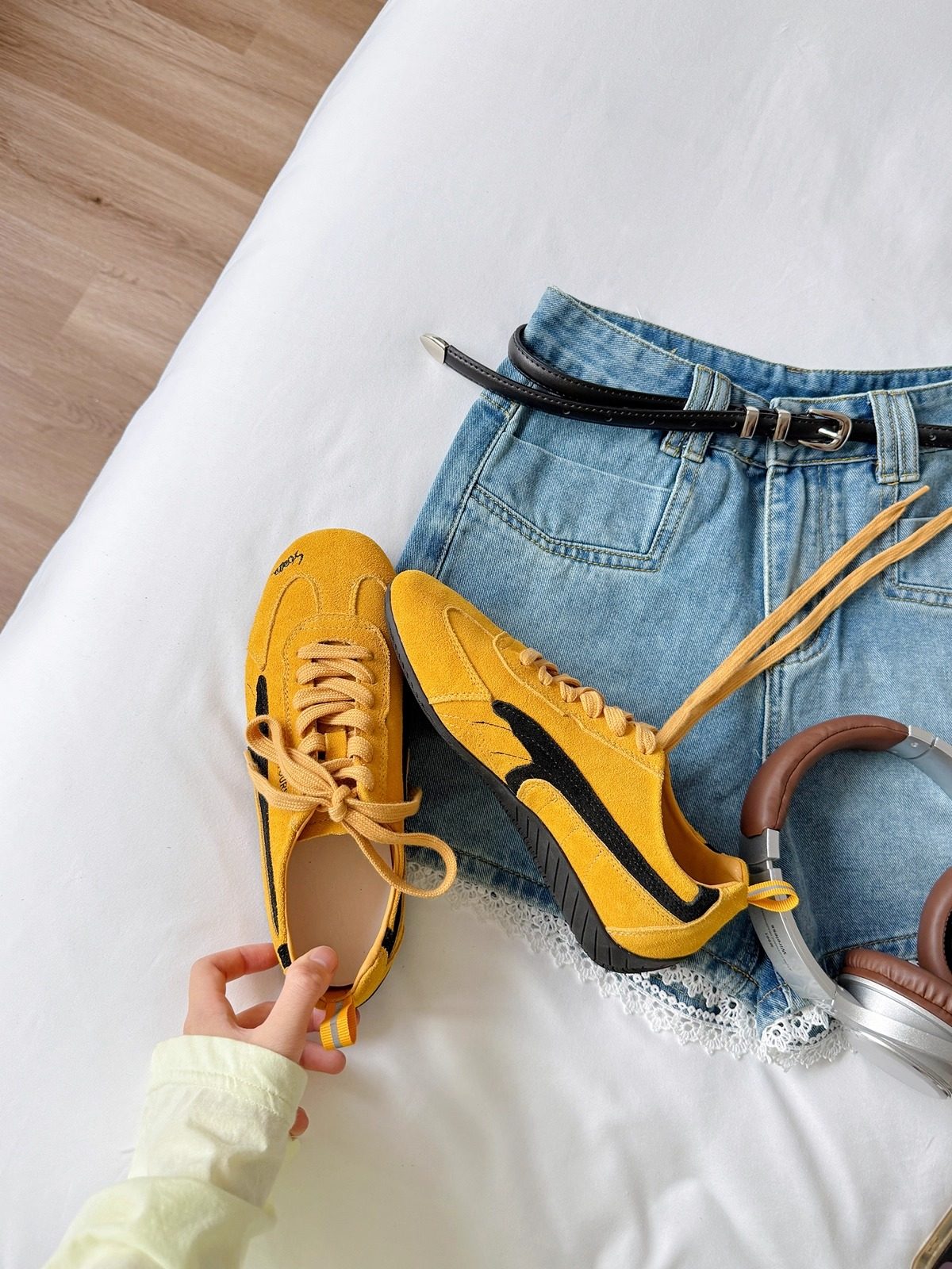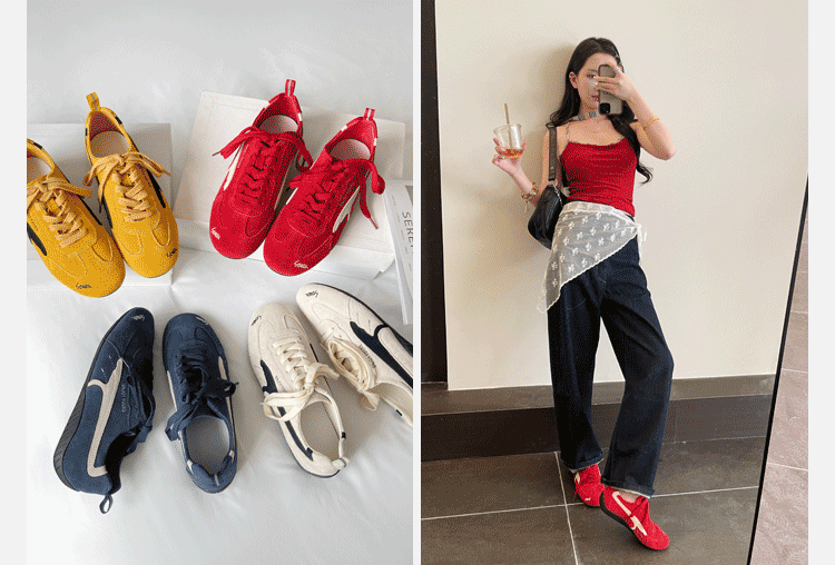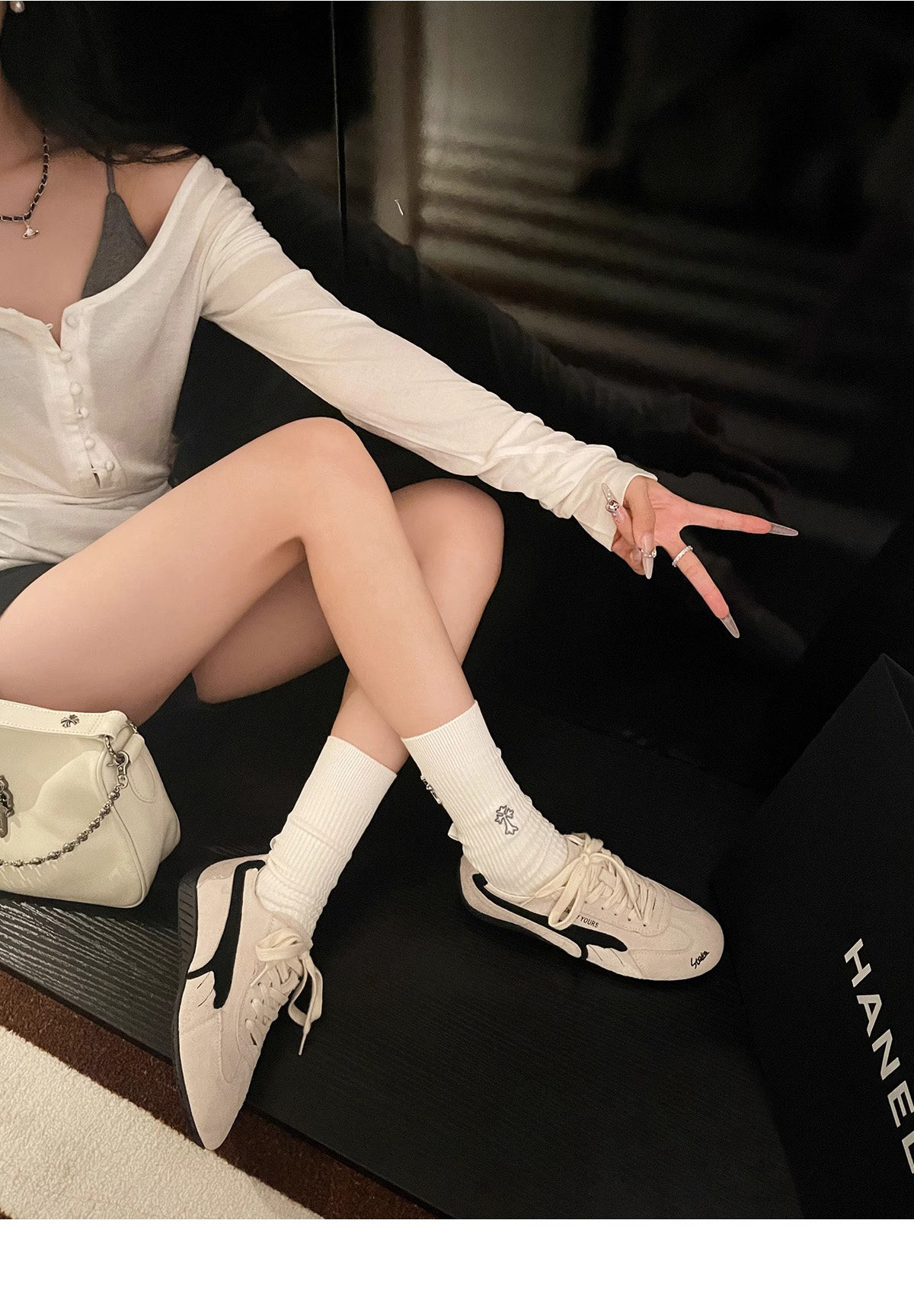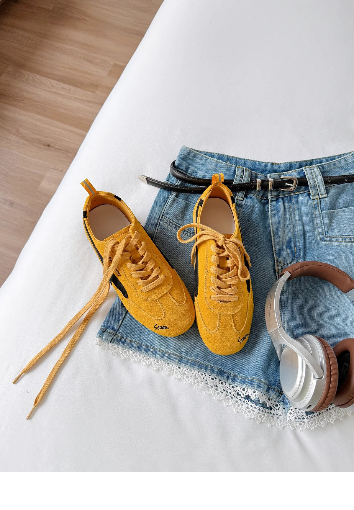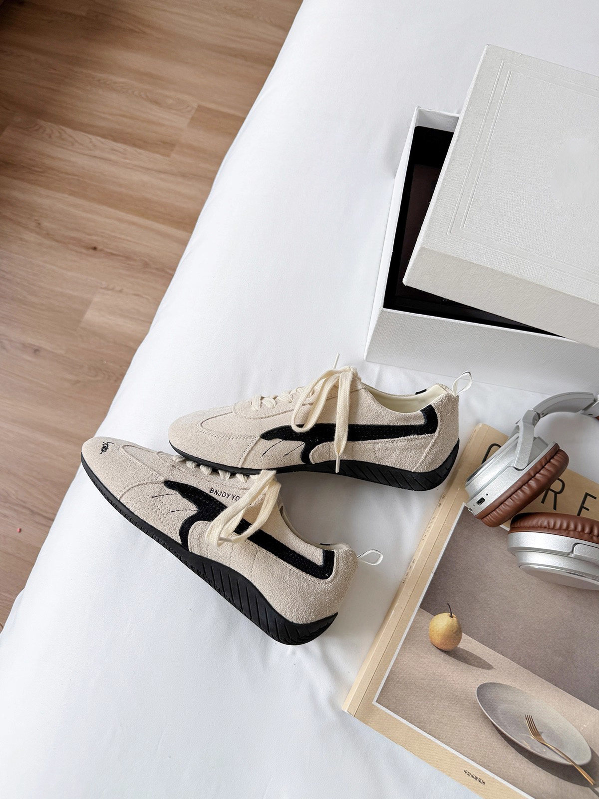 Hong Kong Maillard Retro Ballet Training Shoes for Women, New Summer Fashion Flat Shoes, Color-Blocked Sports Casual Shoes
