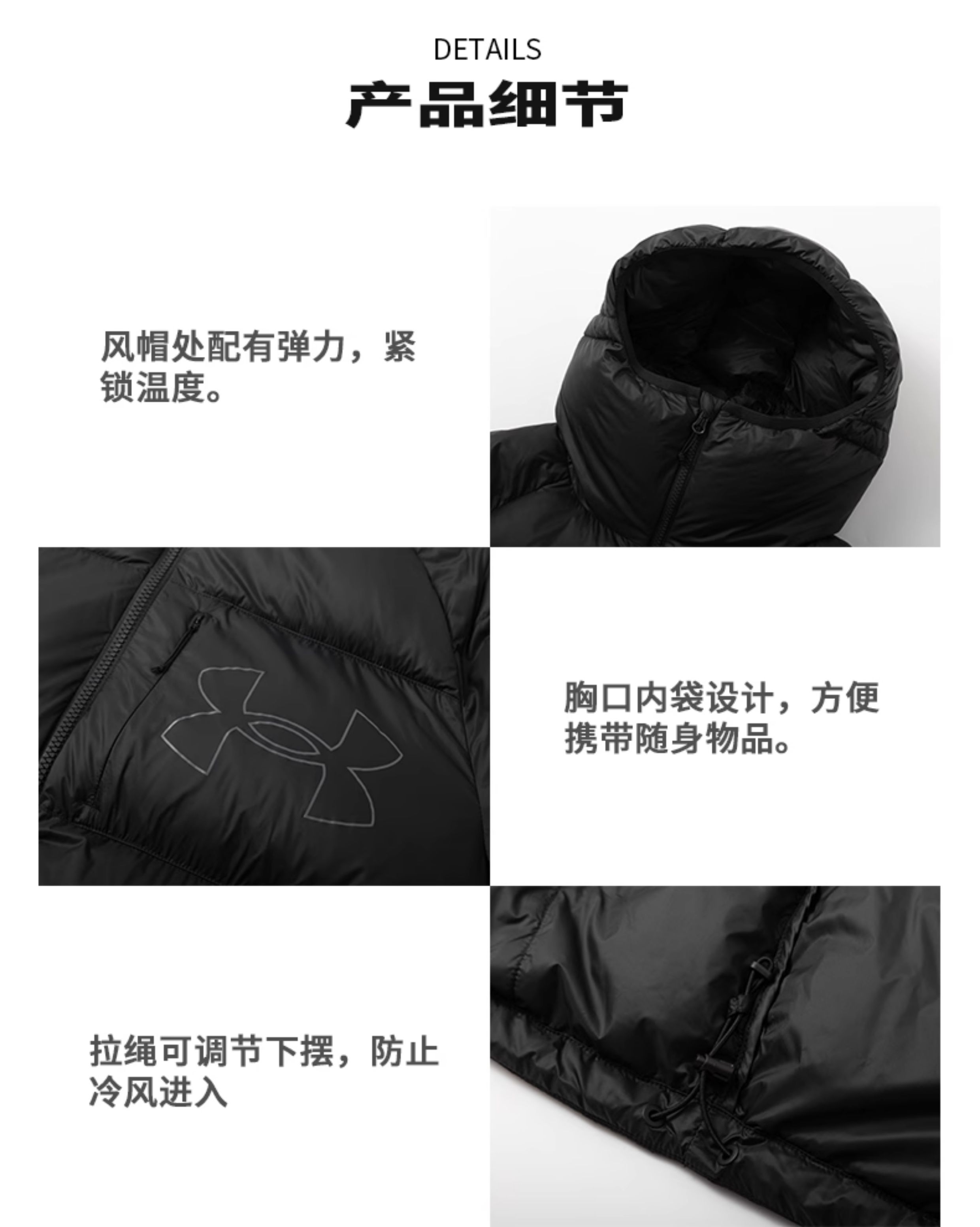Under Armour Ua Official 700 Fill High-Neck Hooded down Jacket for Women, Winter Water-Repellent, Windproof, Casual Warm Coat for Men