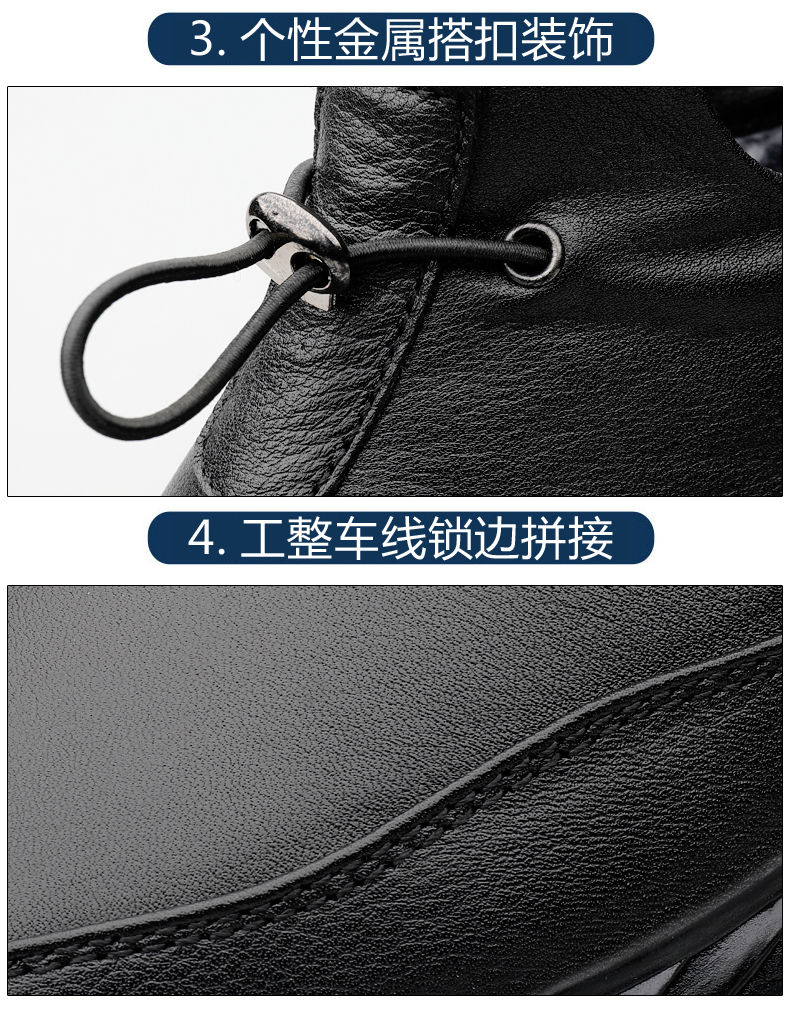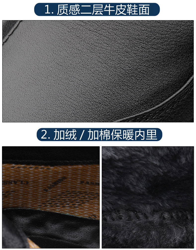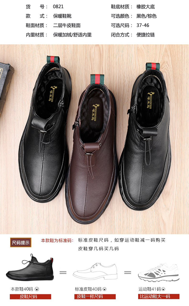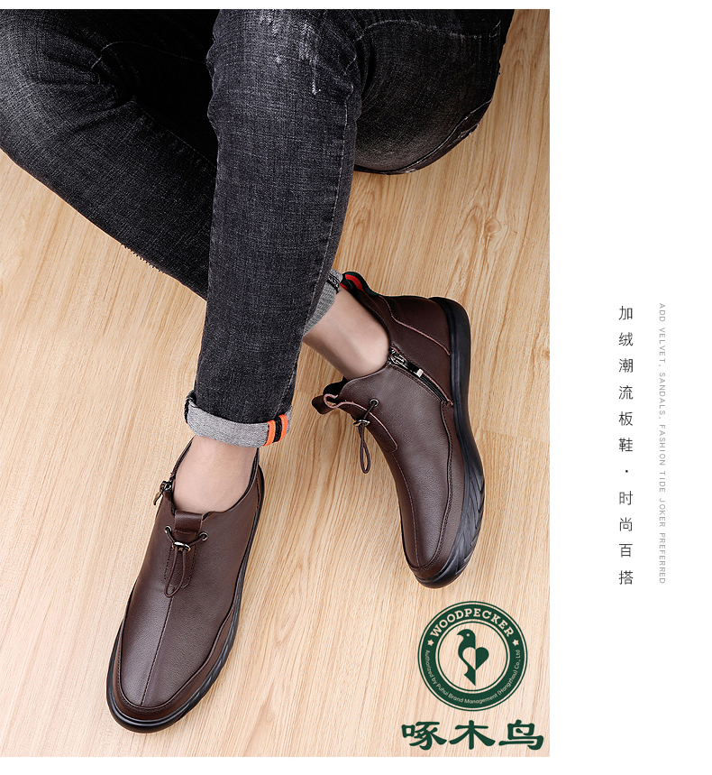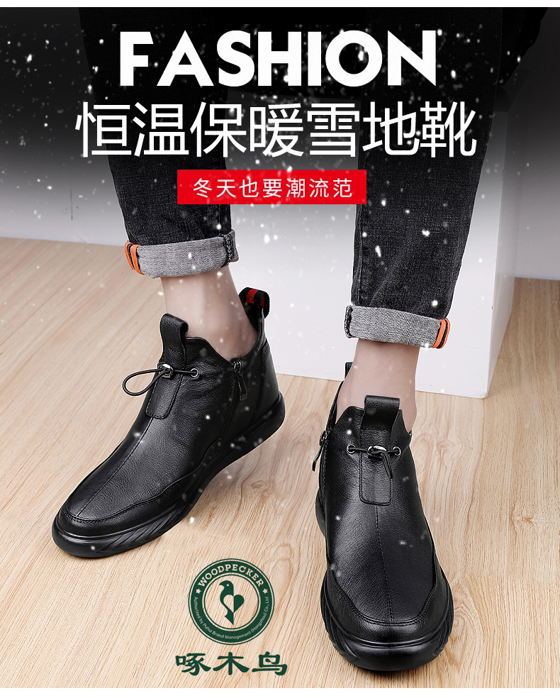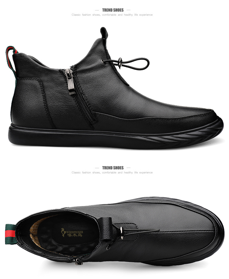 Woodpecker Men's Shoes 2024 Autumn and Winter Genuine Leather Slip-On Casual High-Top Shoes with Fleece Lining for Warmth, Versatile Mid-Top Ankle Boots for Men