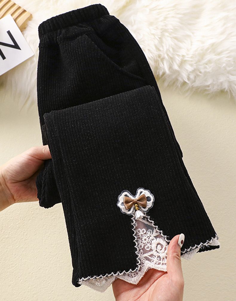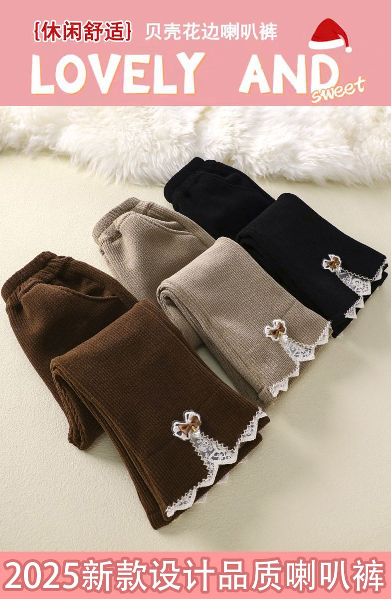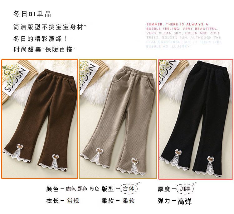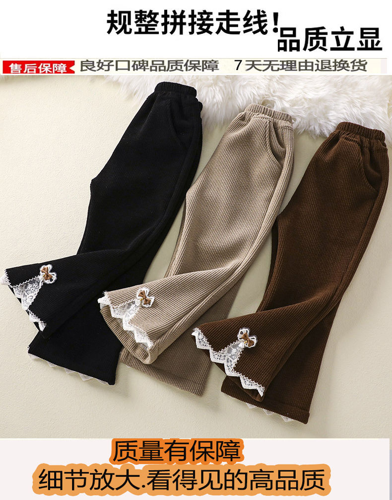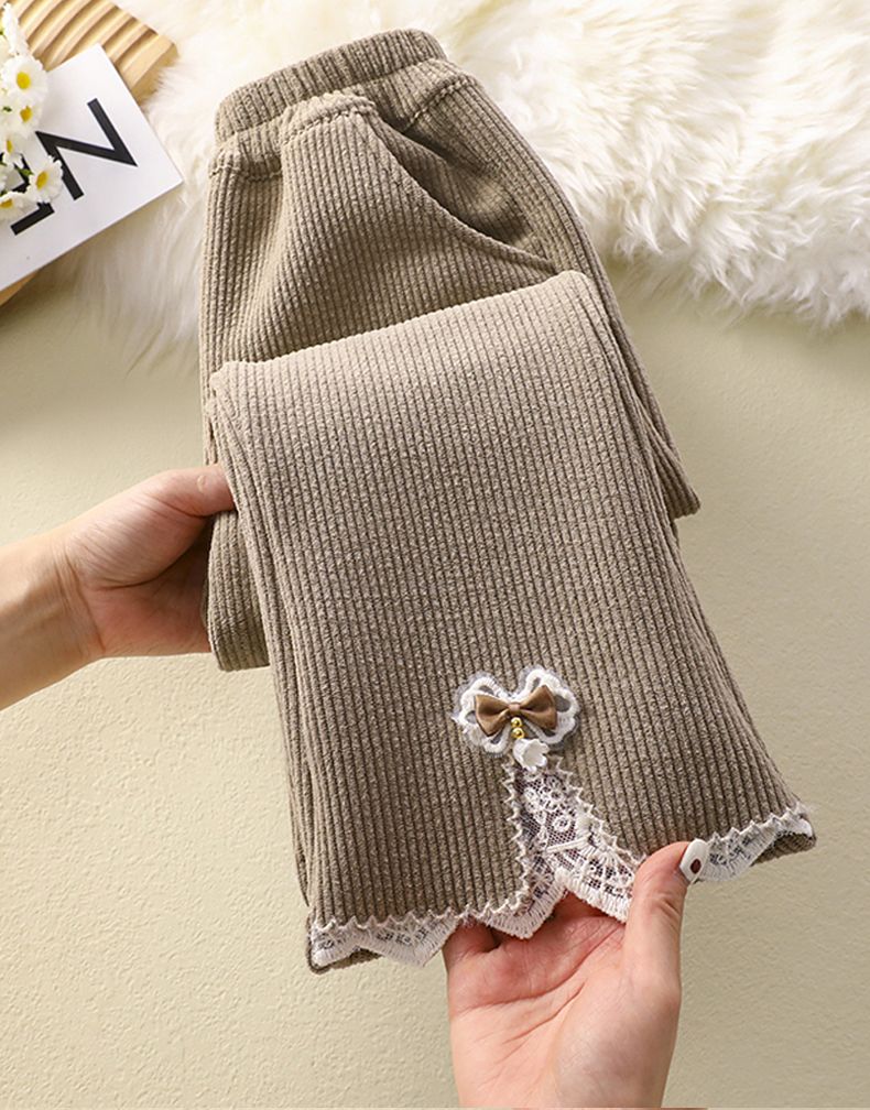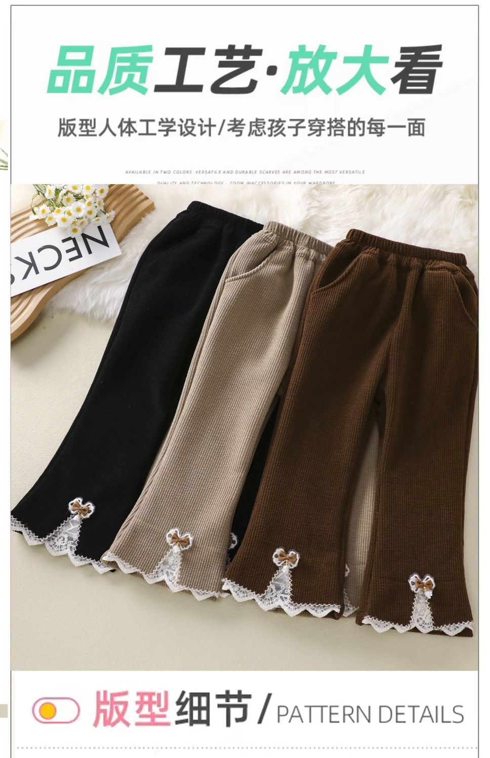 Girls' Corduroy Bell-Bottom Pants for Autumn and Winter, Toddler Casual Pants, Stylish and Fashionable Long Pants for Young Children