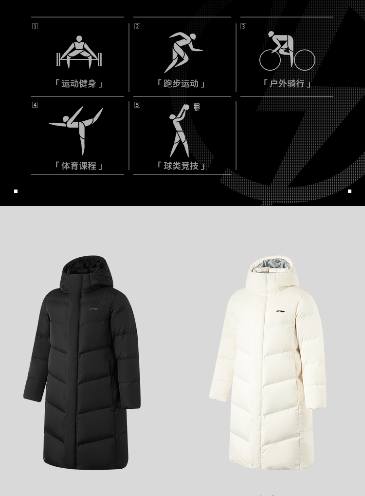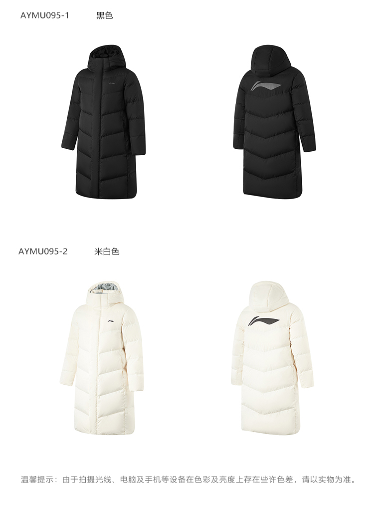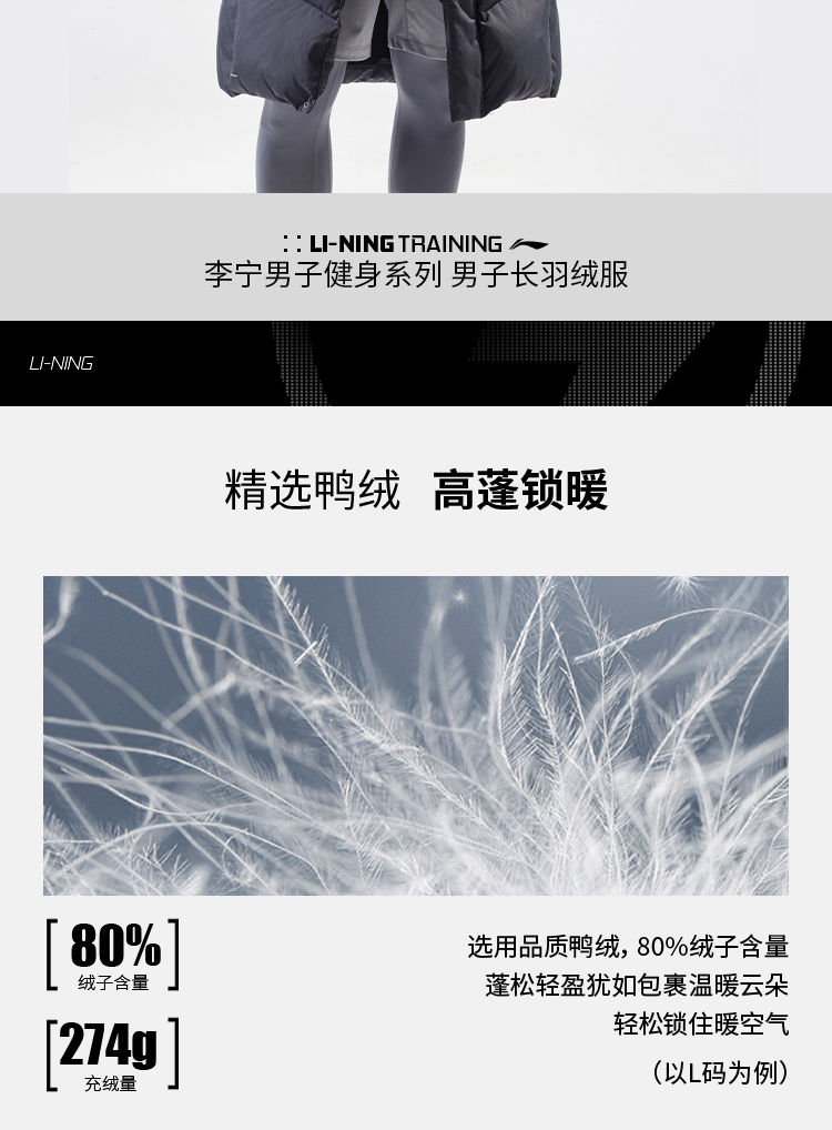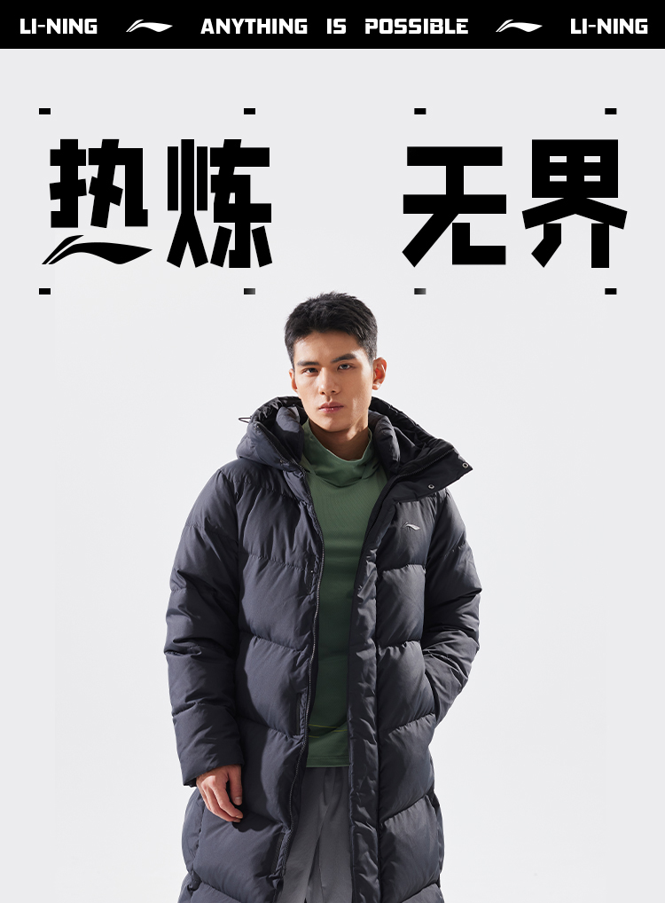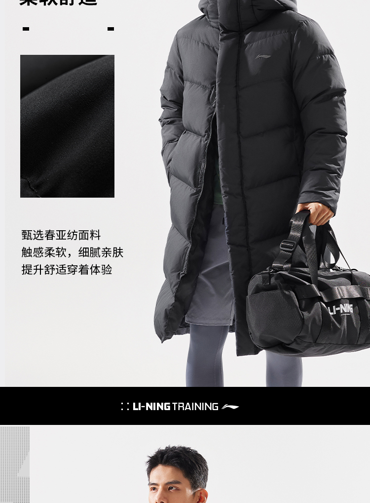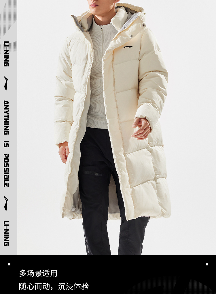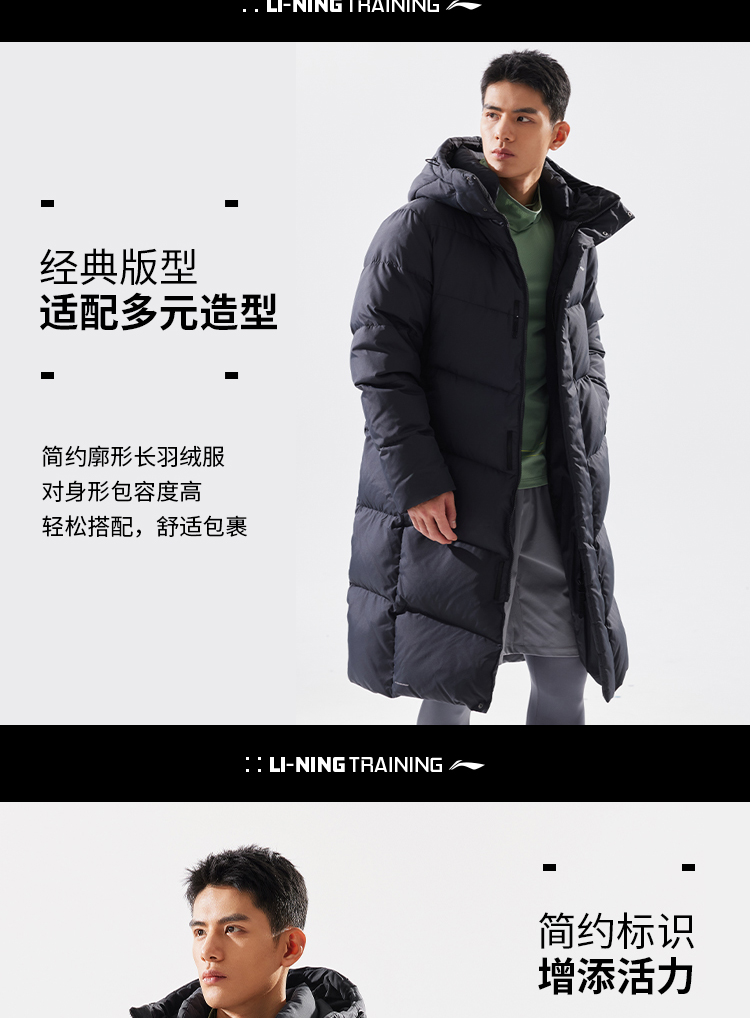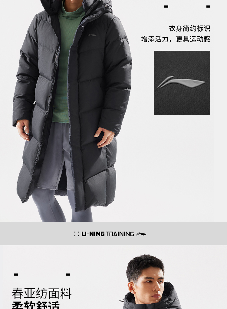 Li-Ning Men's down Jacket Winter Long Coat Warm Duck down Top Hooded Windproof Thickened Sports Jacket for Men