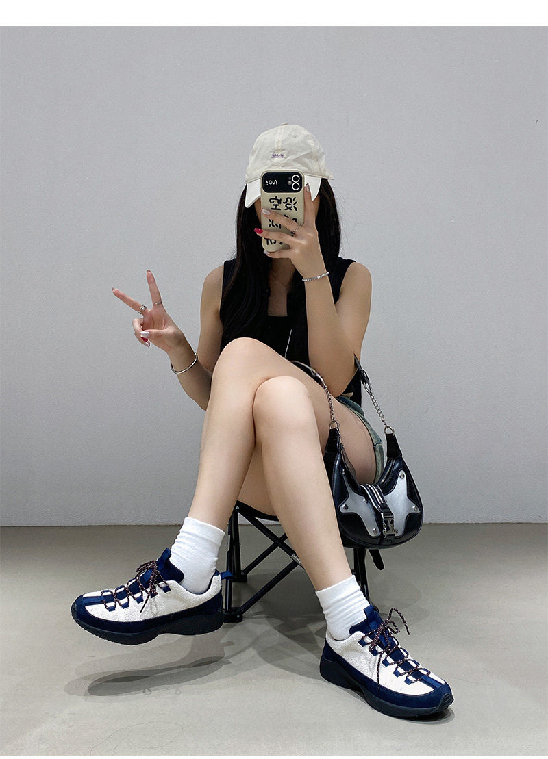 Hong Kong Fashion Outdoor Hiking Shoes 2026 Spring New Sports Shoes Dad Shoes Women's Thick-Soled Color-Blocking Trendy Casual Shoes