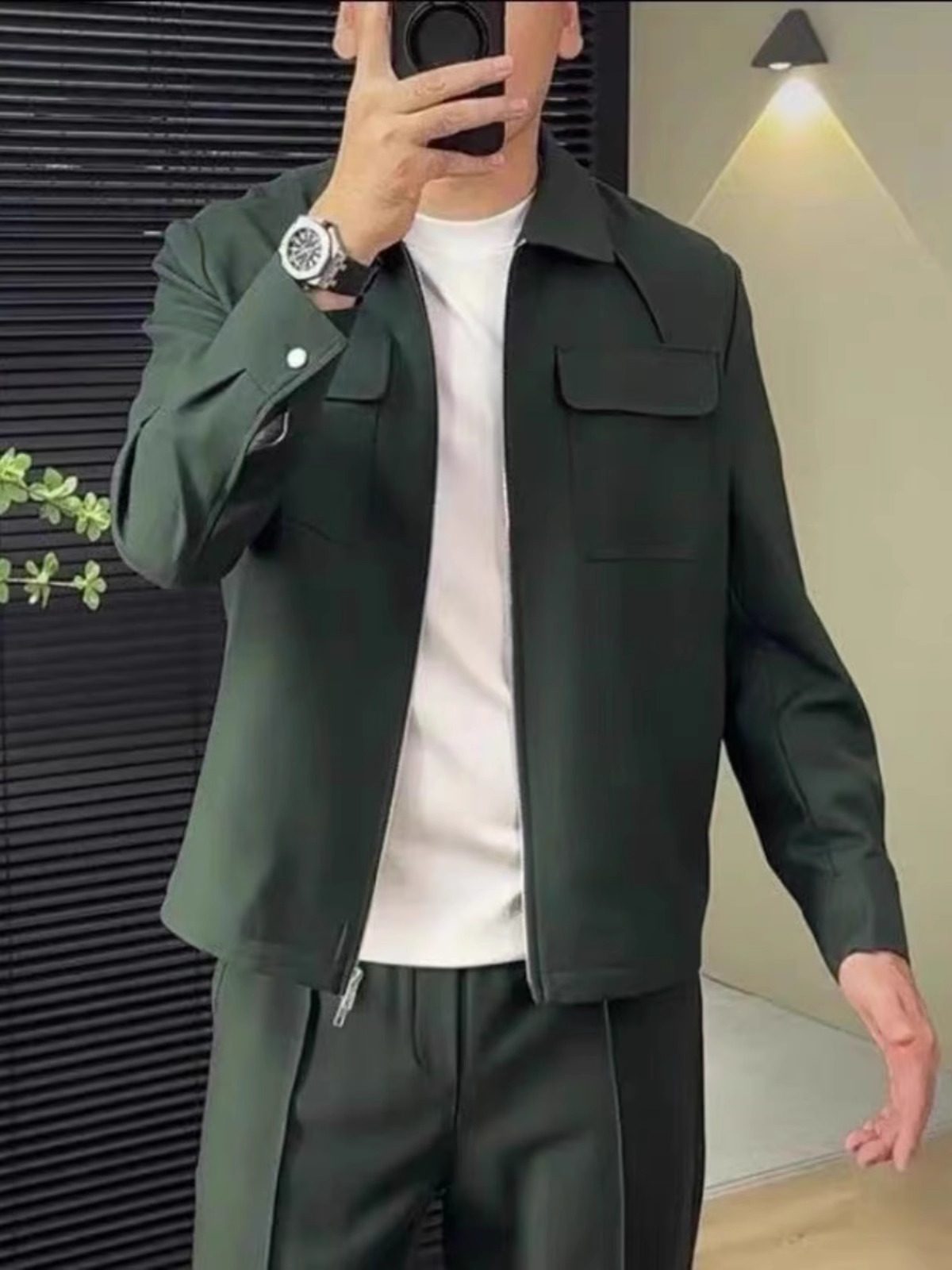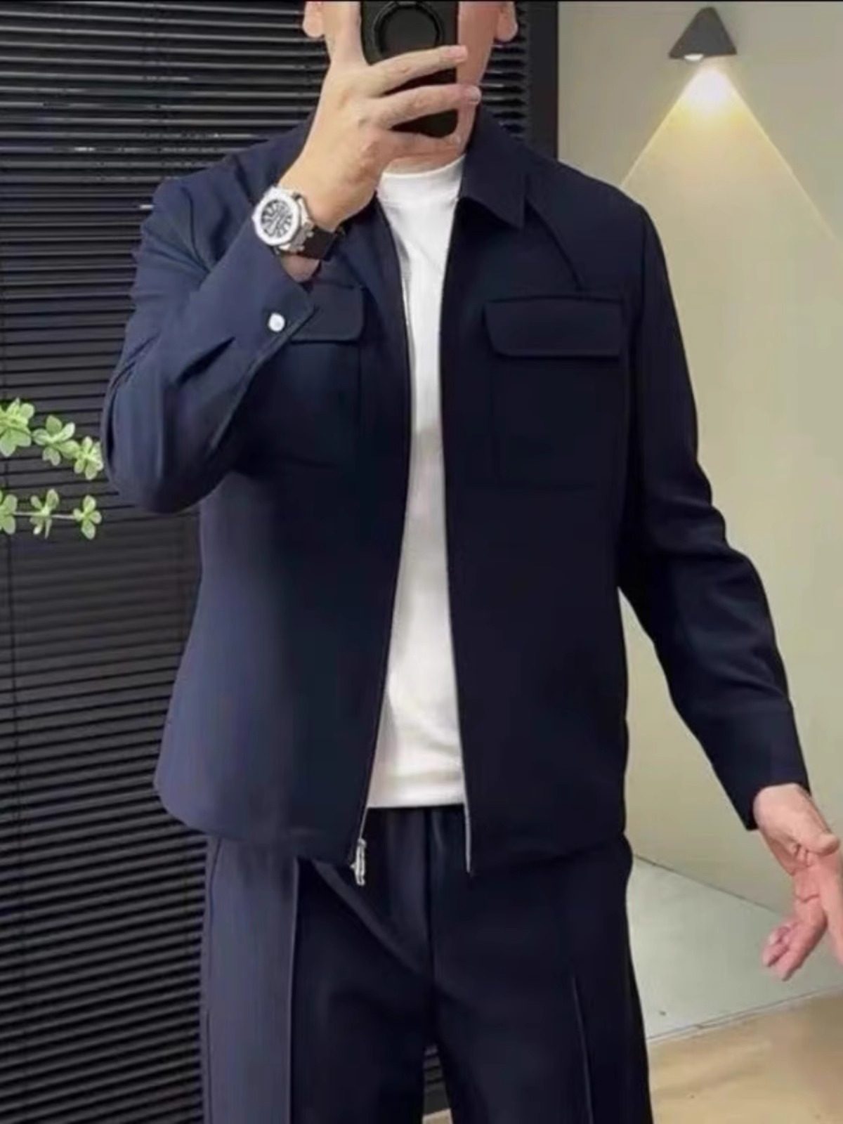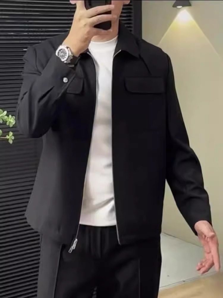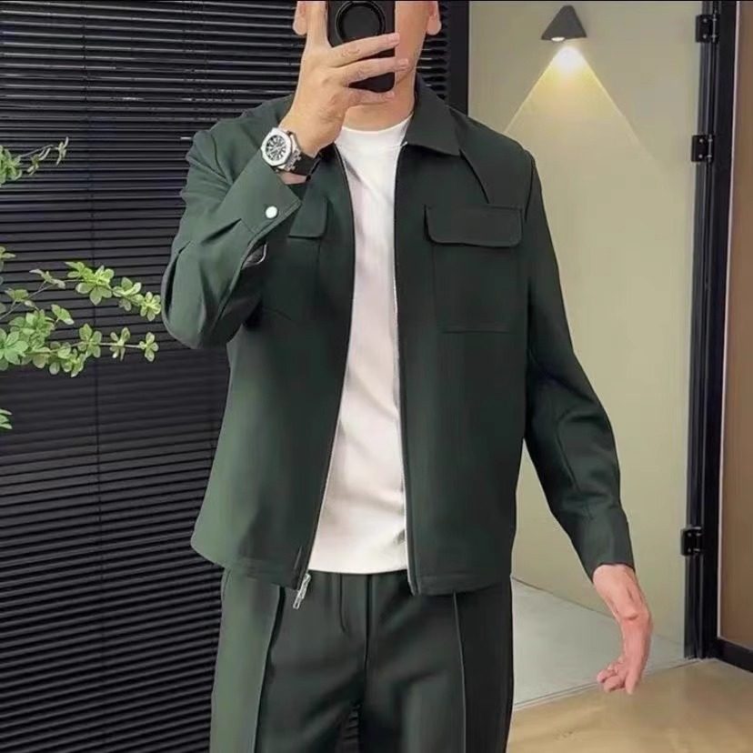 European Style Trendy Simple Lapel Jacket and Trousers Two-Piece Set for Men, New Spring and Autumn Light Luxury Versatile Casual Sports Suit