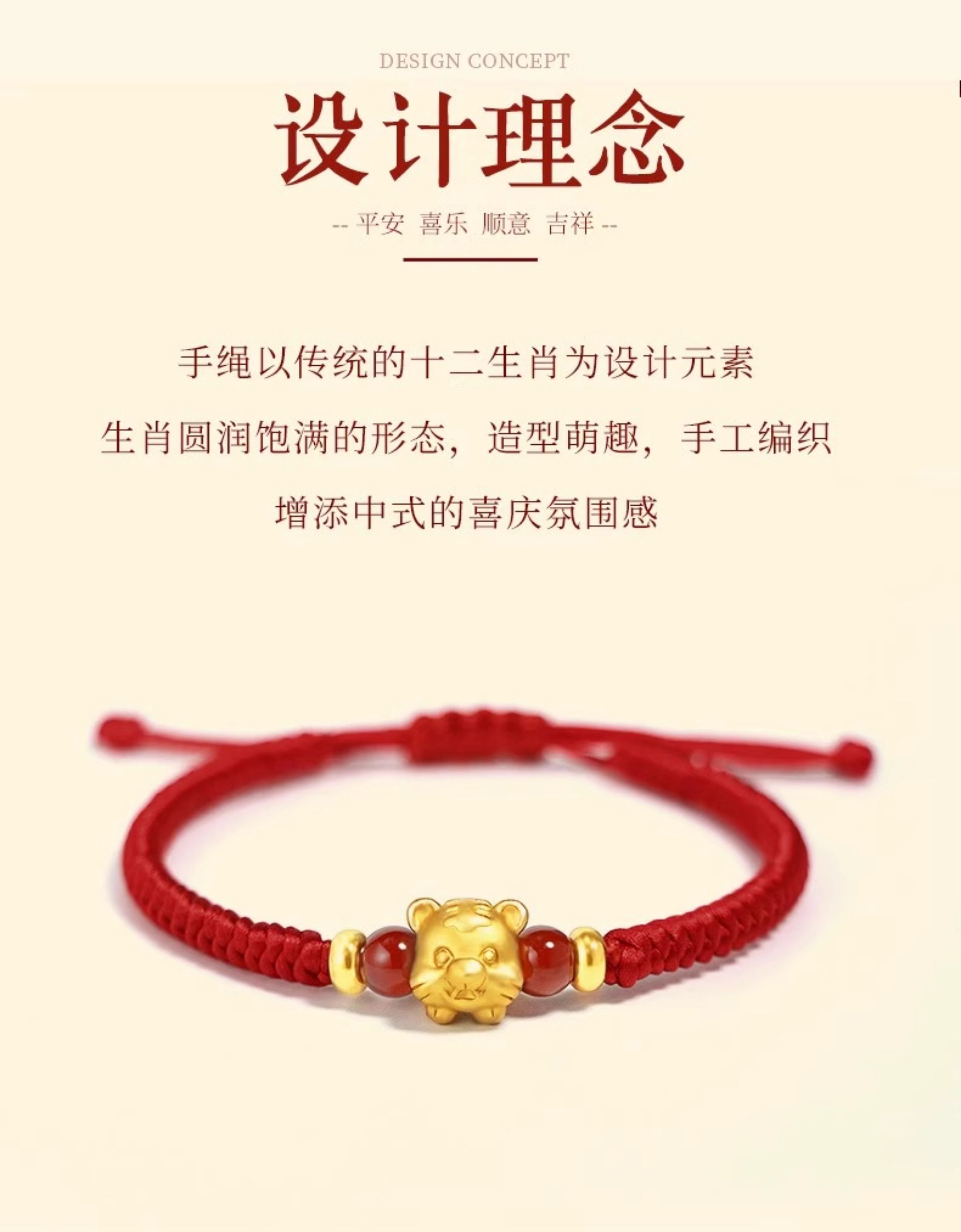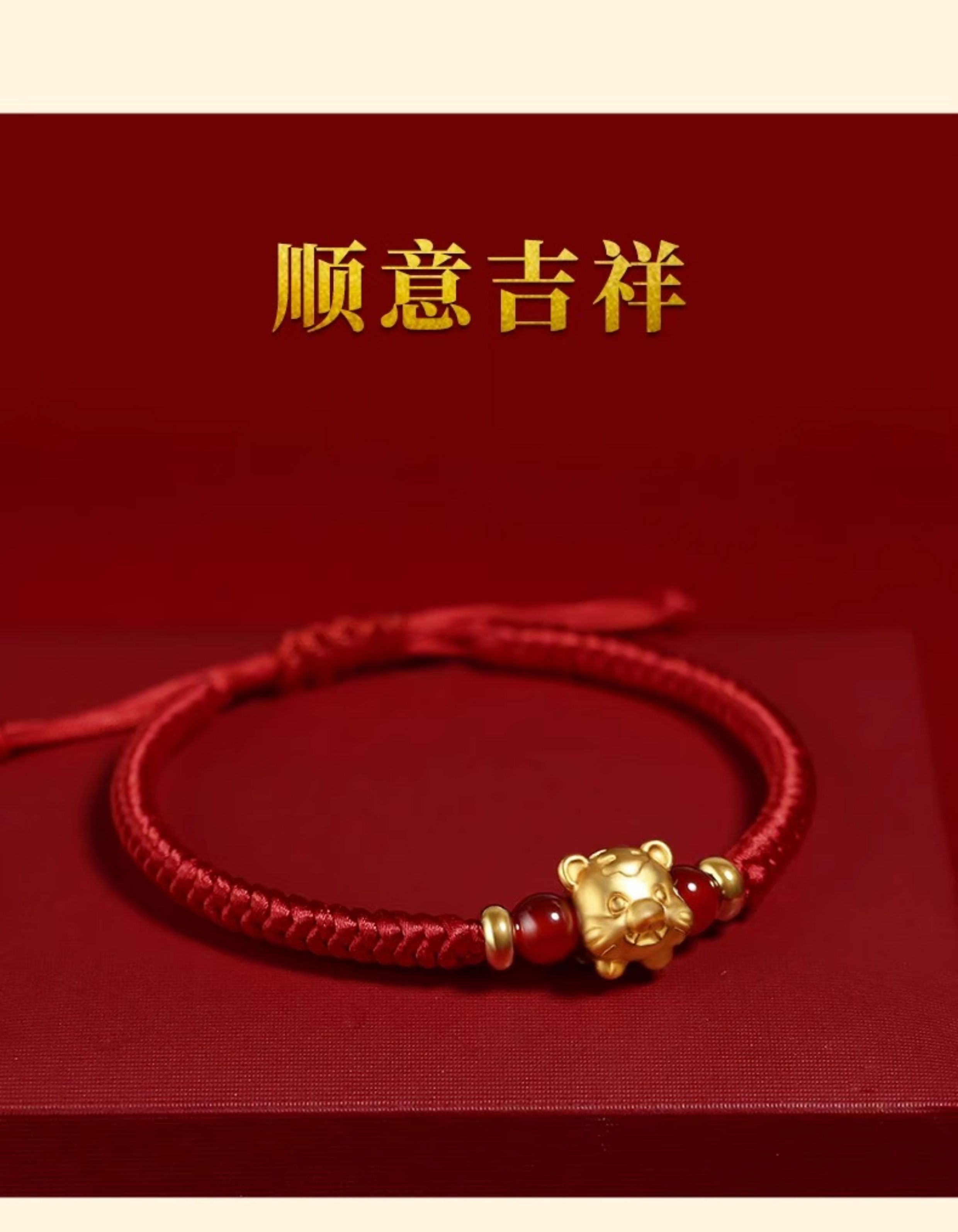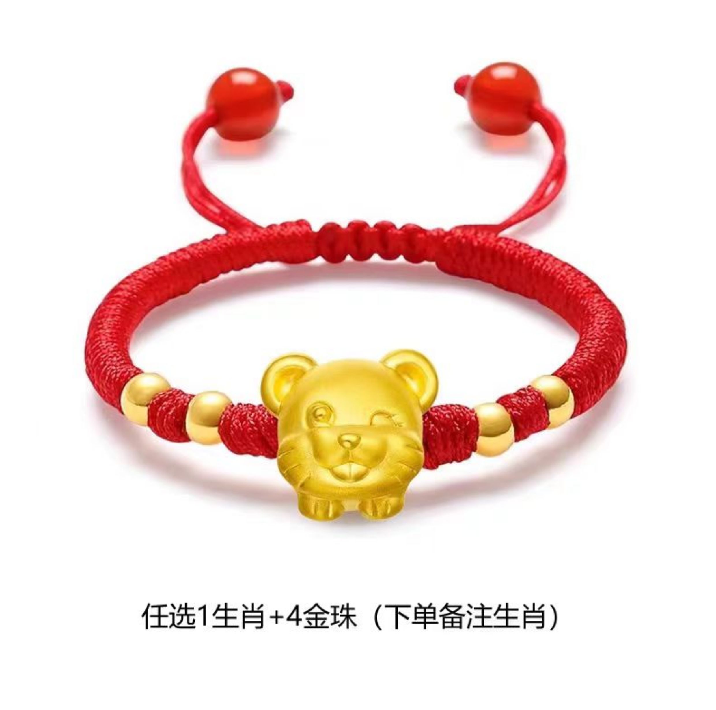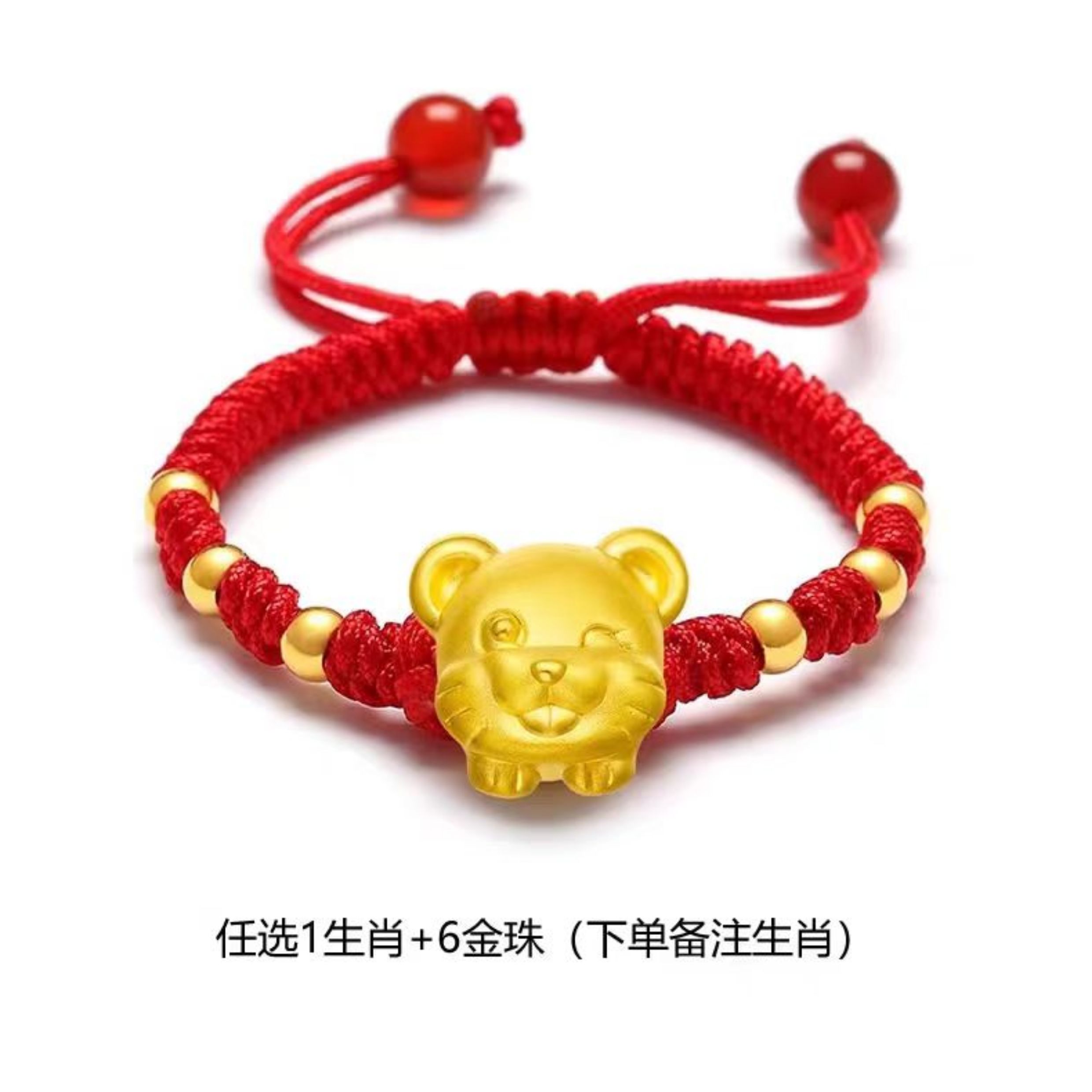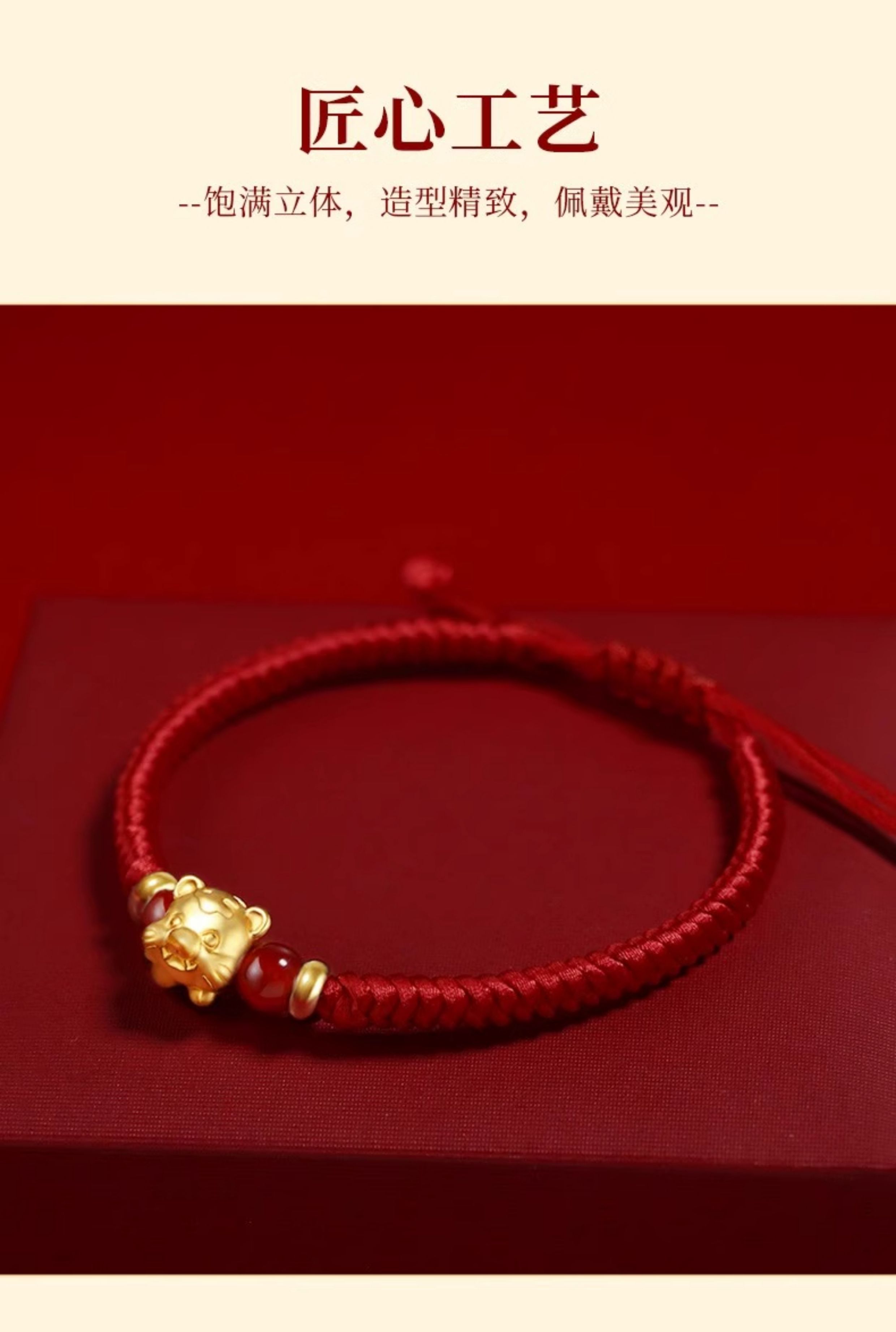 Gold Twelve Zodiac Couple Bracelet Foot Gold 999 This Year Transfer Bead Red Hand Rope for Girlfriend's Birthday Gift