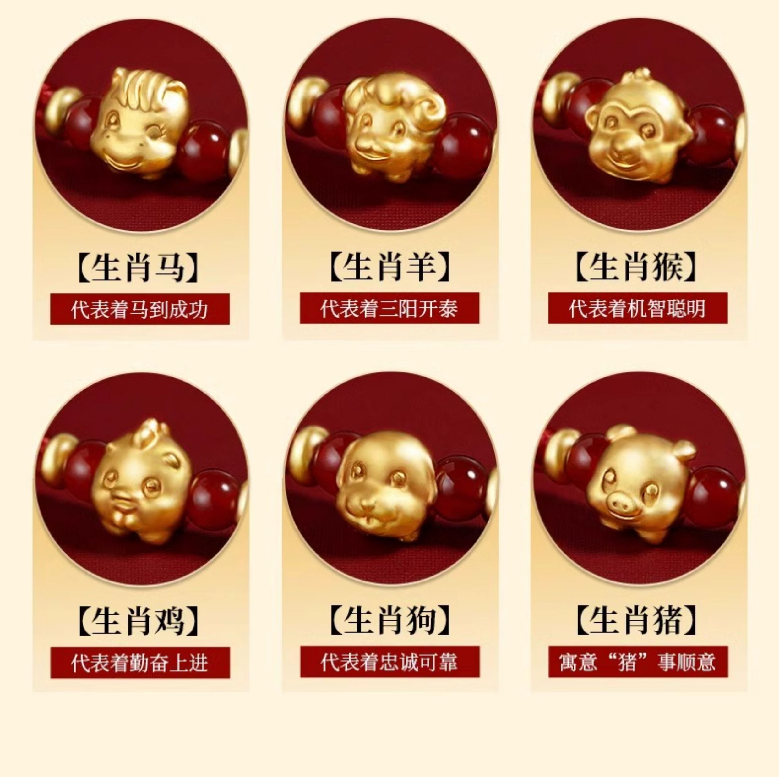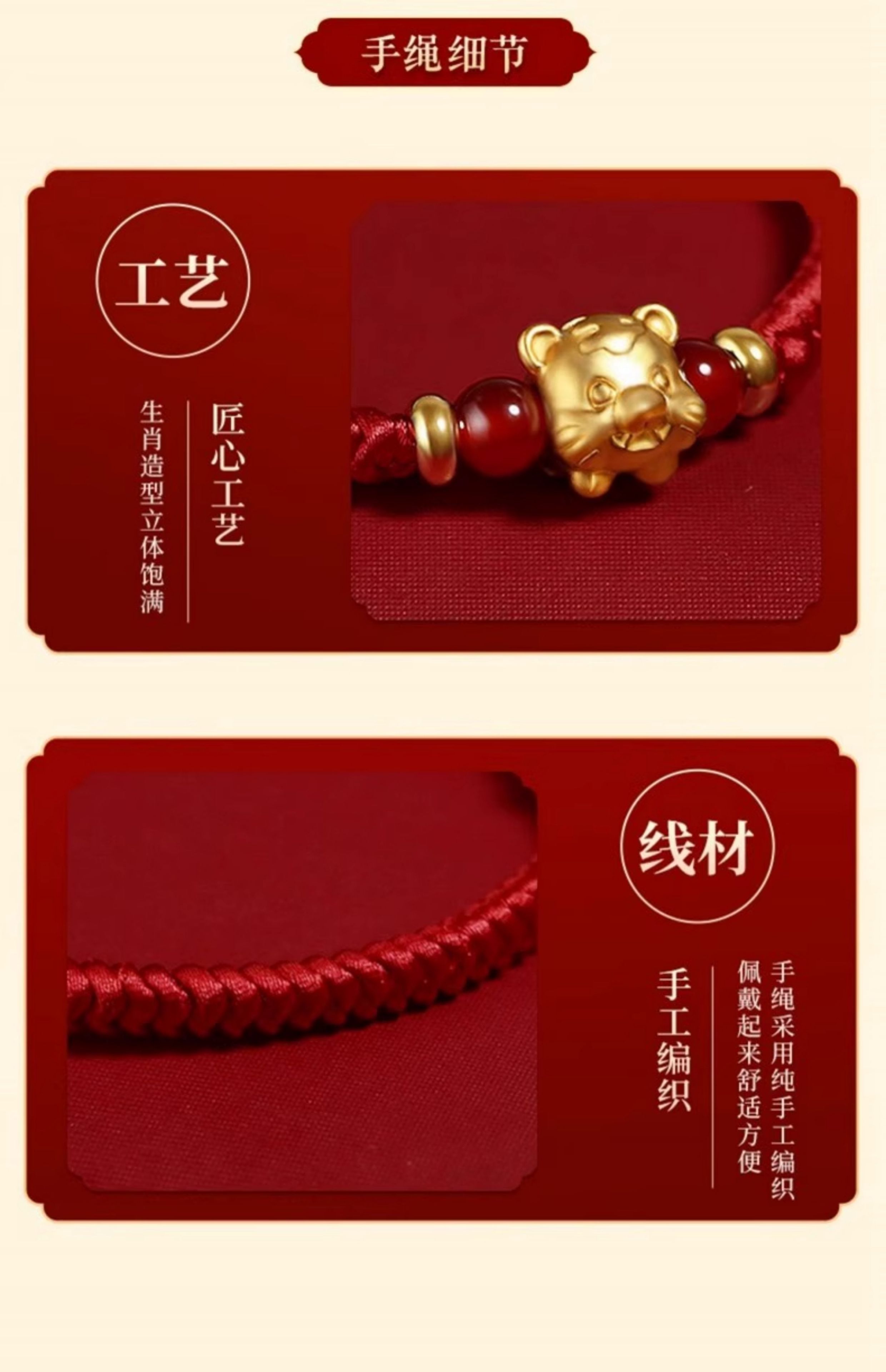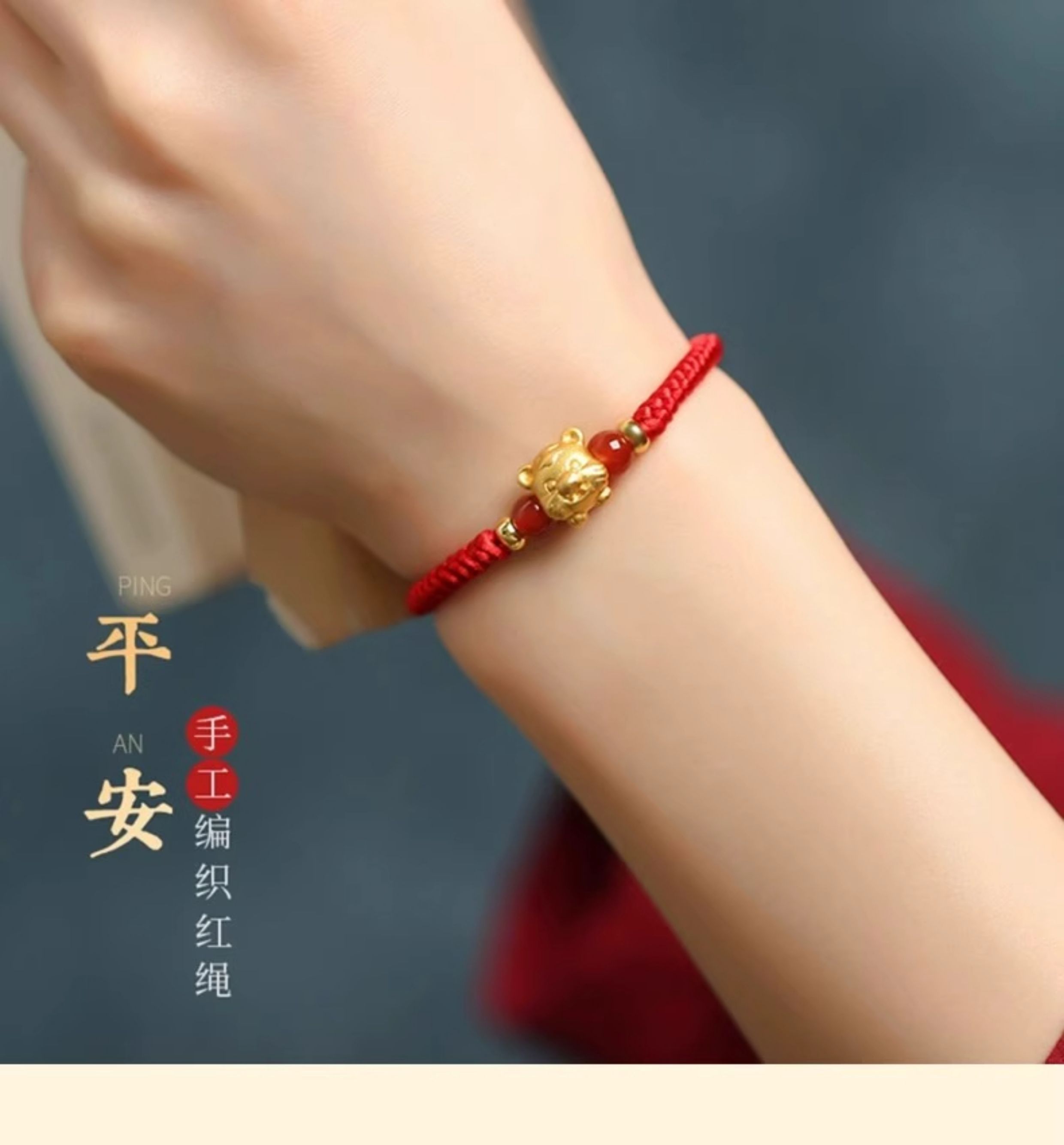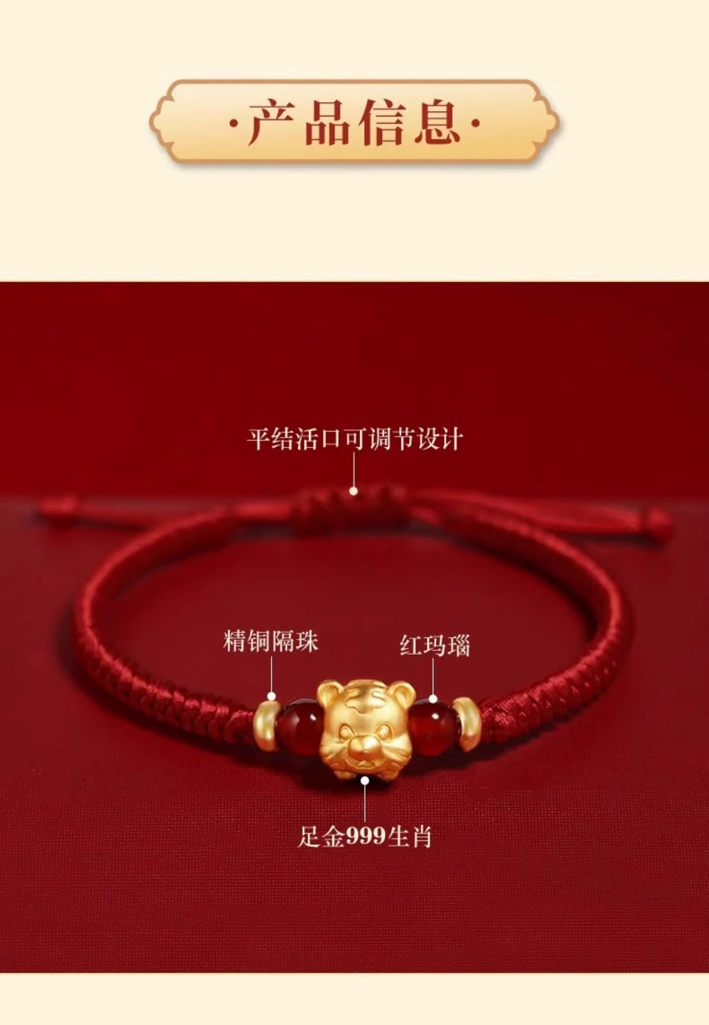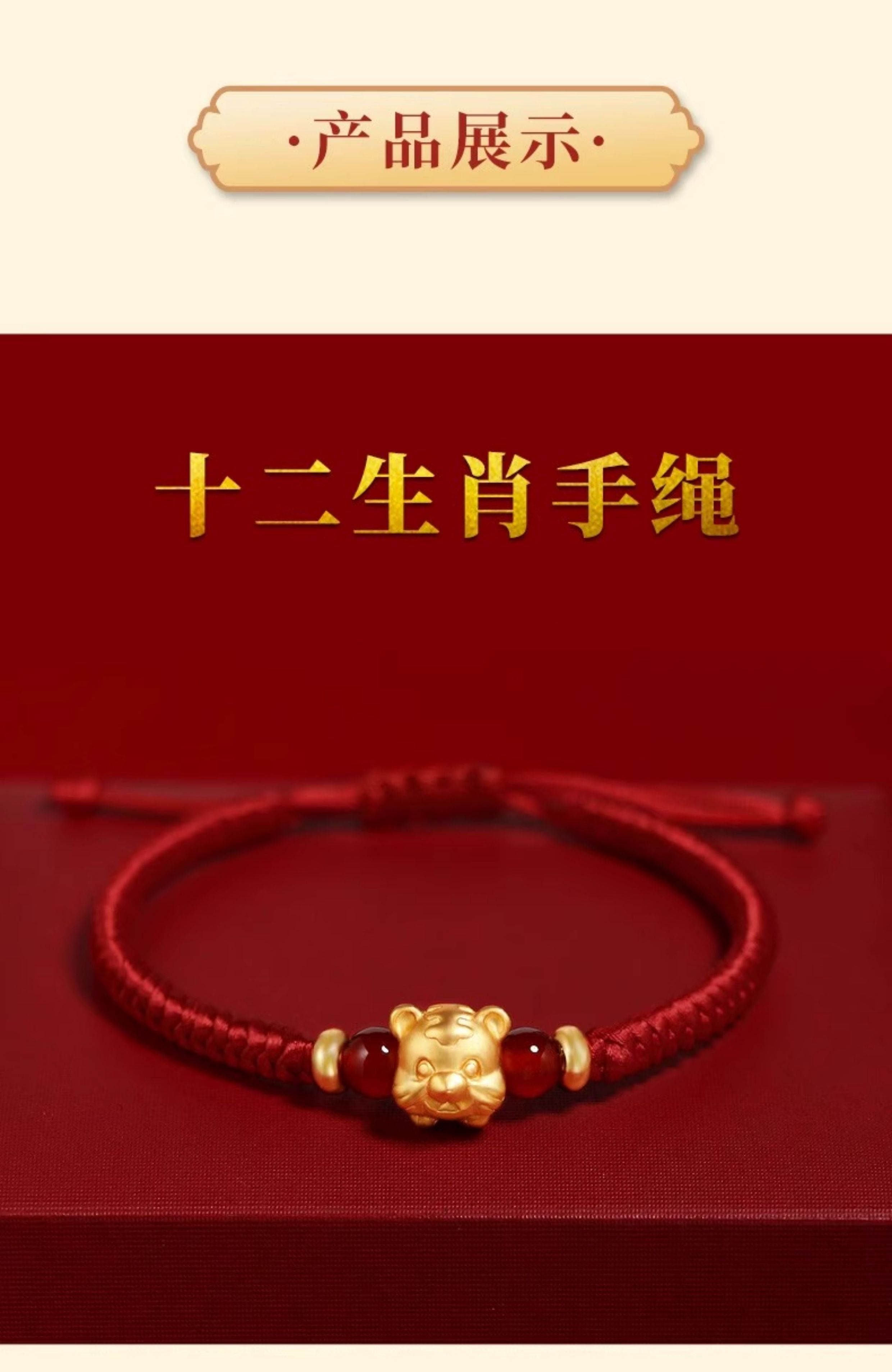 Gold Twelve Zodiac Couple Bracelet Foot Gold 999 This Year Transfer Bead Red Hand Rope for Girlfriend's Birthday Gift