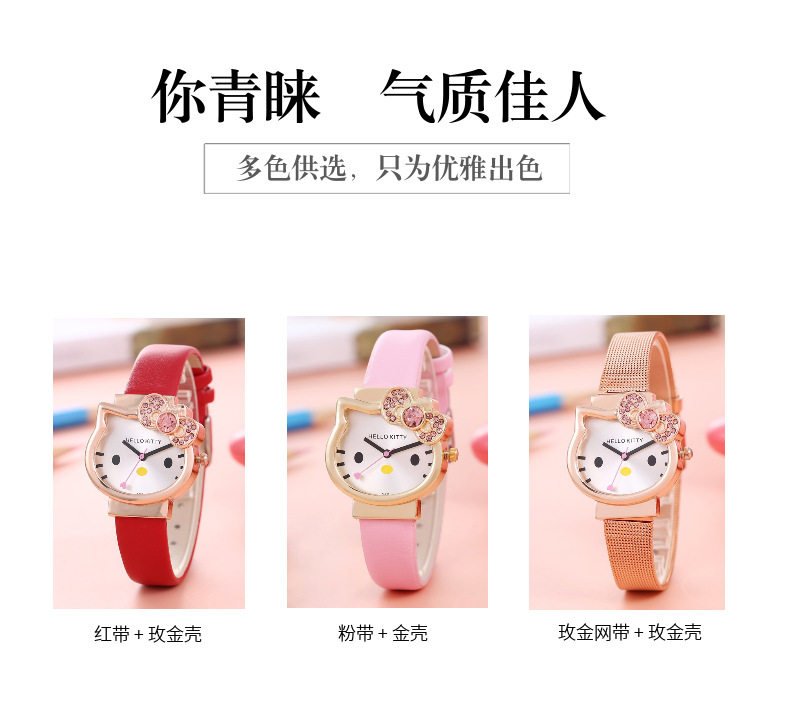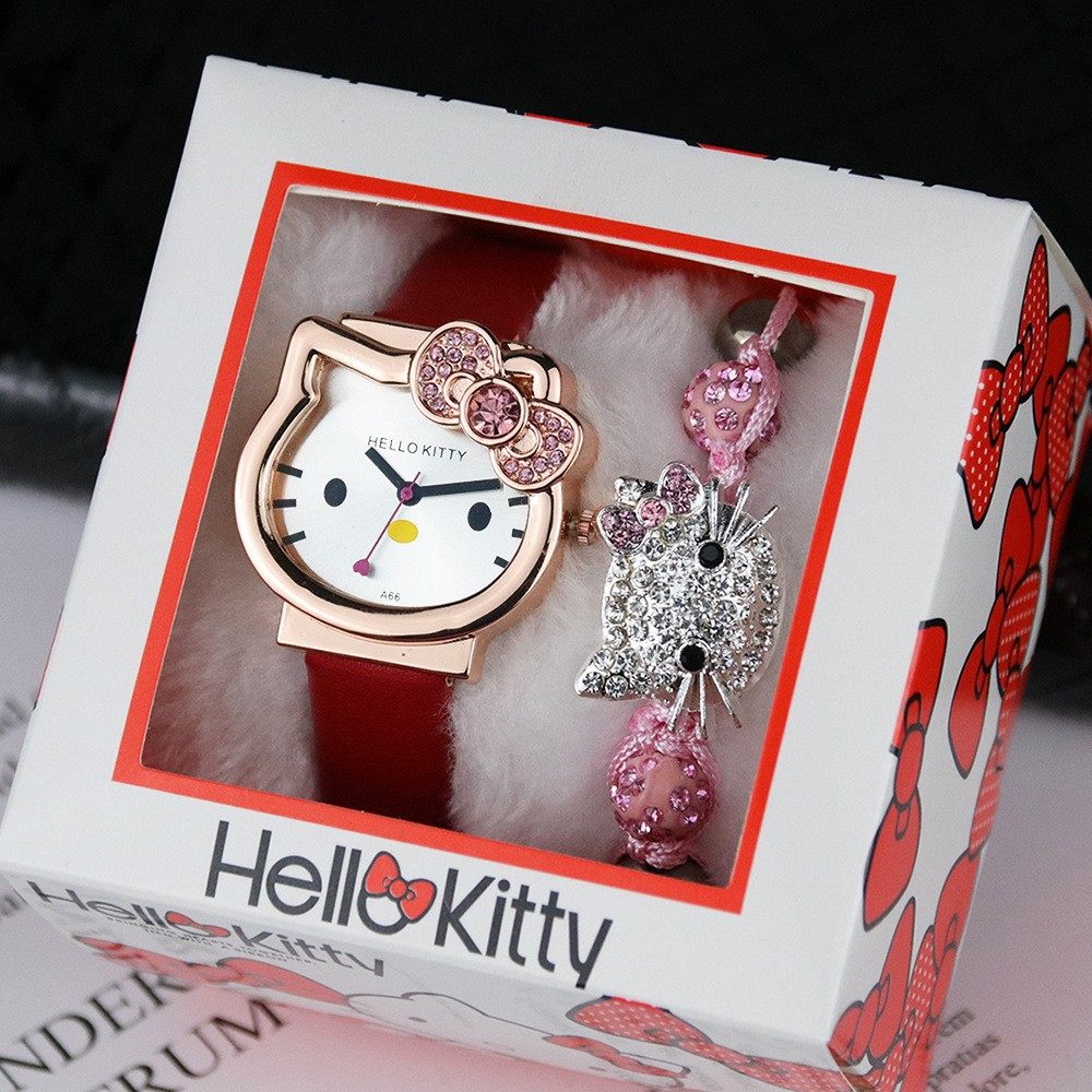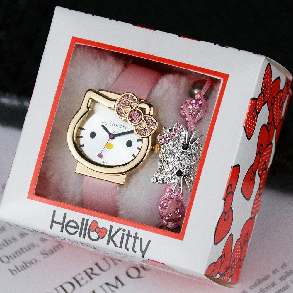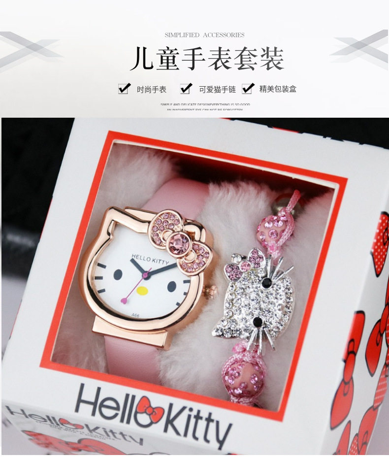 Kitty Cat Gift Children's Watch Quartz Wristwatch Bracelet Two-Piece Set Boxed Elementary School Student Decorative Watch Toy