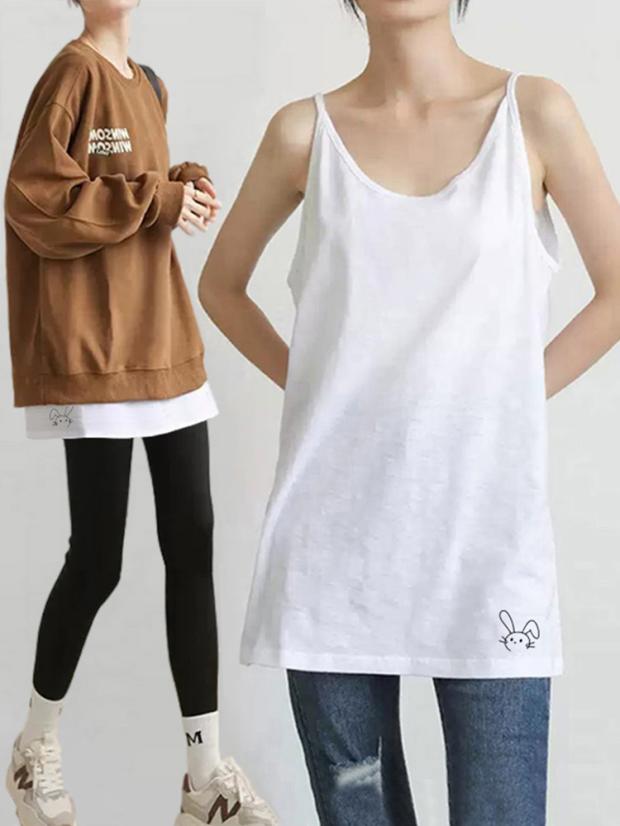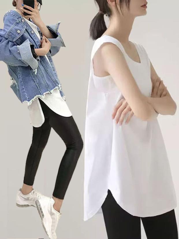 Sweatshirt Matchinging Artifact White Camisole Women's Sleeveless Inner Top Bottoming Long T-Shirt Layered with Butt Curtain Long t