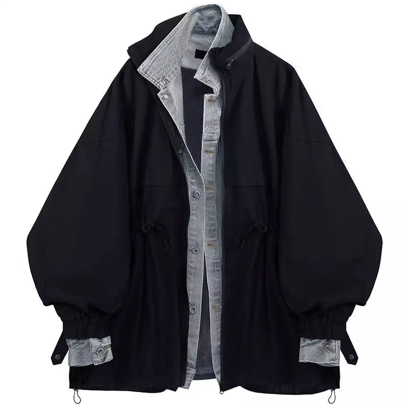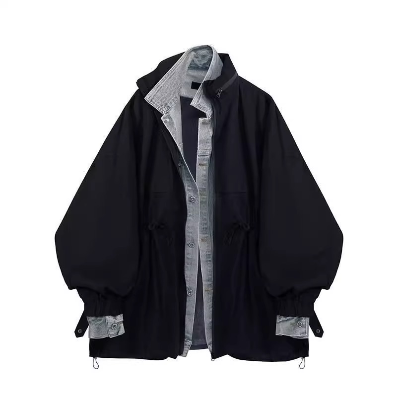 Fake Two-Piece Denim Jacket for Men, Spring and Autumn, American Style Trendy Brand, High-End Loose Trench Coat, Men's Casual Lapel Jacket