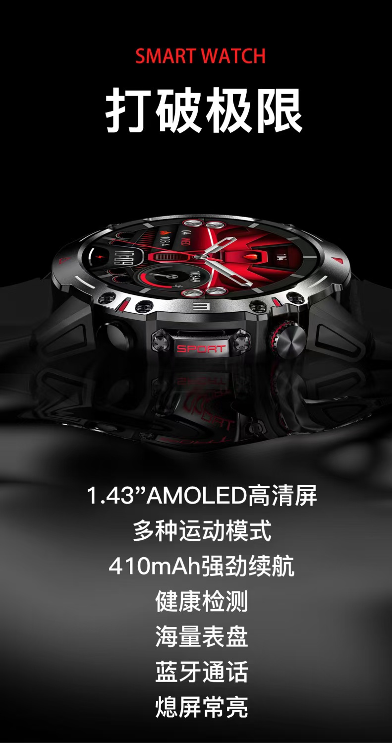 Sports Outdoor Watch for Running, Mountaineering, Cycling, and Marathon, with Bluetooth Calling, Heart Rate, Blood Pressure, and Sleep Monitoring