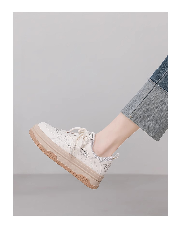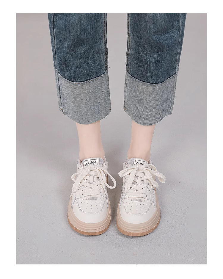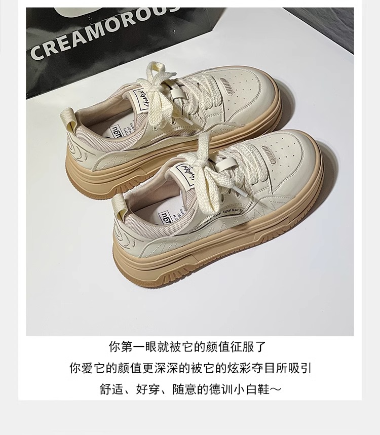 Hong Kong Versatile Sports Sneakers for Women 2025 Spring and Autumn Thick-Soled Large-Toe Shoes Genuine Leather Fashion Casual White Shoes German Training Shoes