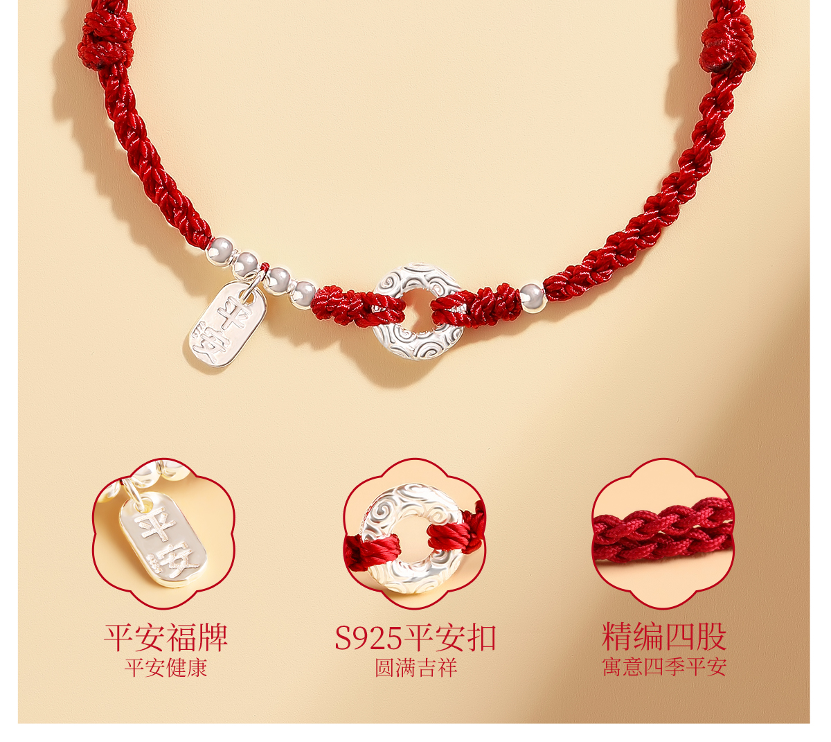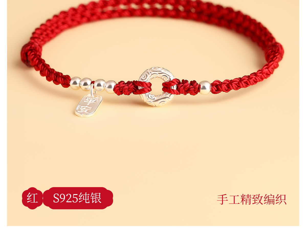 Red String Bracelet for the Year of the Horse, Zodiac Year Red String Bracelet for Children, Woven Good Luck Anklet, Pure Silver Anklet for Women 2026, New Style for Men
