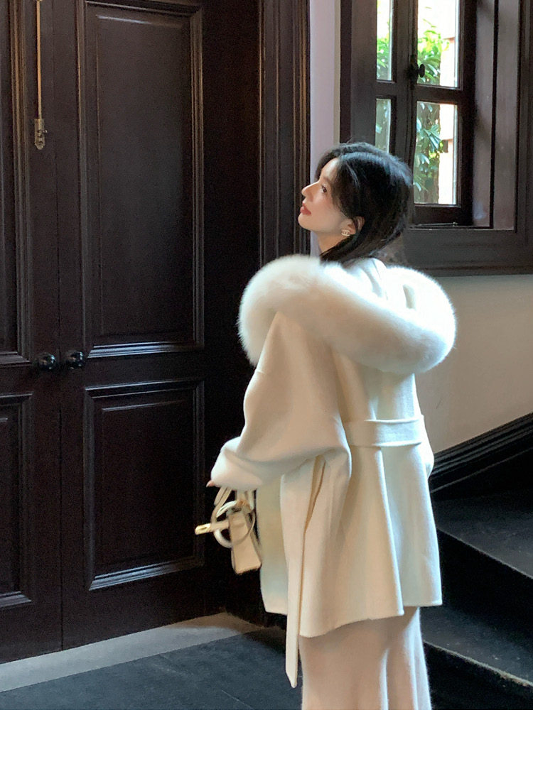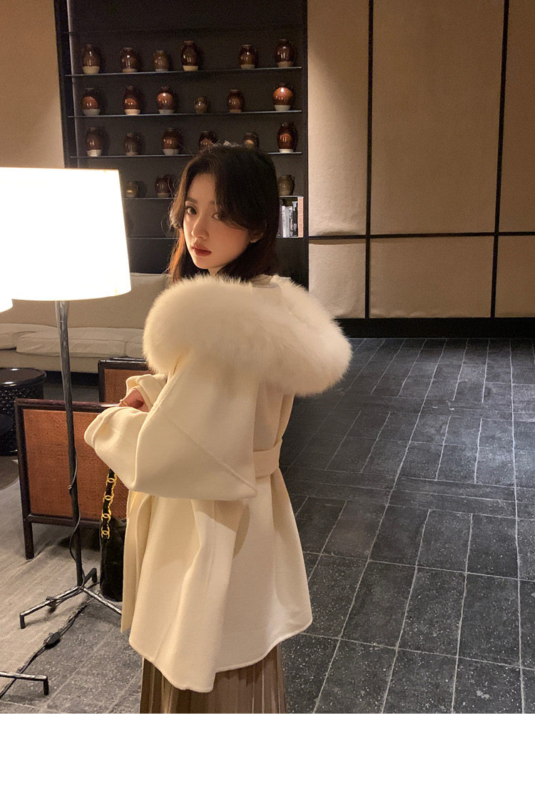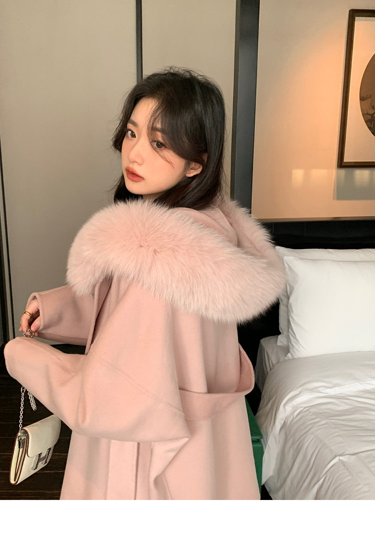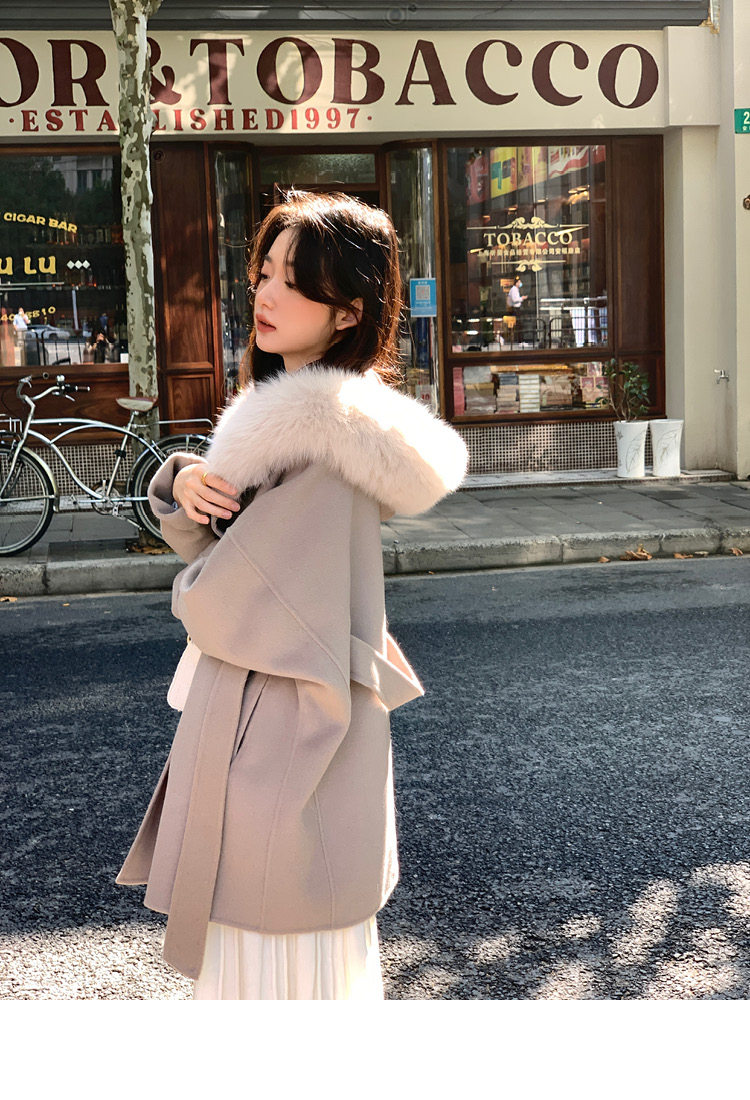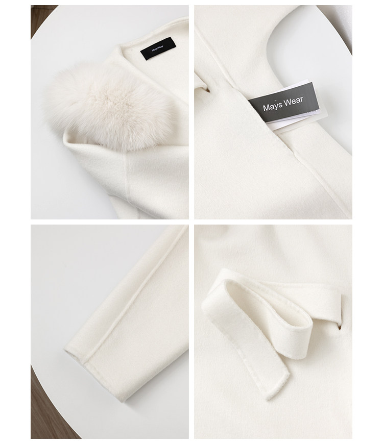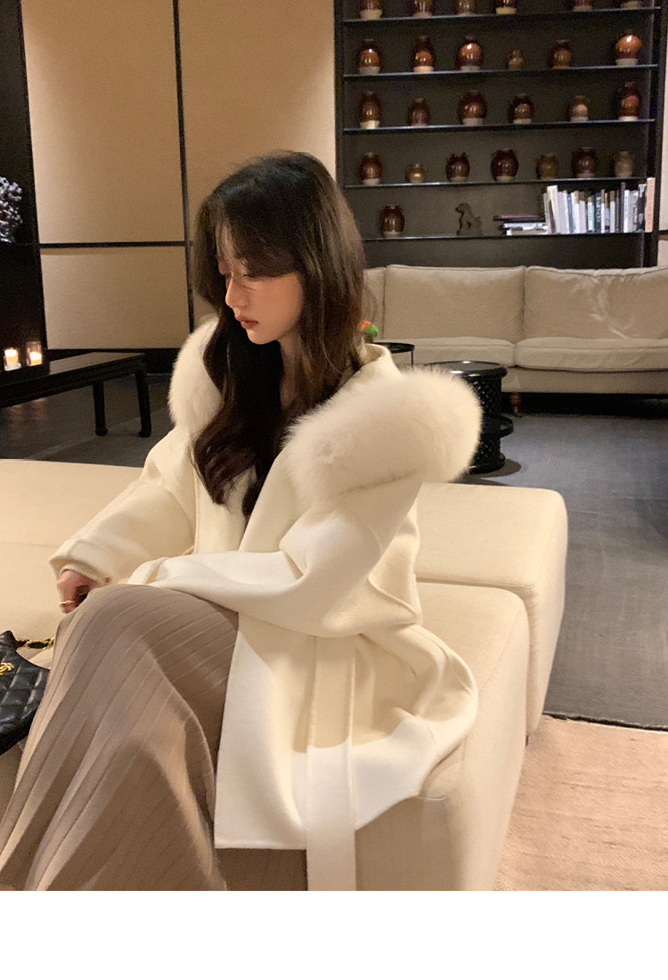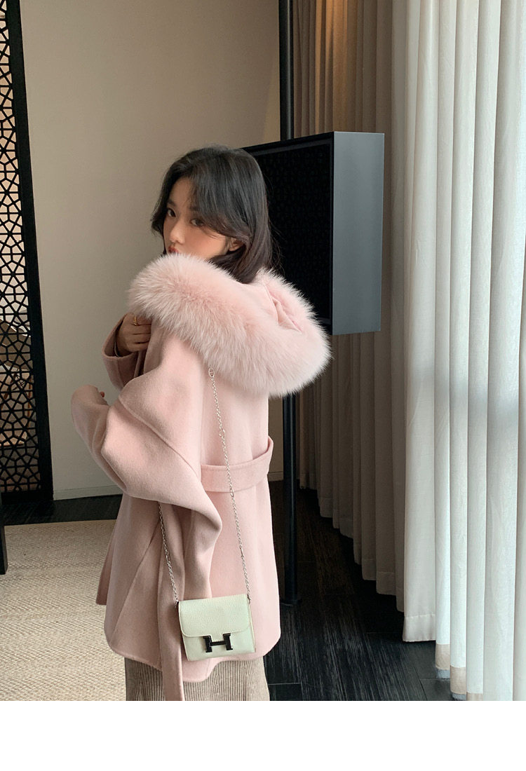 2025 Moonlight Coat for Women, Autumn and Winter Woolen Jacket with Hood, New Double-Sided Cashmere Cape with Fox Fur, High-End Feel