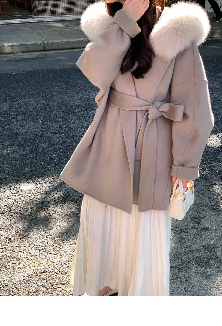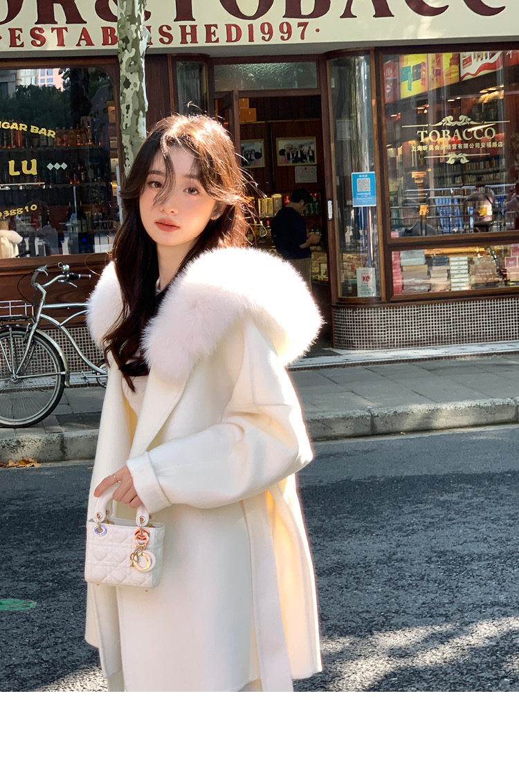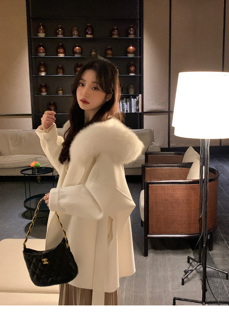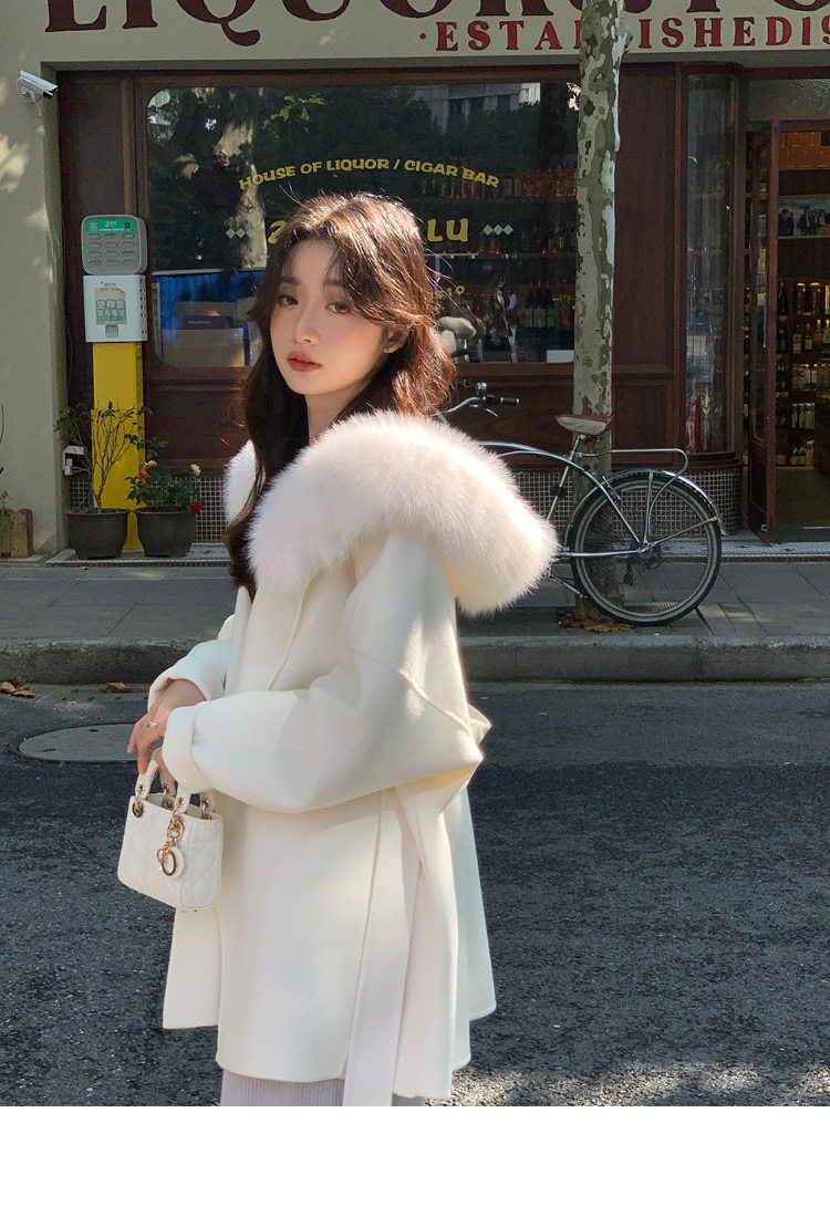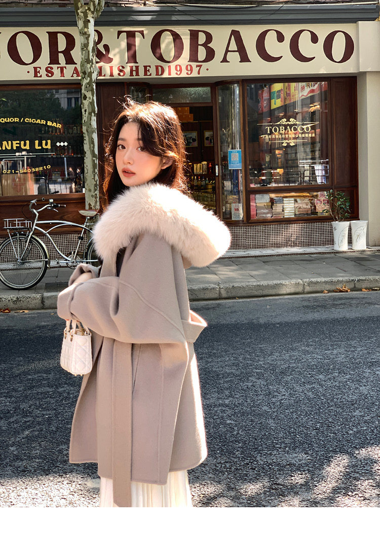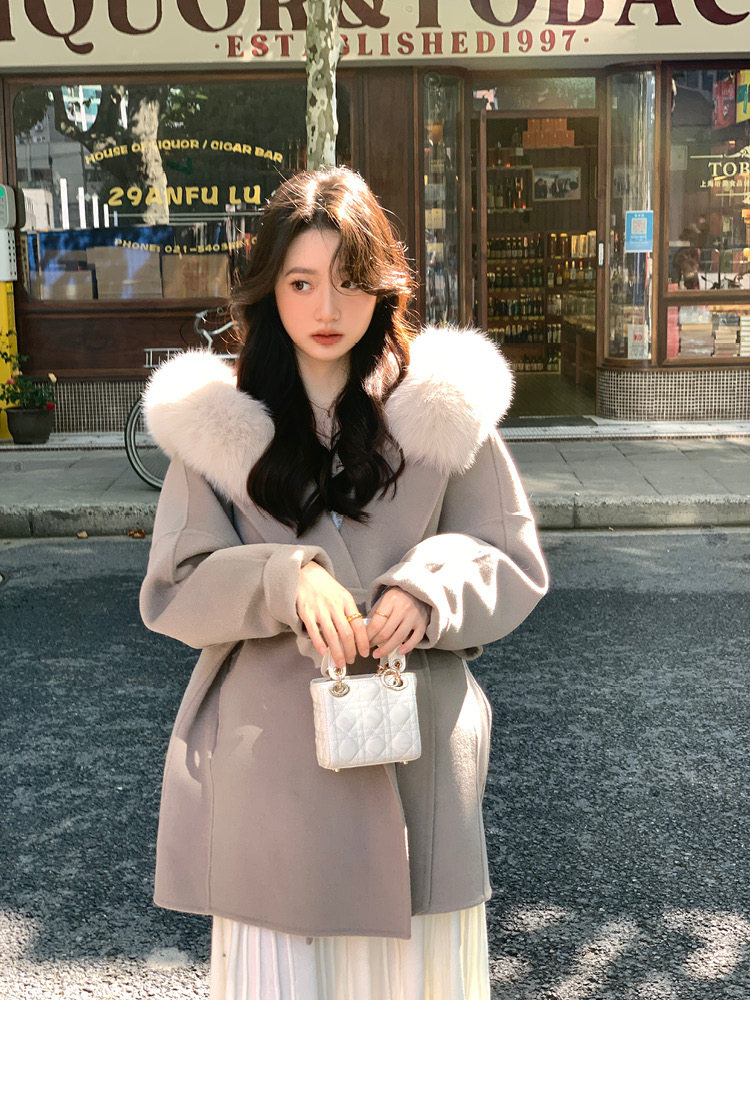 2025 Moonlight Coat for Women, Autumn and Winter Woolen Jacket with Hood, New Double-Sided Cashmere Cape with Fox Fur, High-End Feel