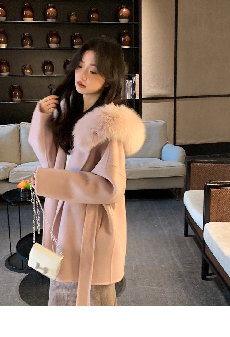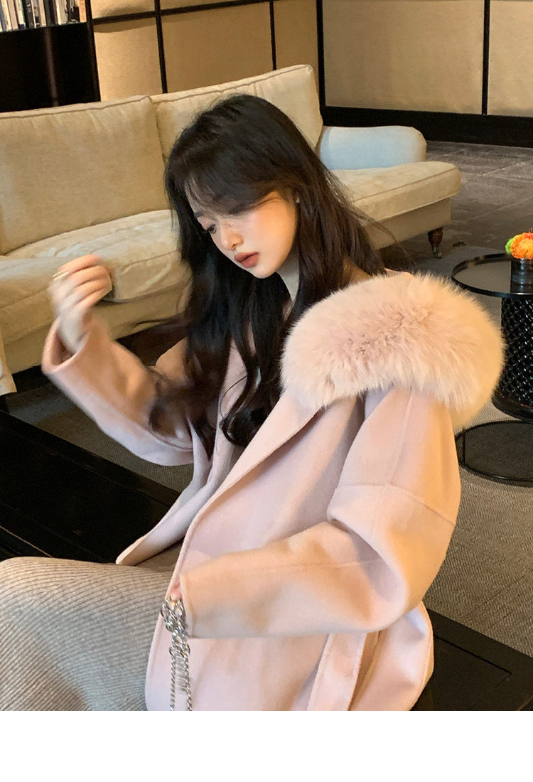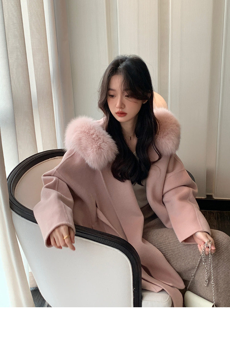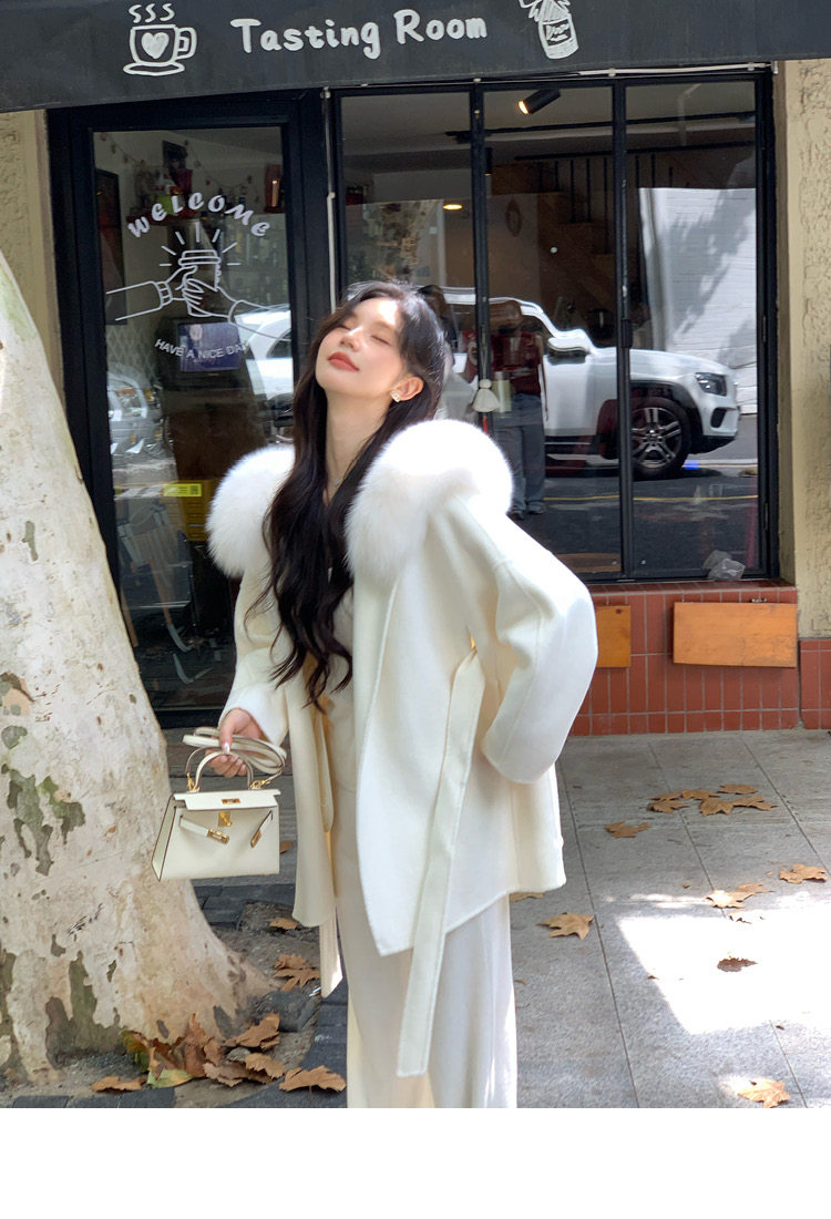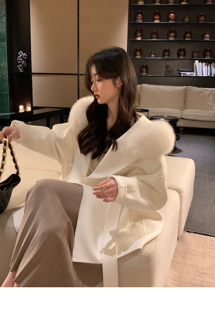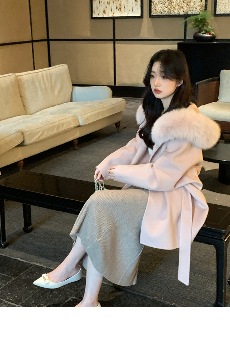 2025 Moonlight Coat for Women, Autumn and Winter Woolen Jacket with Hood, New Double-Sided Cashmere Cape with Fox Fur, High-End Feel